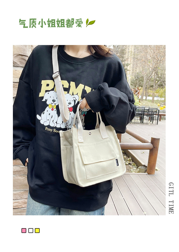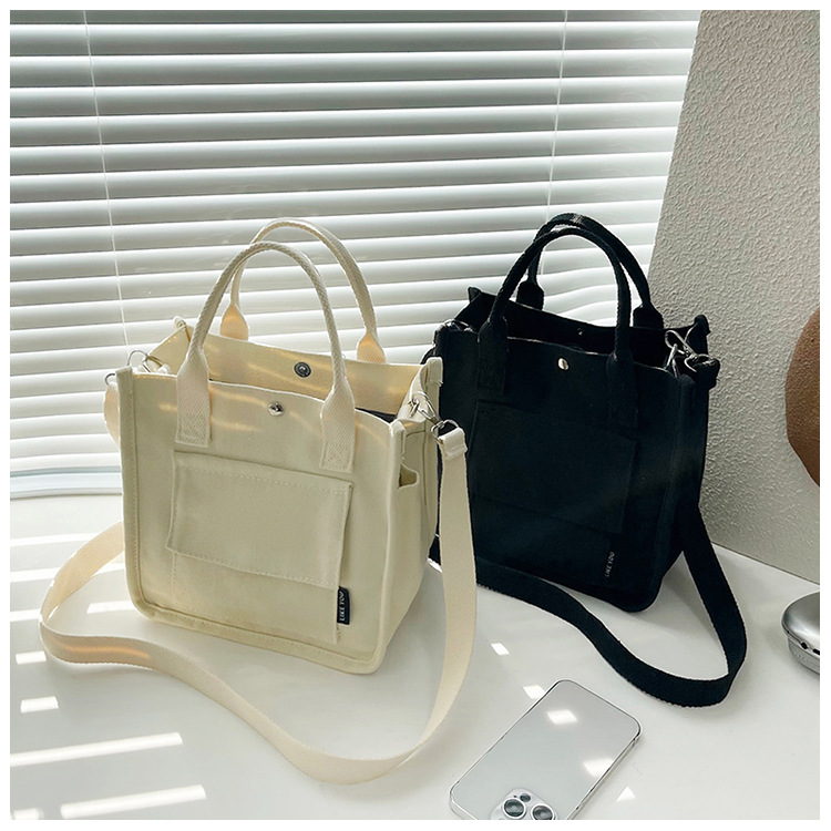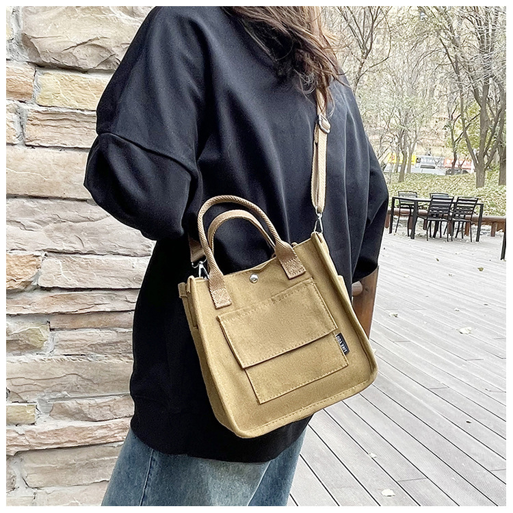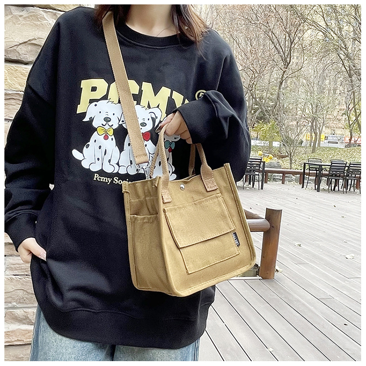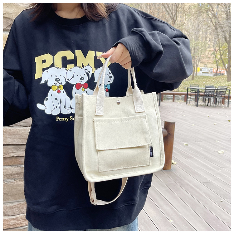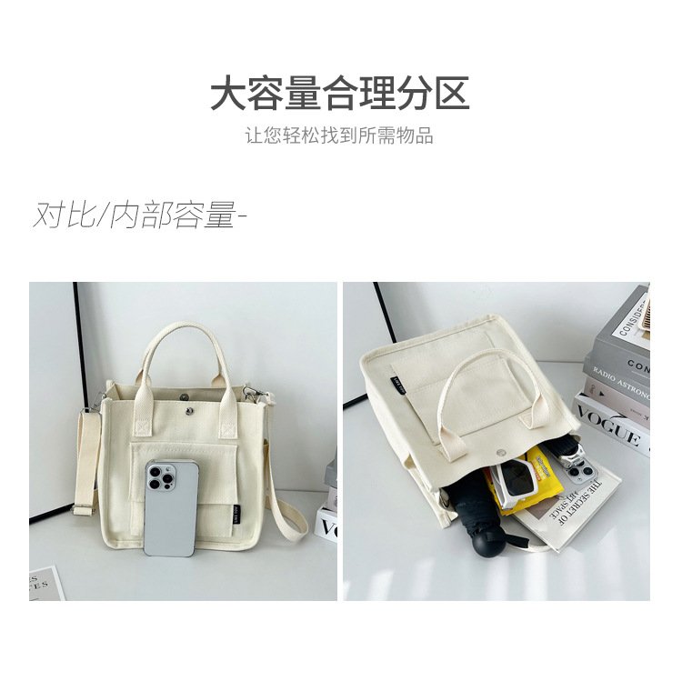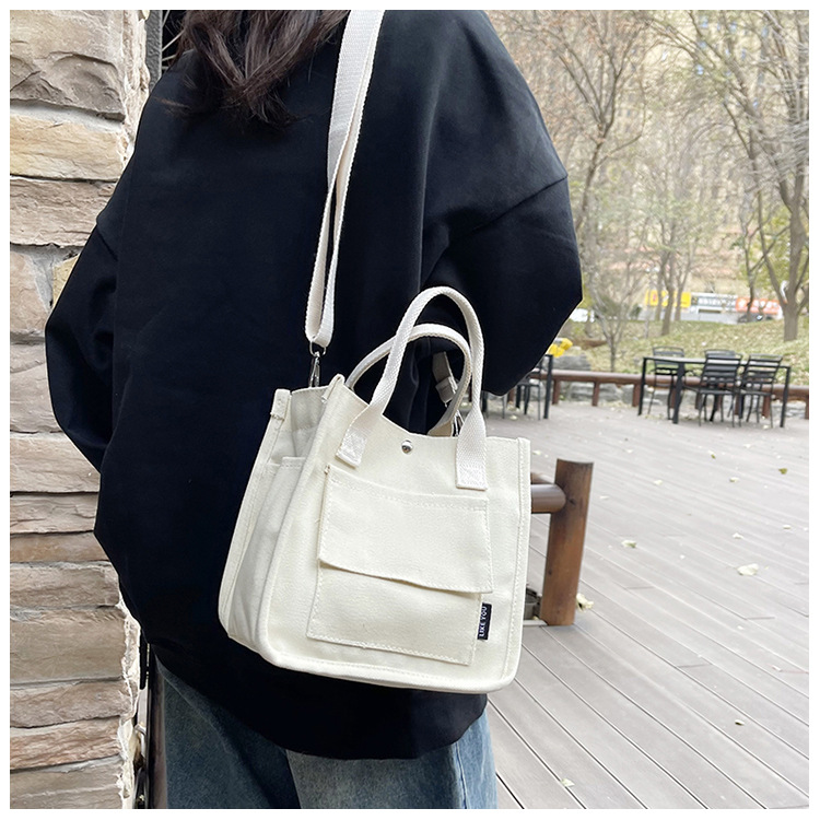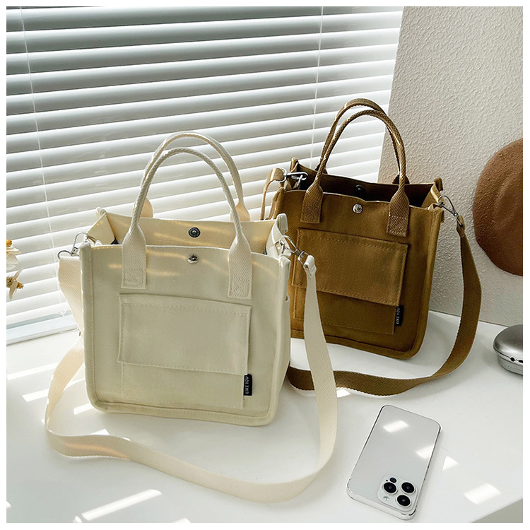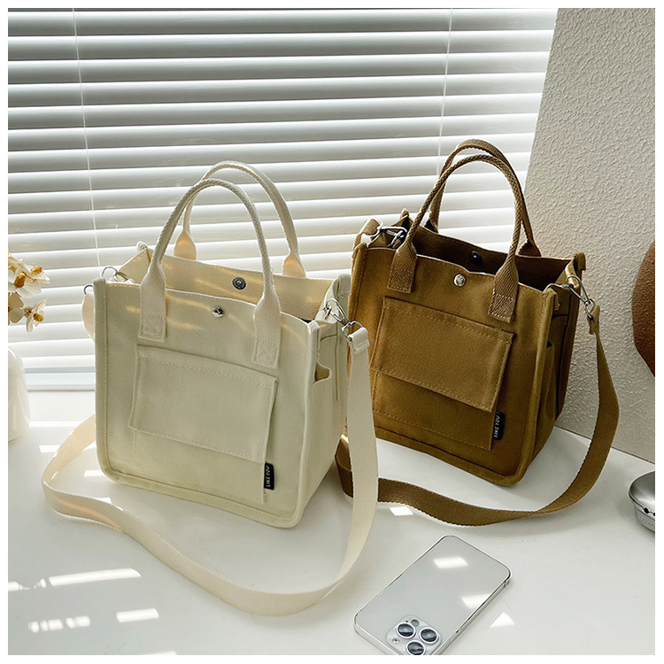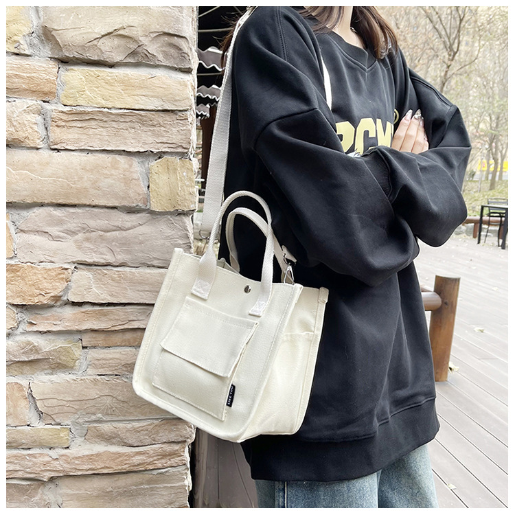 원래 디자인 3 차원 멀티 포켓 토트 캔버스 가방 손 크로스 바디 가방 간단한 올 매치 휴대용 도시락 가방스토어 가기