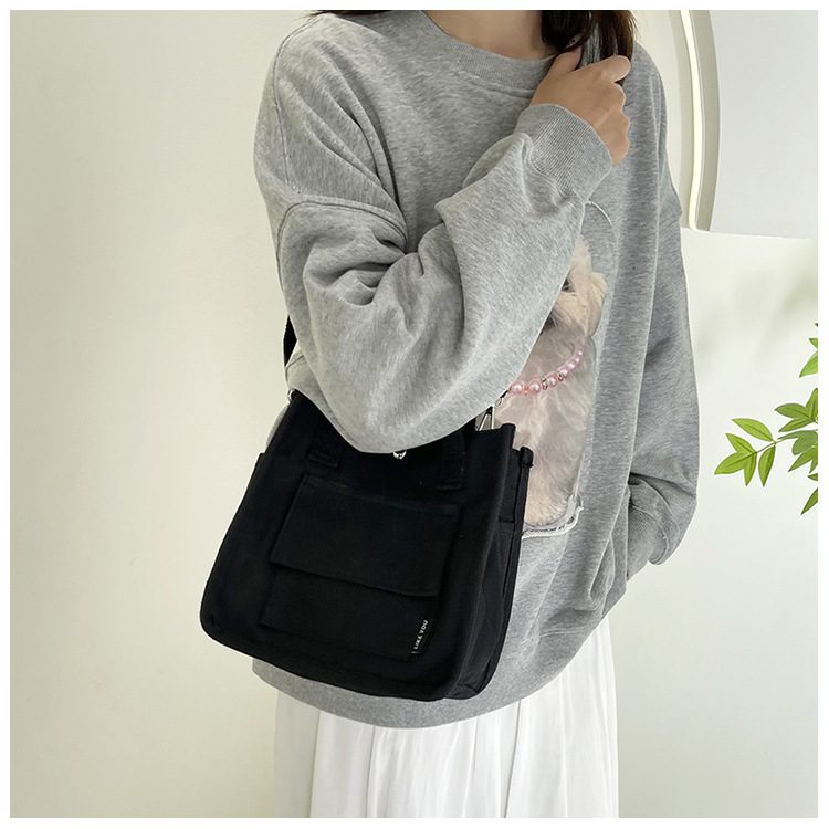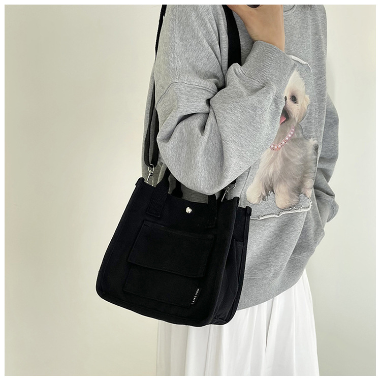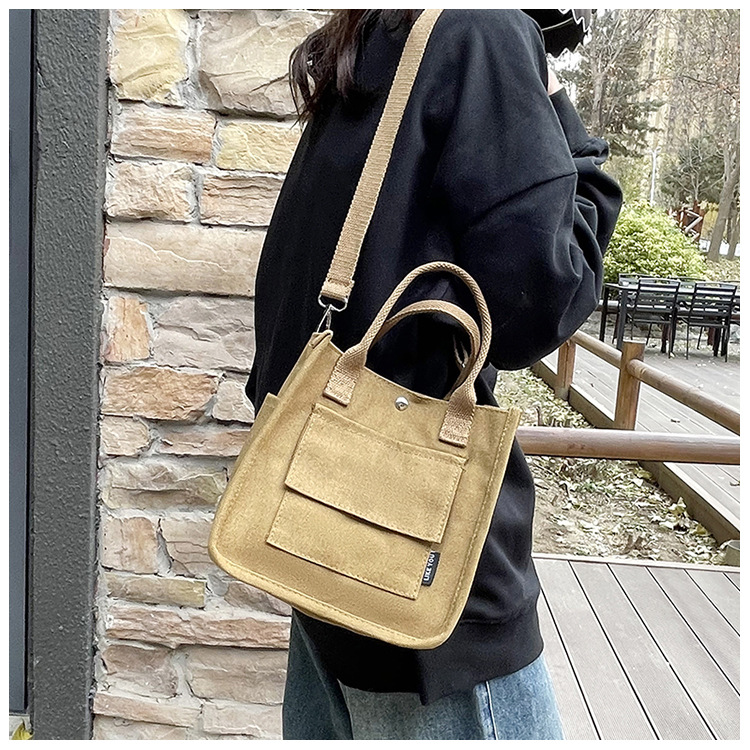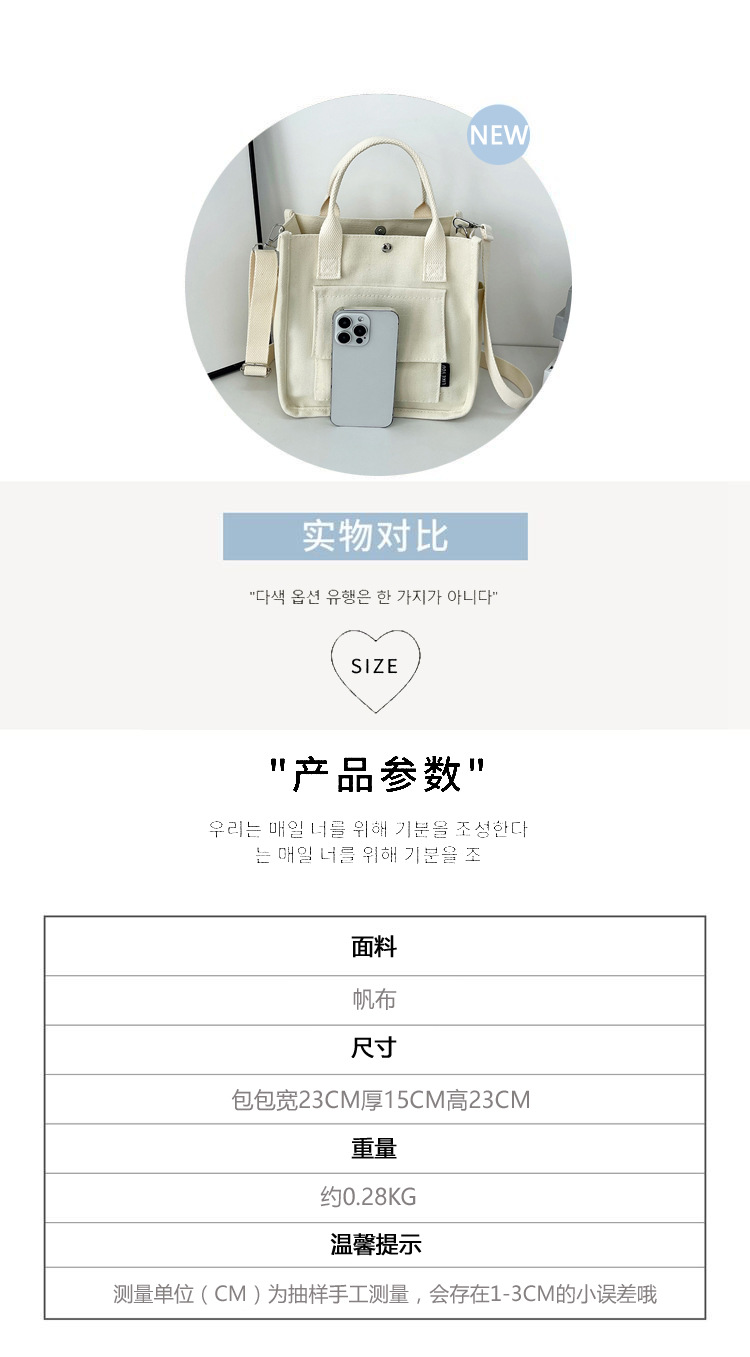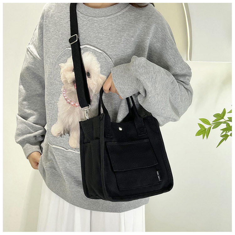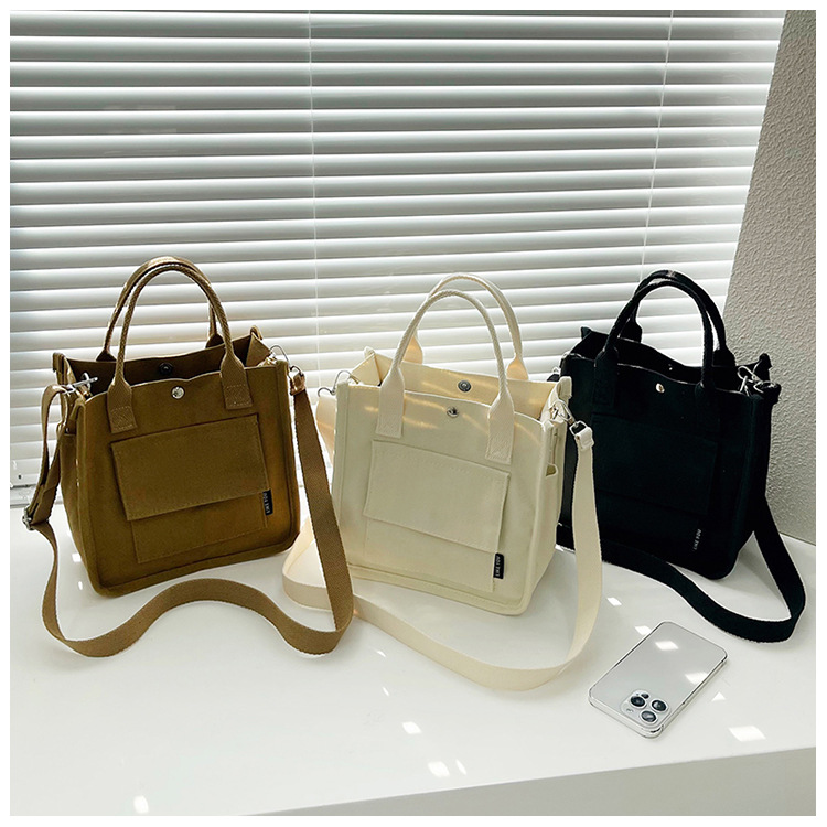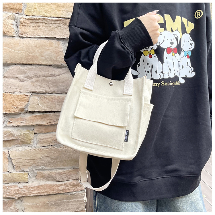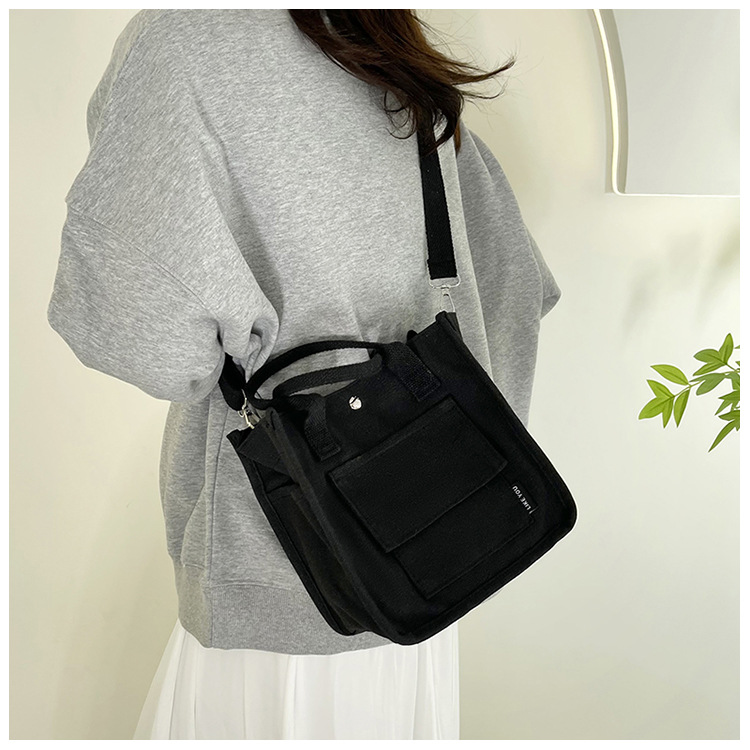 원래 디자인 3 차원 멀티 포켓 토트 캔버스 가방 손 크로스 바디 가방 간단한 올 매치 휴대용 도시락 가방