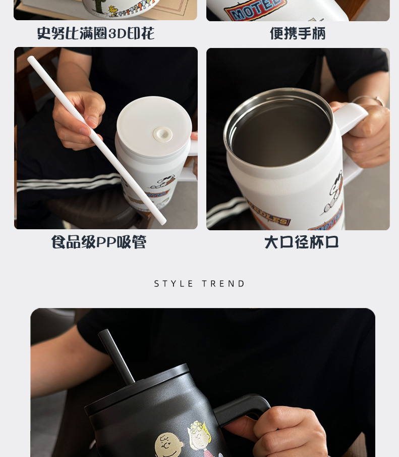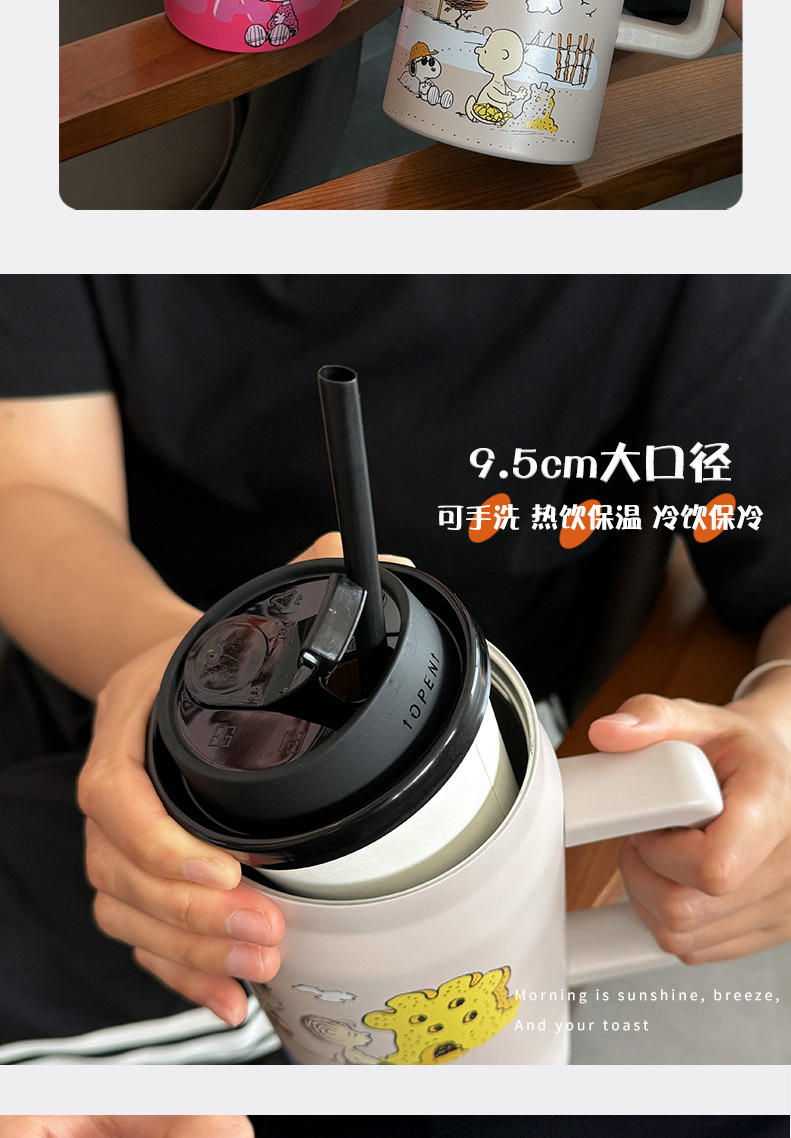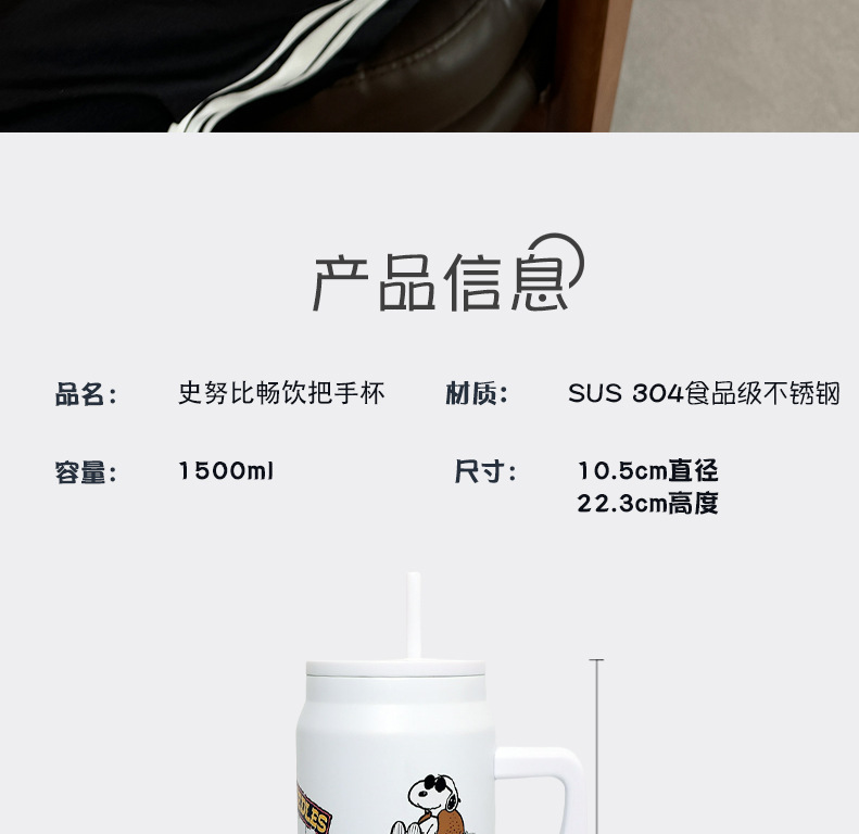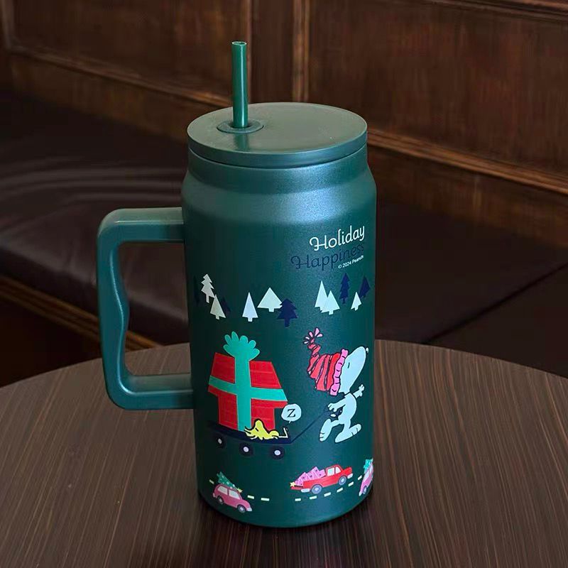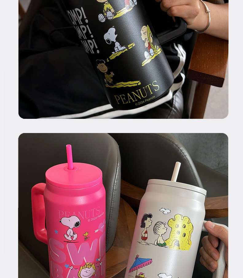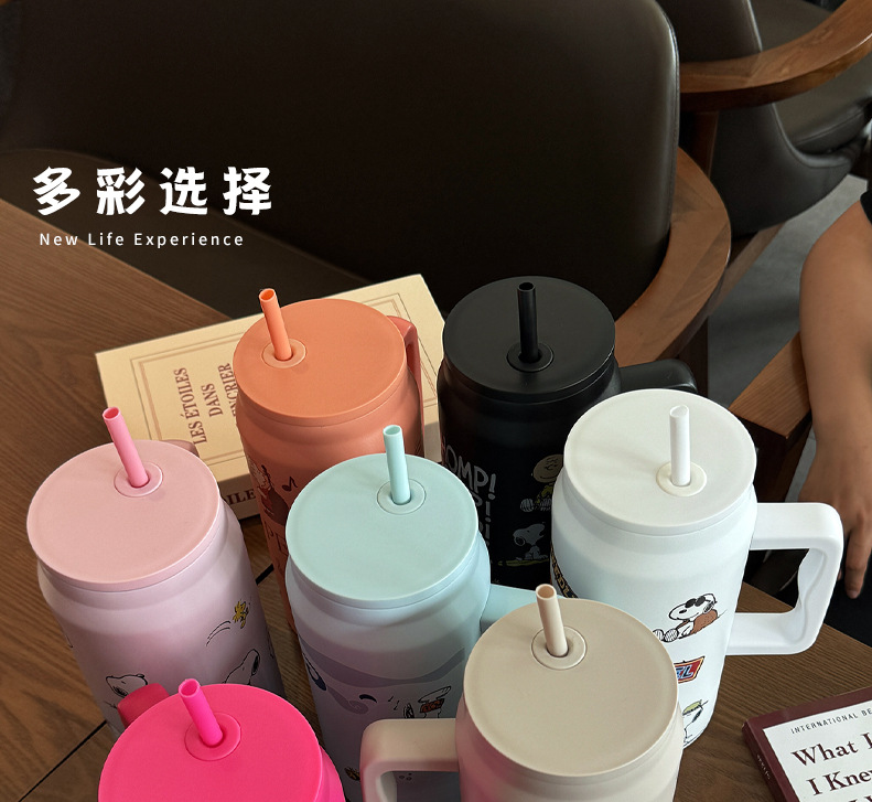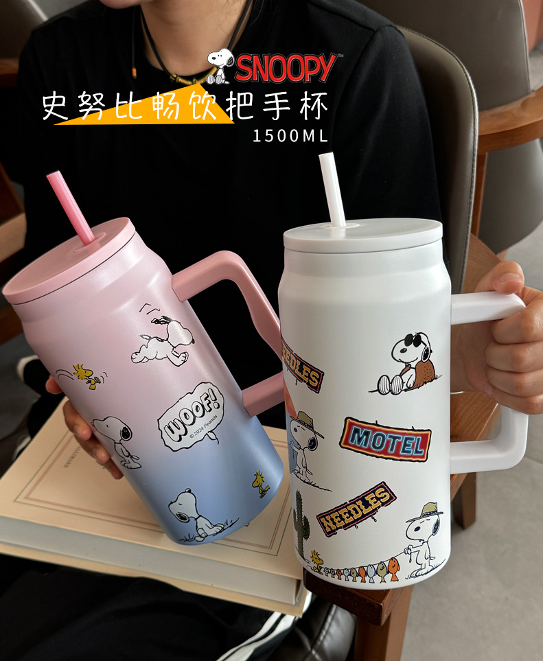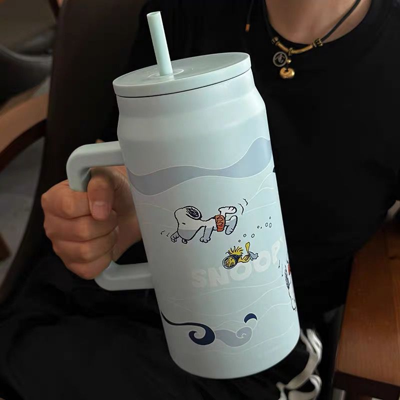 스누피 보온병 대용량 2026 대용량 빨대 물병 스테인리스 학생용 보온병 고급스러운 디자인