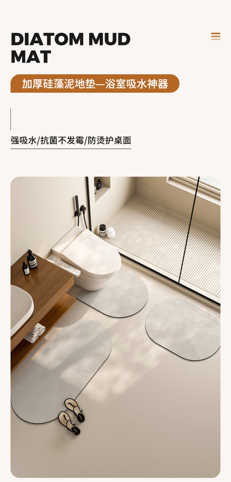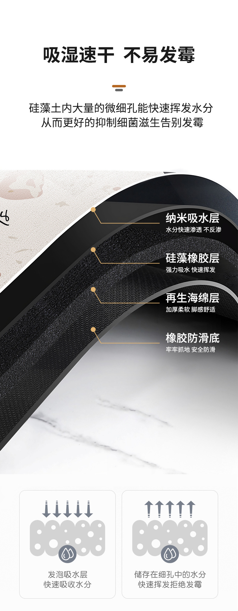 욕실 Diatom 진흙 흡수성 매트 바닥 매트 화장실 안티 슬립 매트 화장실 문 세면대 발 매트 화장실 카펫스토어 가기