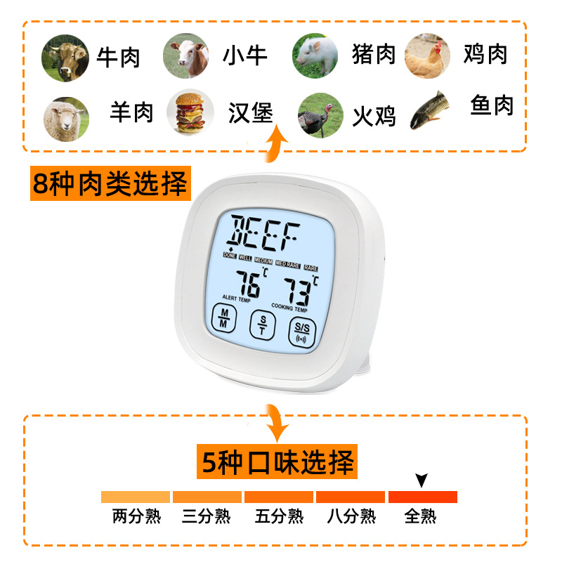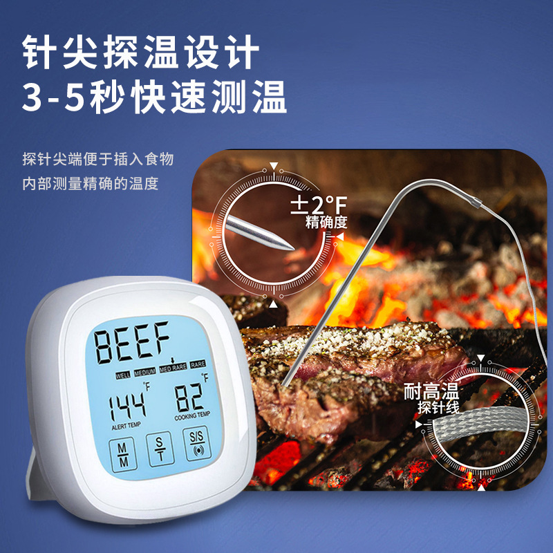 스마트 식품 온도계 터치 주방 식품 바베큐 오븐 고기 온도계 디지털 디스플레이 바베큐 온도계