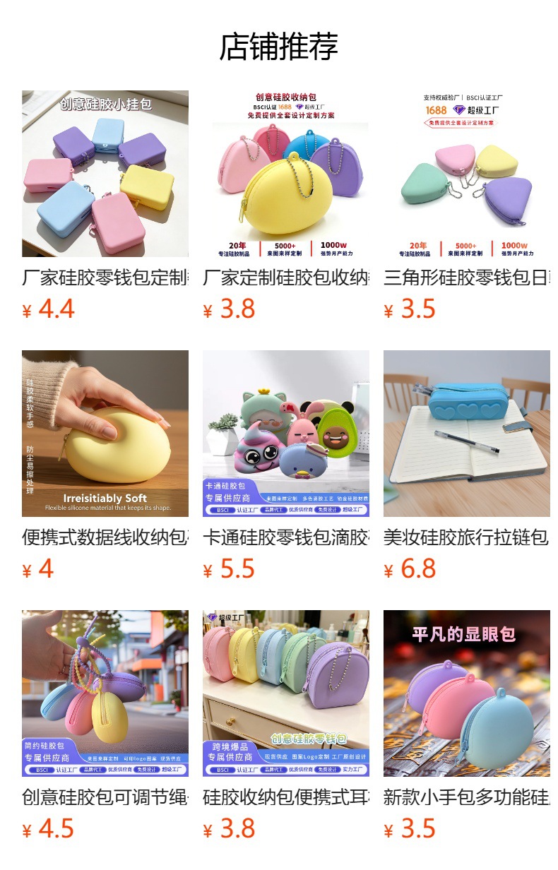 硅胶零钱包 硅胶硬币包 硅胶小钱袋 硅胶钥匙包 硅胶钥匙扣包 硅胶钥匙收纳包 硅胶收纳小包 硅胶便携收纳包 硅胶杂物包 卡通硅胶包 硅胶礼品包 硅胶挂件包 防水 便携 可水洗 食品级硅胶 防摔耐磨卡通 可爱 马卡龙色 3D立体 儿童/学生 耳机收纳 源头工厂 支持定制、广告礼品、促销赠品 矽胶包、硅胶软体包、防水硅胶小包、果冻硅胶包 硅胶名片包、硅胶小钱夹、迷你硅胶钱包 胶挂扣款小包、硅胶便携挂袋、硅胶子母扣收纳小包 硅胶耳机收纳包/蓝牙耳机保护收纳袋 硅胶化妆包/美妆收纳小包 卡通硅胶收纳包/宝宝零食收纳包 矽胶收纳袋、硅胶软收纳包、果冻硅胶包、硅胶束口袋、硅胶杂物包、硅胶便携收纳袋、硅胶防尘收纳包、硅胶分装收纳包、硅胶旅行收纳包 食品级硅胶、防水防漏、可水洗、加厚耐磨、柔软防摔、无异味、防尘防潮、弹性便携 数据线收纳、化妆品收纳、口红收纳、首饰收纳、药品收纳、旅行分装、桌面杂物收纳、儿童卡通收纳 源头工厂、现货批发、LOGO定制、跨境专供、OEM定制、礼品赠品 马卡龙色、苹果粉 便携挂绳、防水耐脏,主打儿童/学生/通勤族 跨境亚马逊/速卖通热销 零钱包定制 小杂物收纳包 透明收纳包 简约硅胶小钱袋 多功能硅胶收纳包 软胶随身收纳包 女士硅胶迷你小钱包 硅胶拉链钱包 硅胶小件收纳包