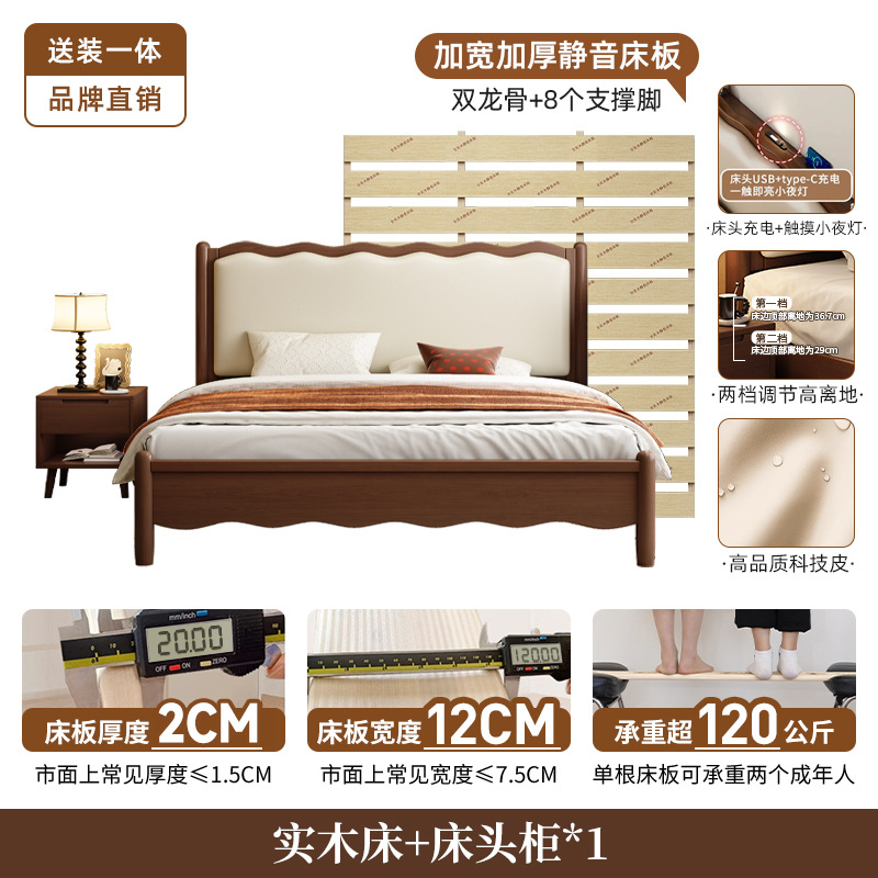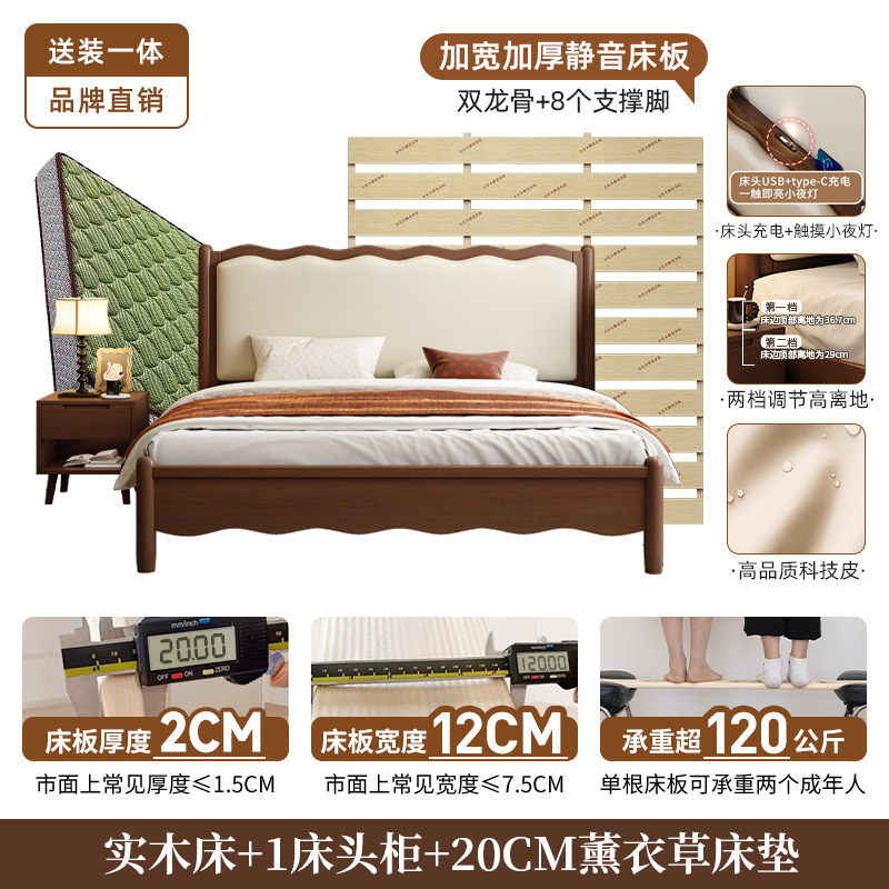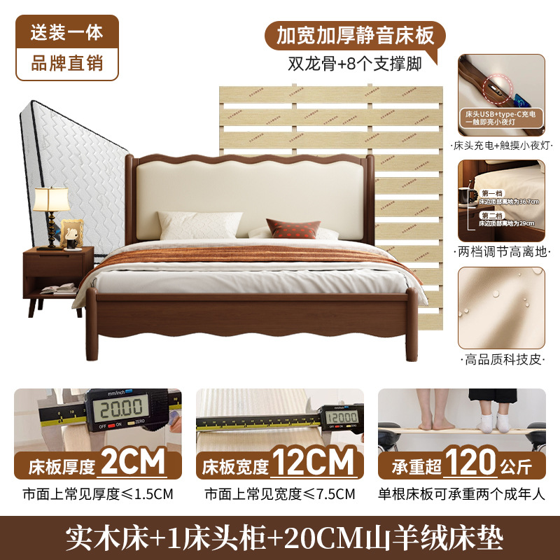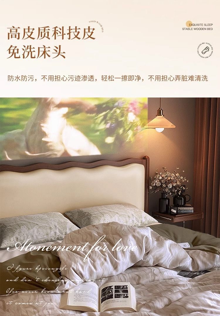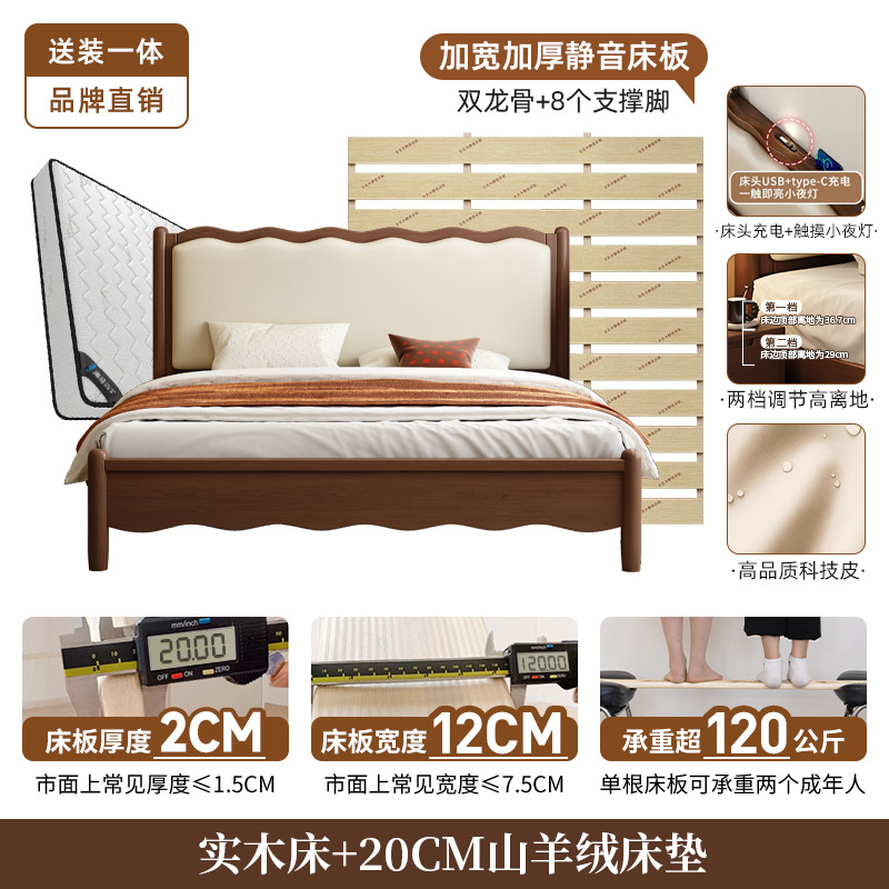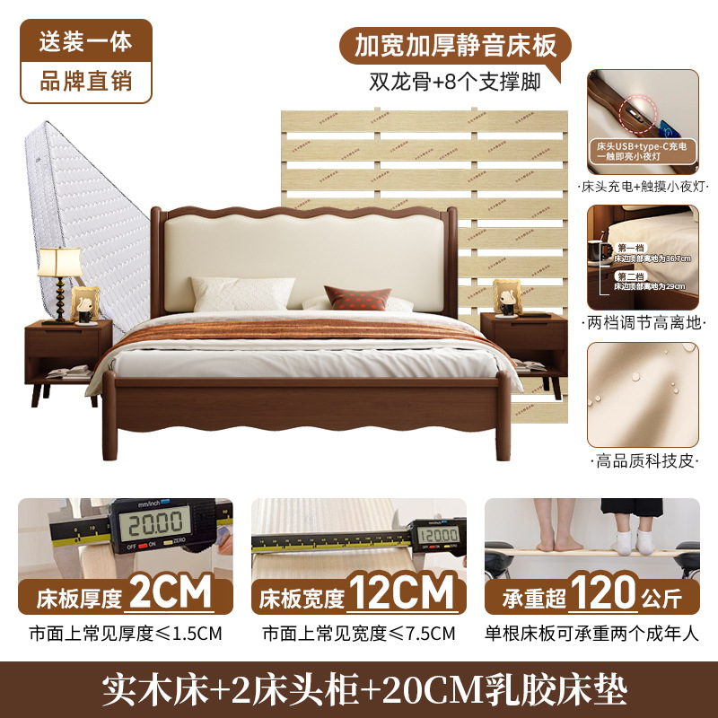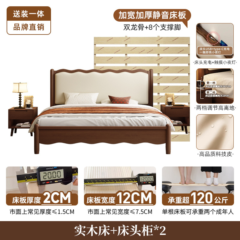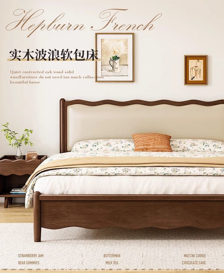 북유럽 원목 레트로 더블 침대 1.8m 웨이브 침대 앤티크 스타일 침대 1.5m 심플 소프트 패브릭 웨딩 침대 침실용