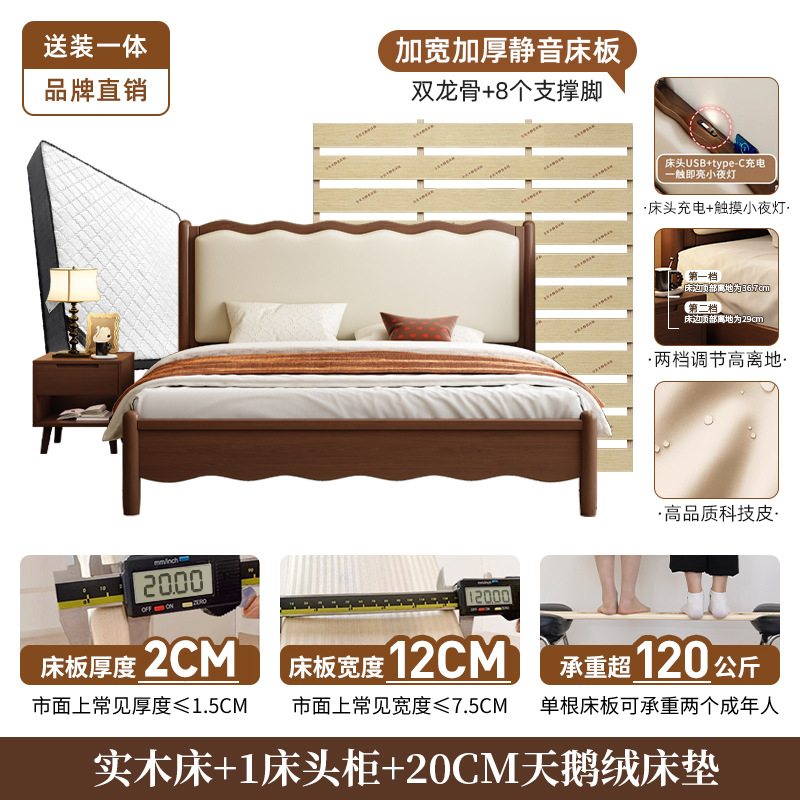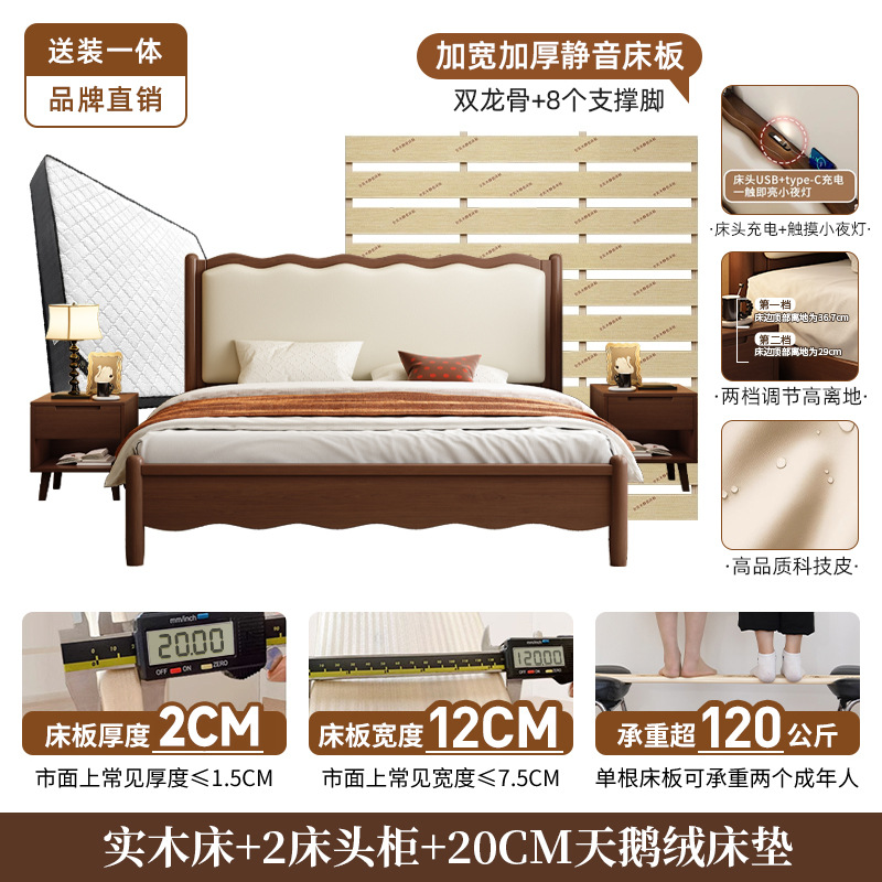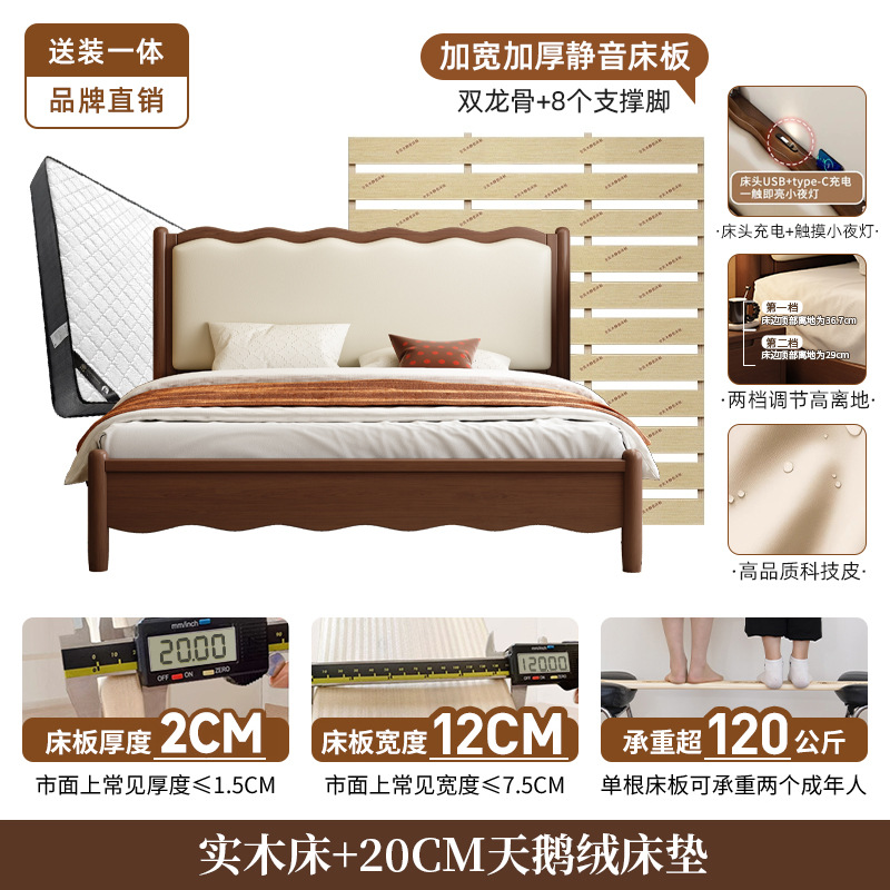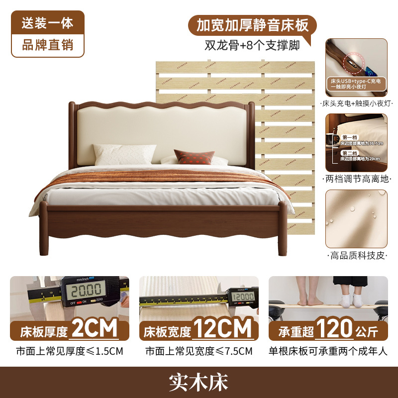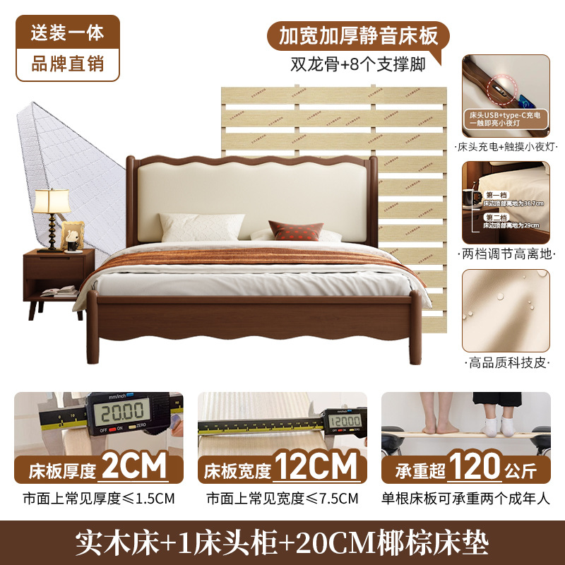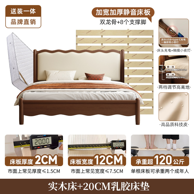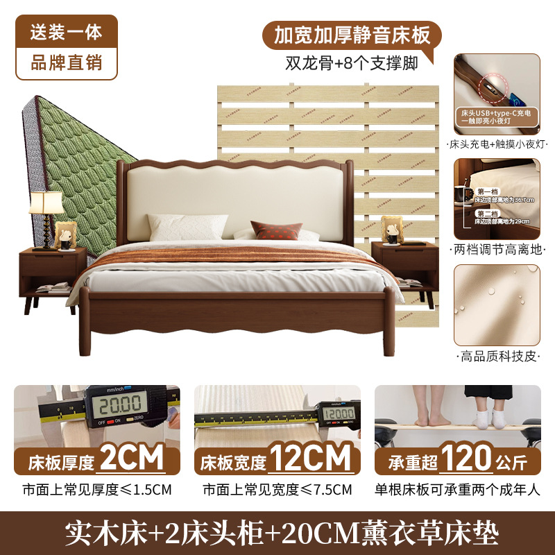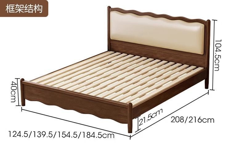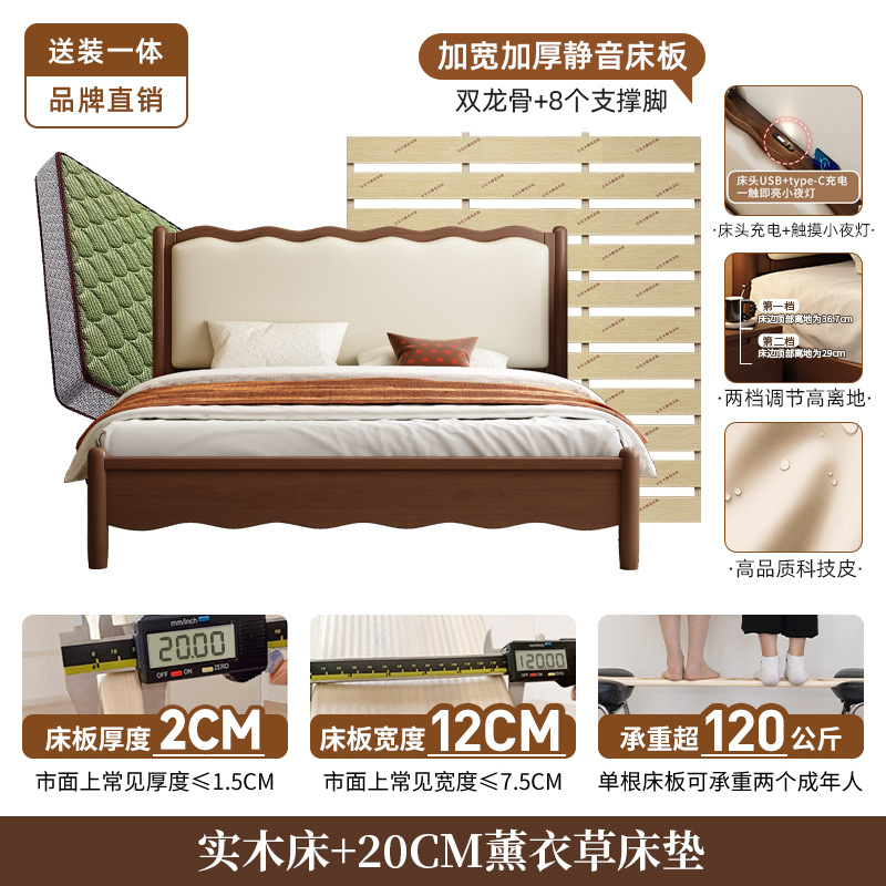 북유럽 원목 레트로 더블 침대 1.8m 웨이브 침대 앤티크 스타일 침대 1.5m 심플 소프트 패브릭 웨딩 침대 침실용