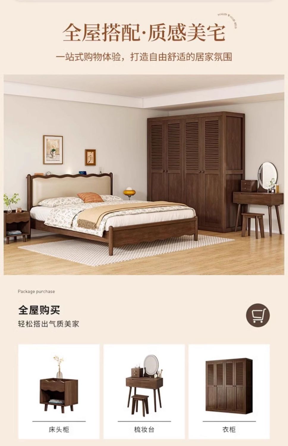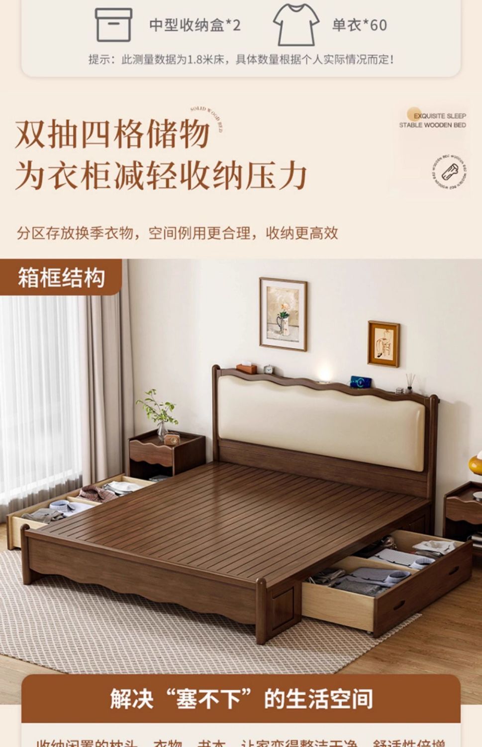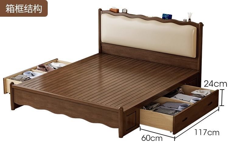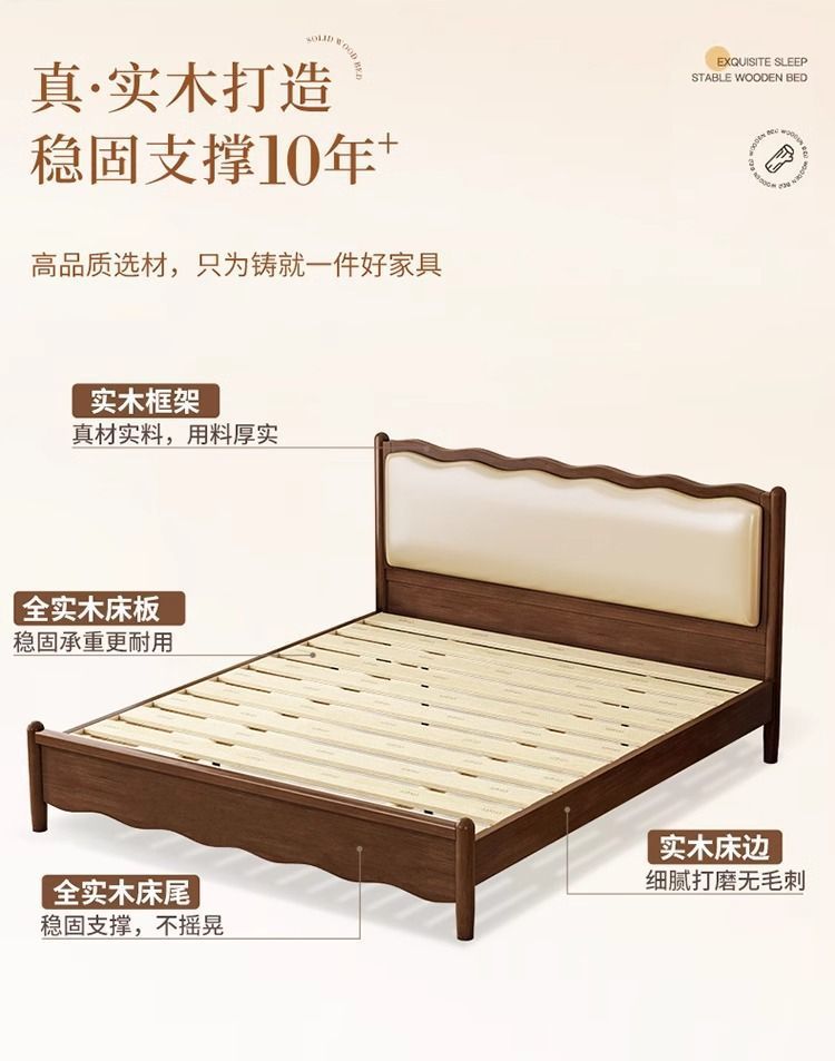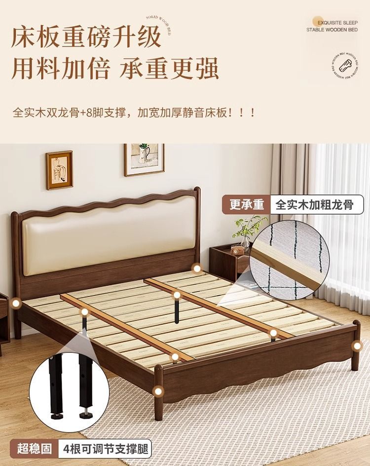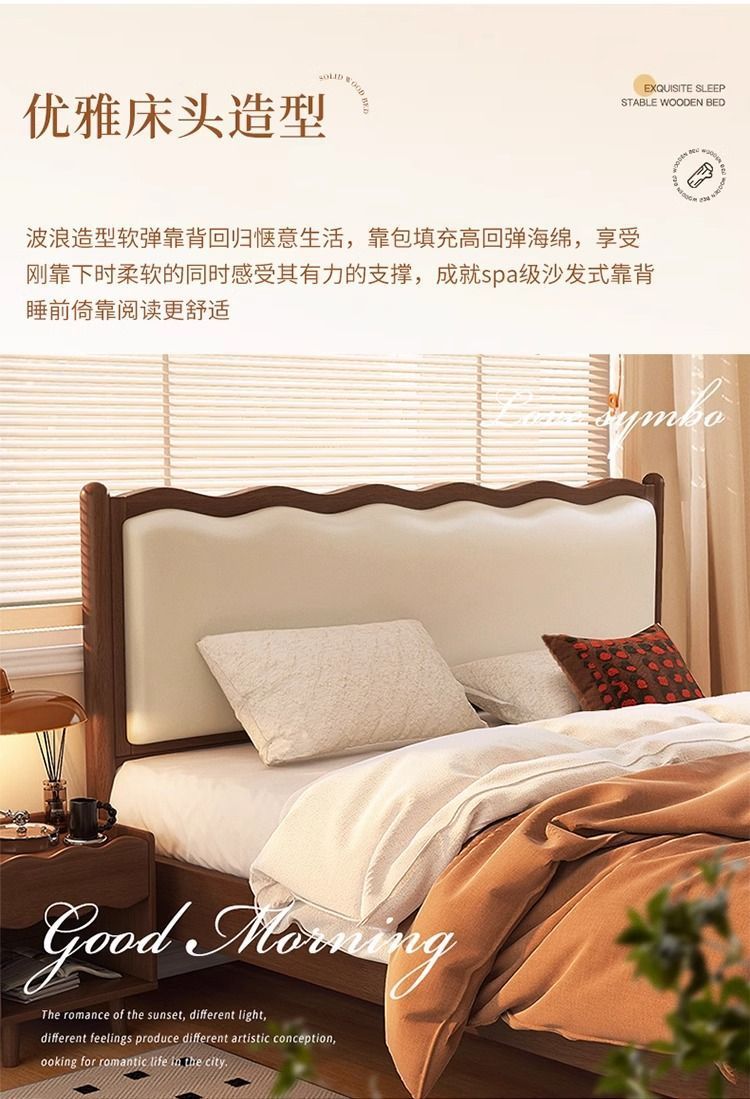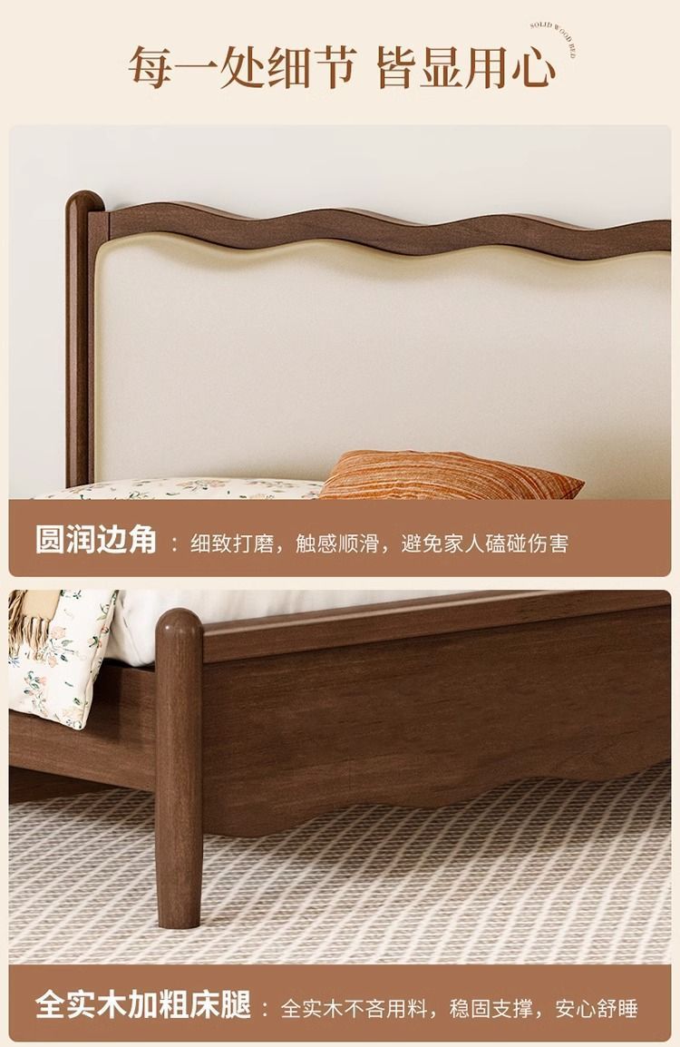북유럽 원목 레트로 더블 침대 1.8m 웨이브 침대 앤티크 스타일 침대 1.5m 심플 소프트 패브릭 웨딩 침대 침실용스토어 가기