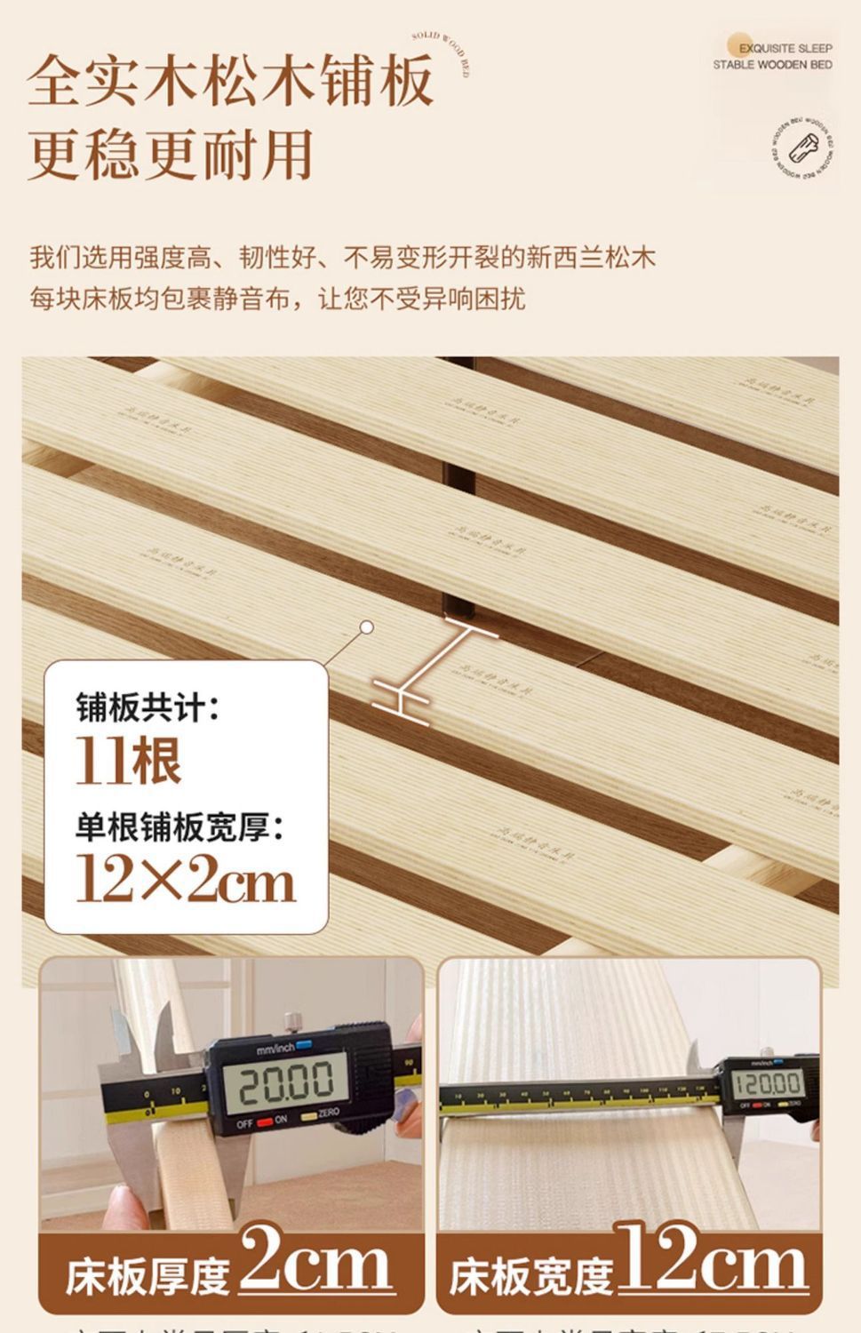 • 침대 + 20cm 코코넛팜 매트리스 + 침대 협탁 * 1 [저소음 침대판]