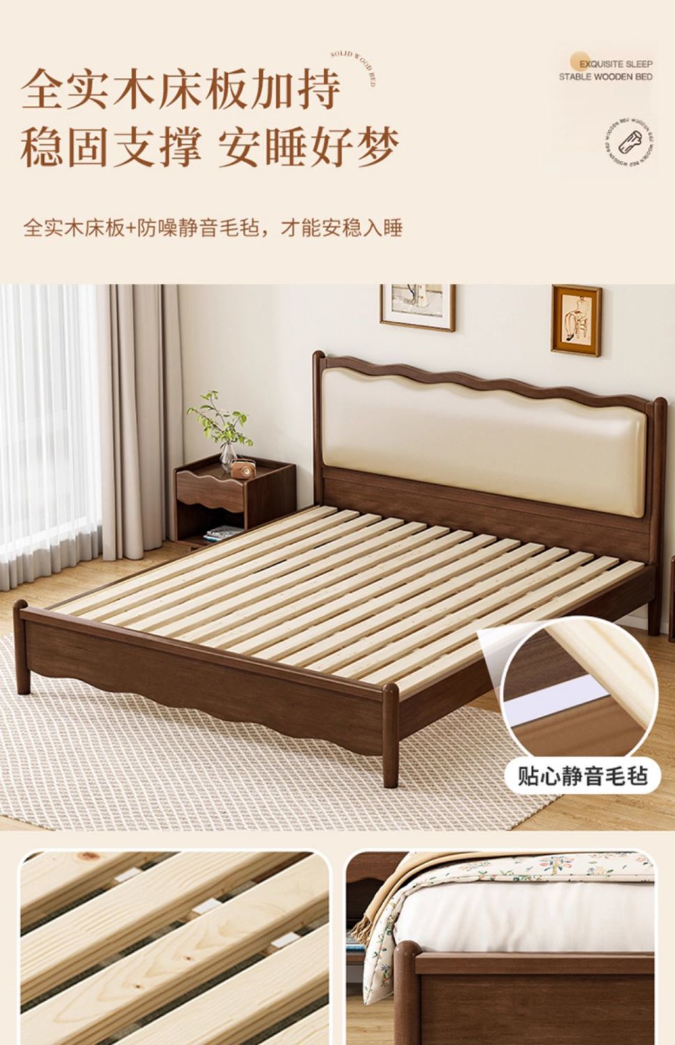 • 침대 + 20cm 라텍스 매트리스 + 침대 협탁 * 1 [저소음 침대 깔판]