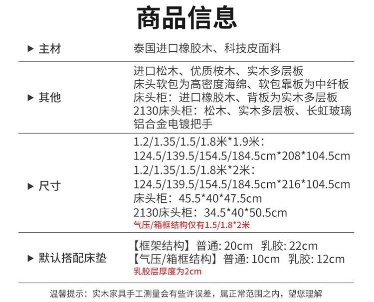 • 침대 + 20cm 음이온 매트리스 + 협탁 * 1 (중간 경도 - 고품질 매트리스)