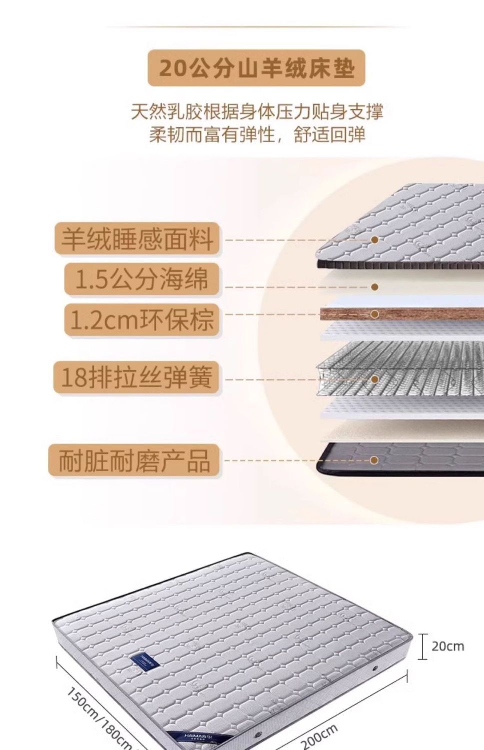 • 침대 + 20cm 음이온 매트리스 (부드러움과 딱딱함이 적당한 고품질 매트리스)