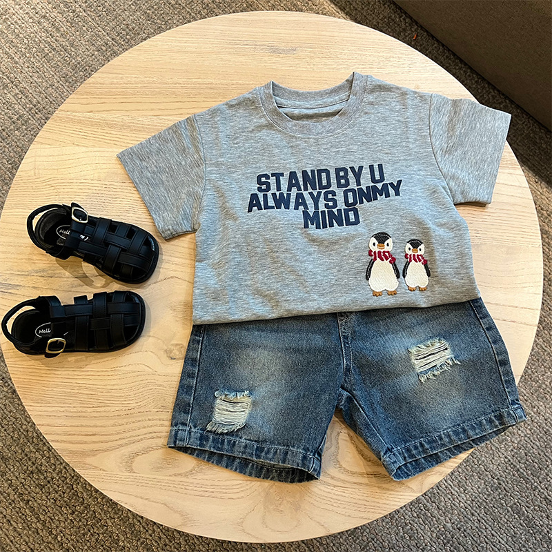 어린이 편지 인쇄 티셔츠 어린이 수 놓은 짧은 소매 탑 여름 새로운 남성과 여성의 아기 크루 넥 옷