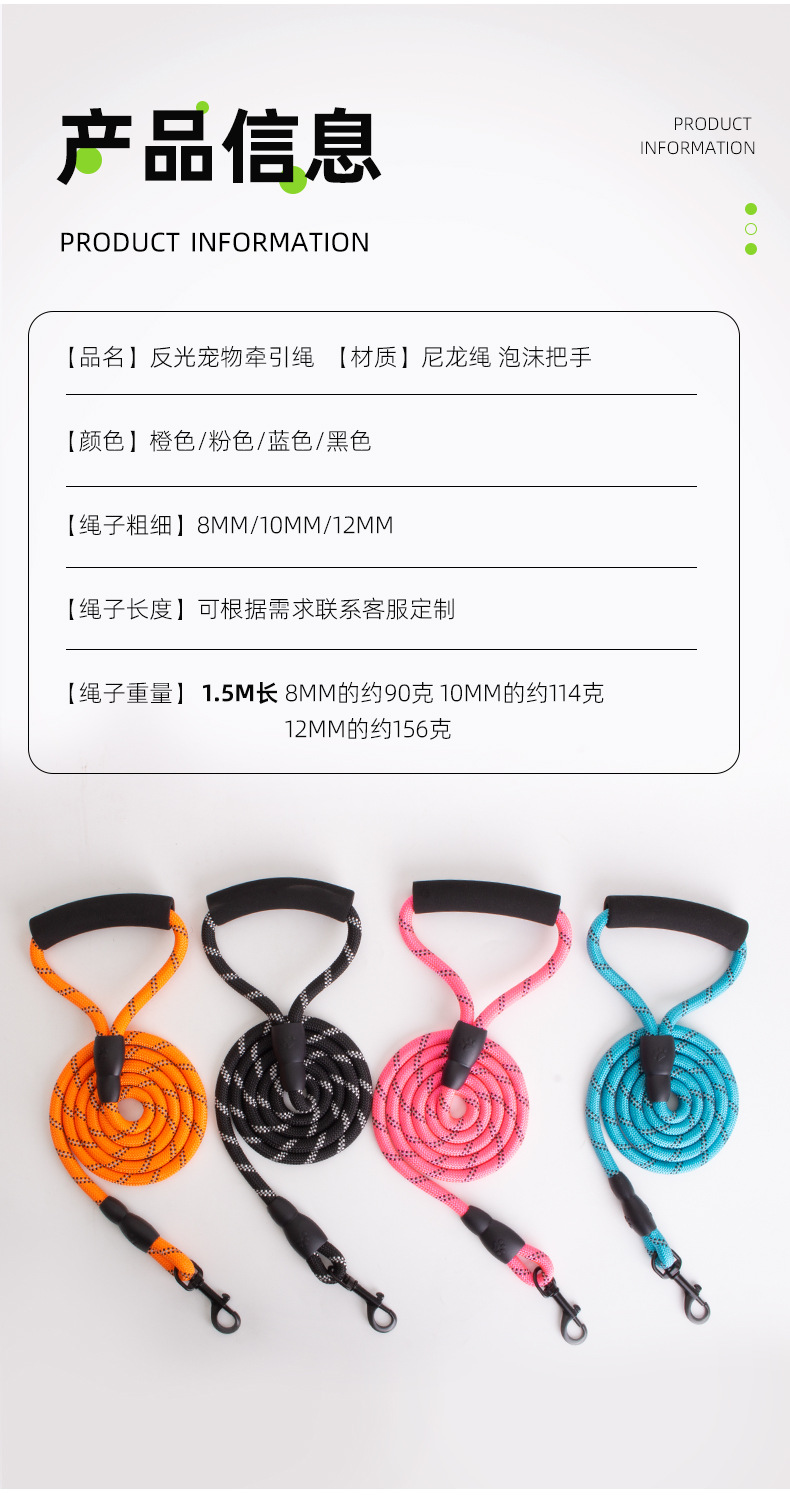 애완 동물 용품 국경 해외 창고 애완 동물 가죽 끈 멀티 컬러 라운드 로프 개 로프 반사 개 가죽 끈 개 걷는 밧줄