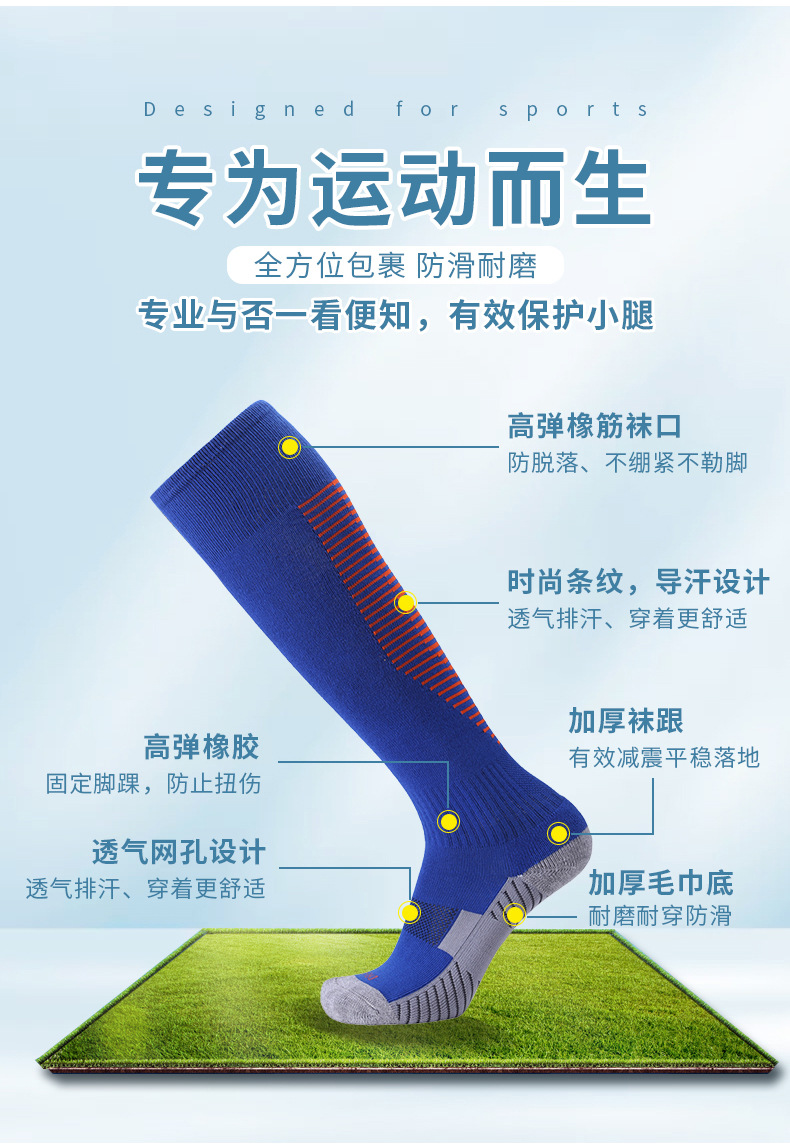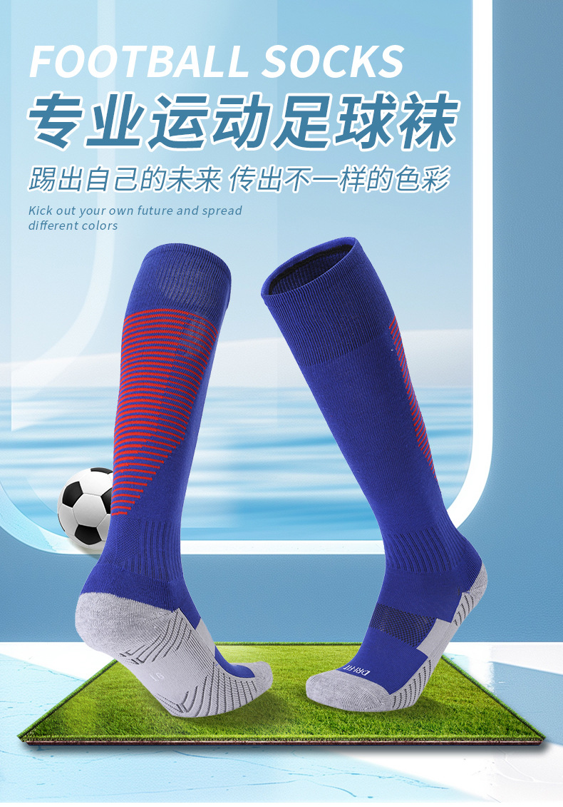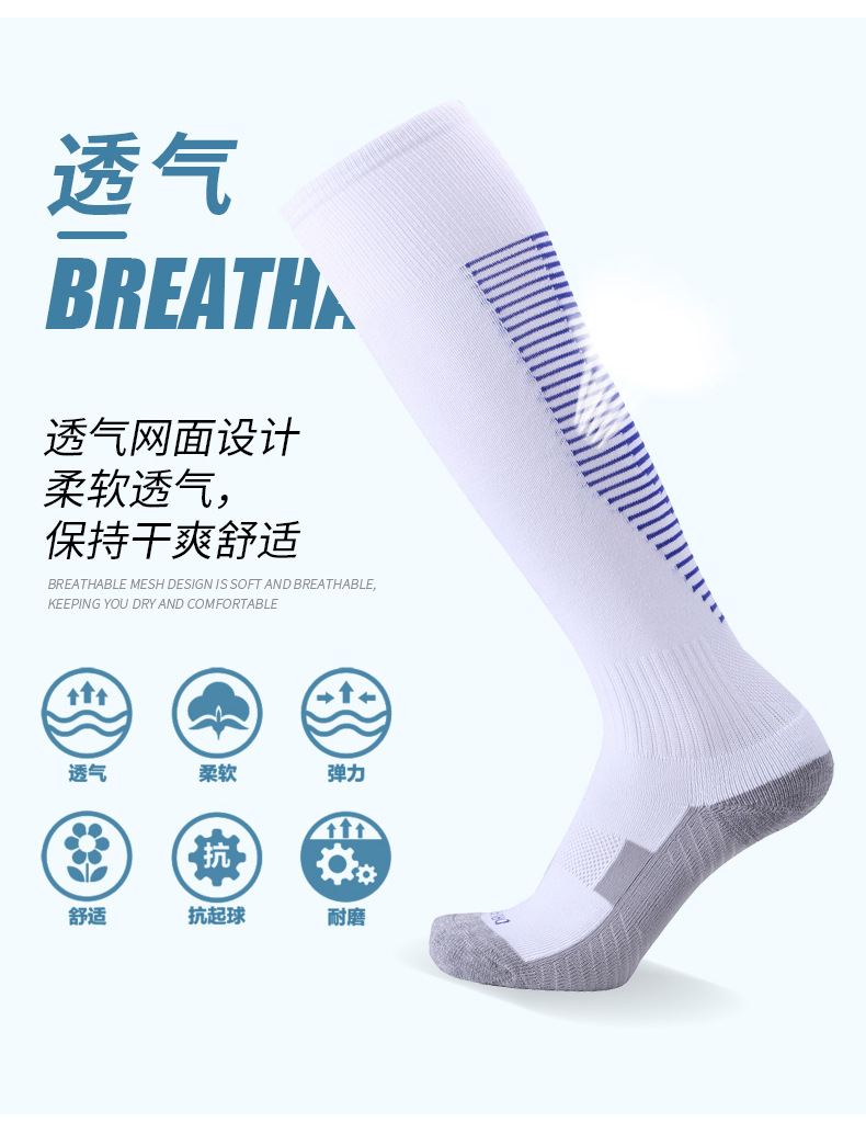 무릎 위의 긴 축구 양말, 성인과 어린이를 위한 수건 바닥 땀 흡수 및 내마모성 스포츠 양말, 훈련용 미끄럼 방지 양말 도매스토어 가기