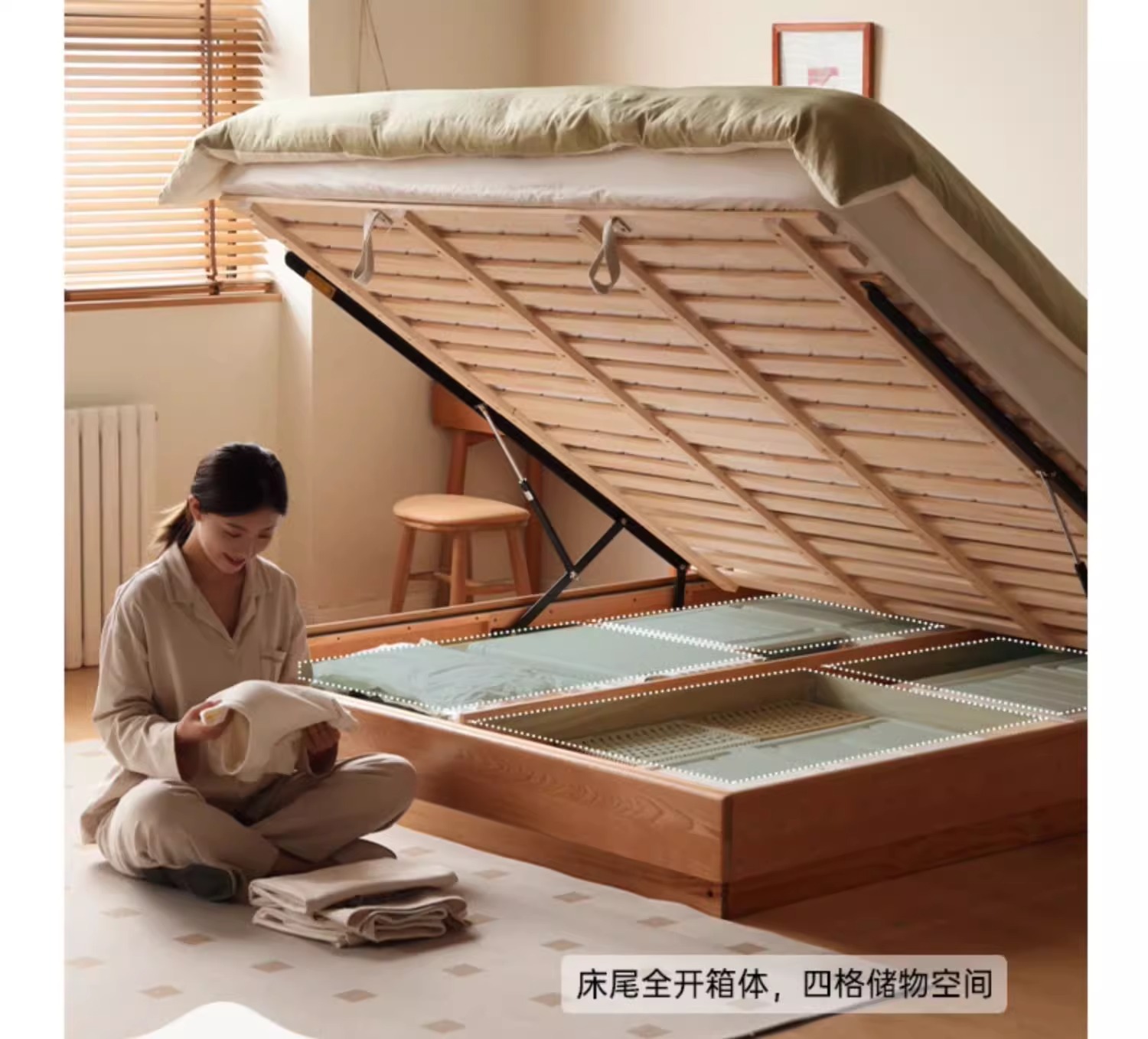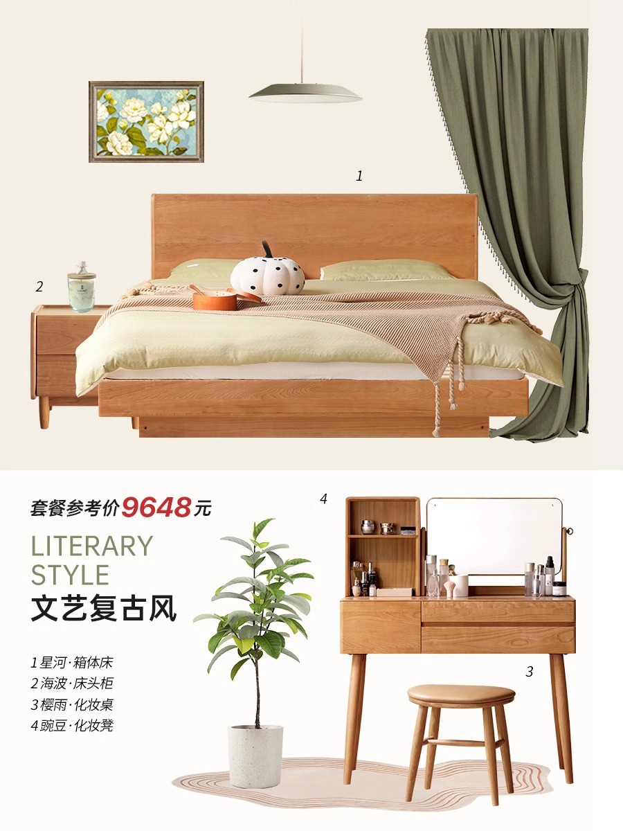 단단한 나무 상자 침대 저장 침대 침실 체리 나무 빛나는 서스펜션 침대 통나무 바람 1.5 층 서 더블 침대스토어 가기