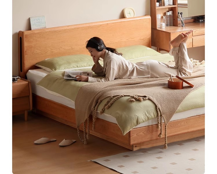 단단한 나무 상자 침대 저장 침대 침실 체리 나무 빛나는 서스펜션 침대 통나무 바람 1.5 층 서 더블 침대