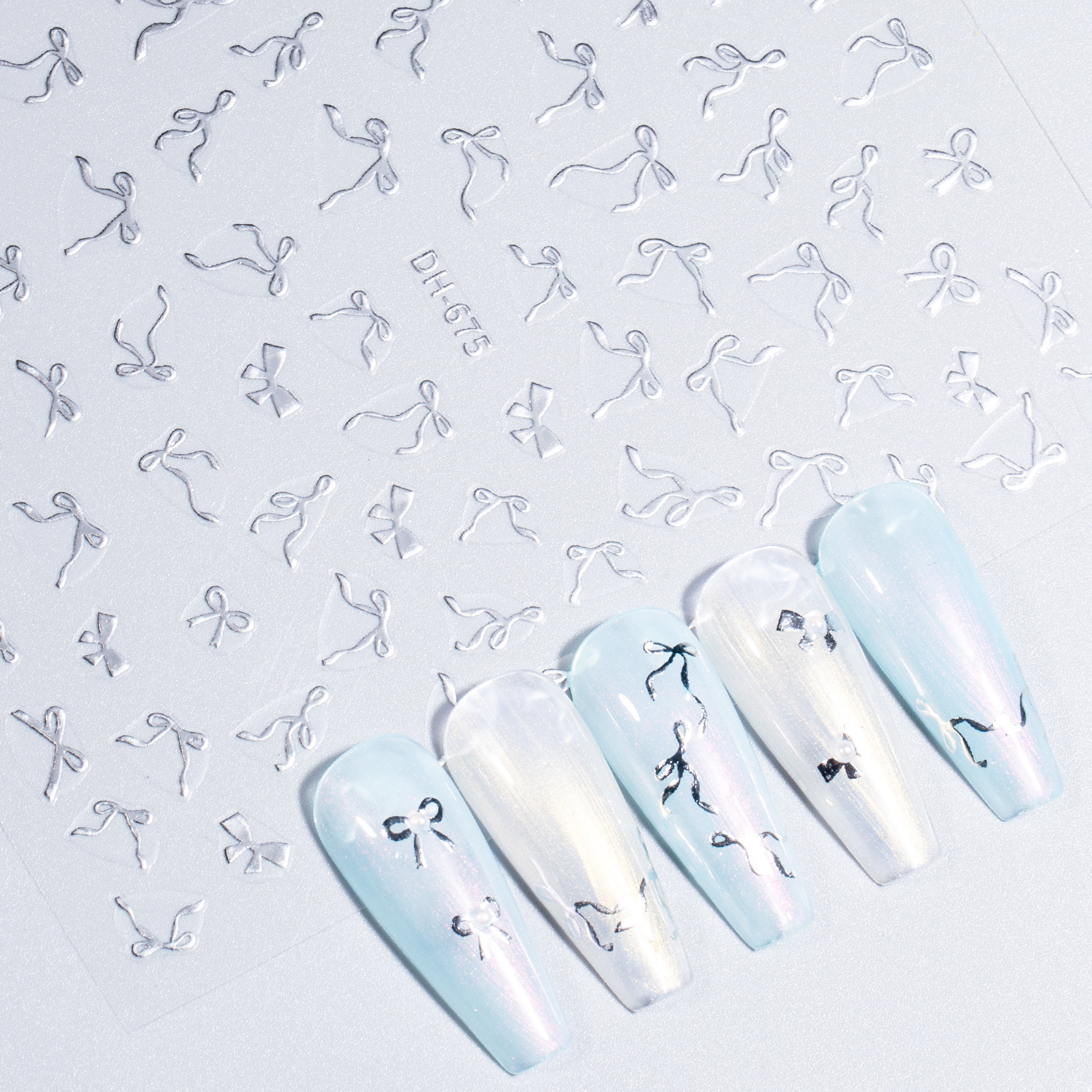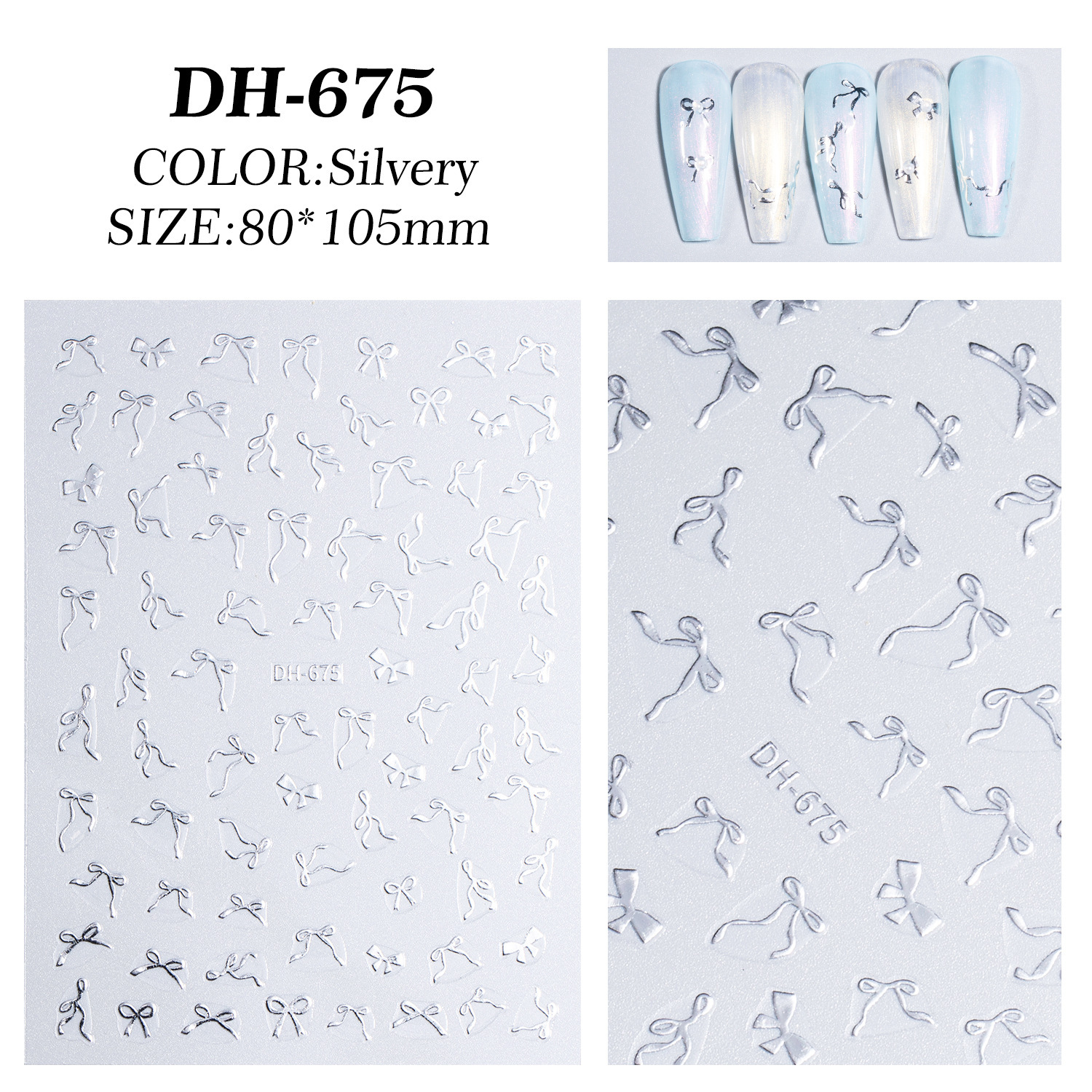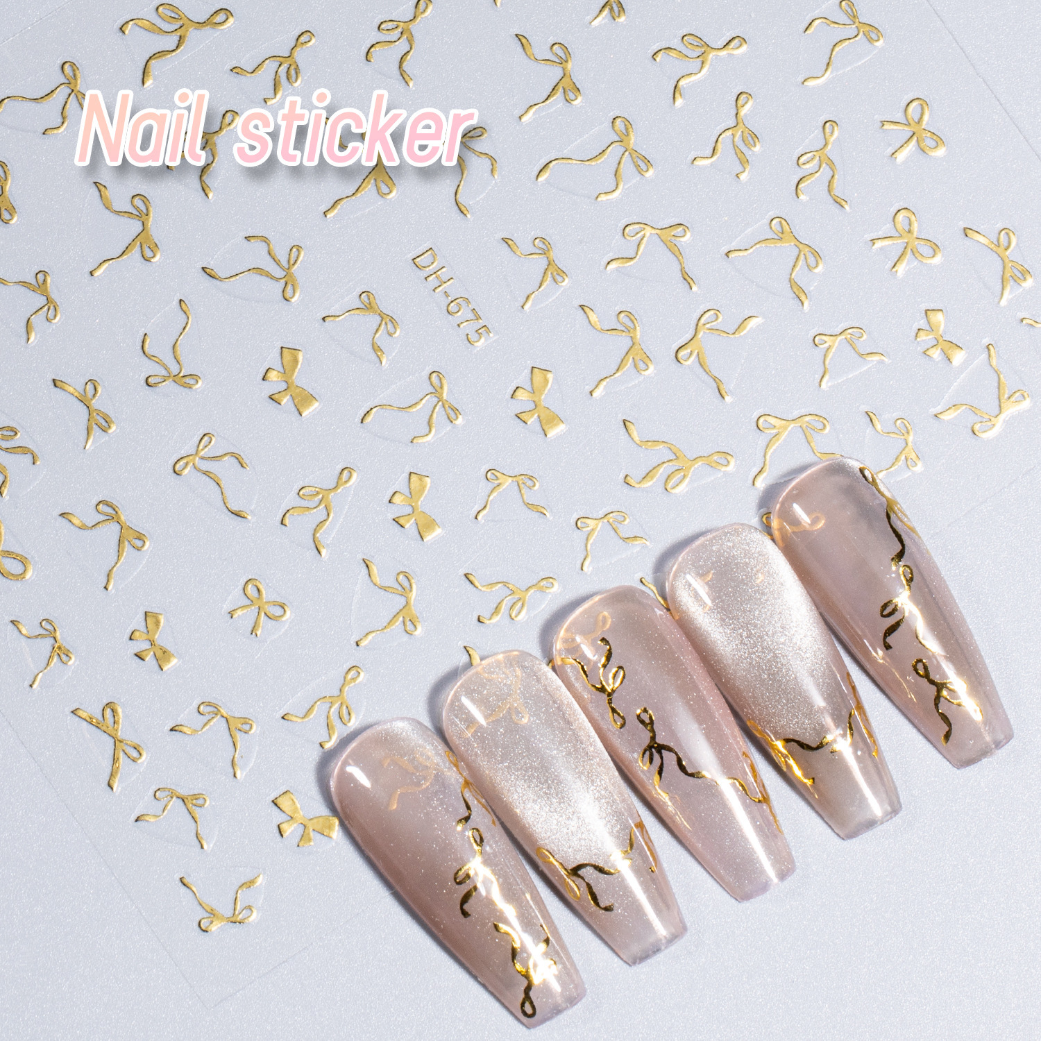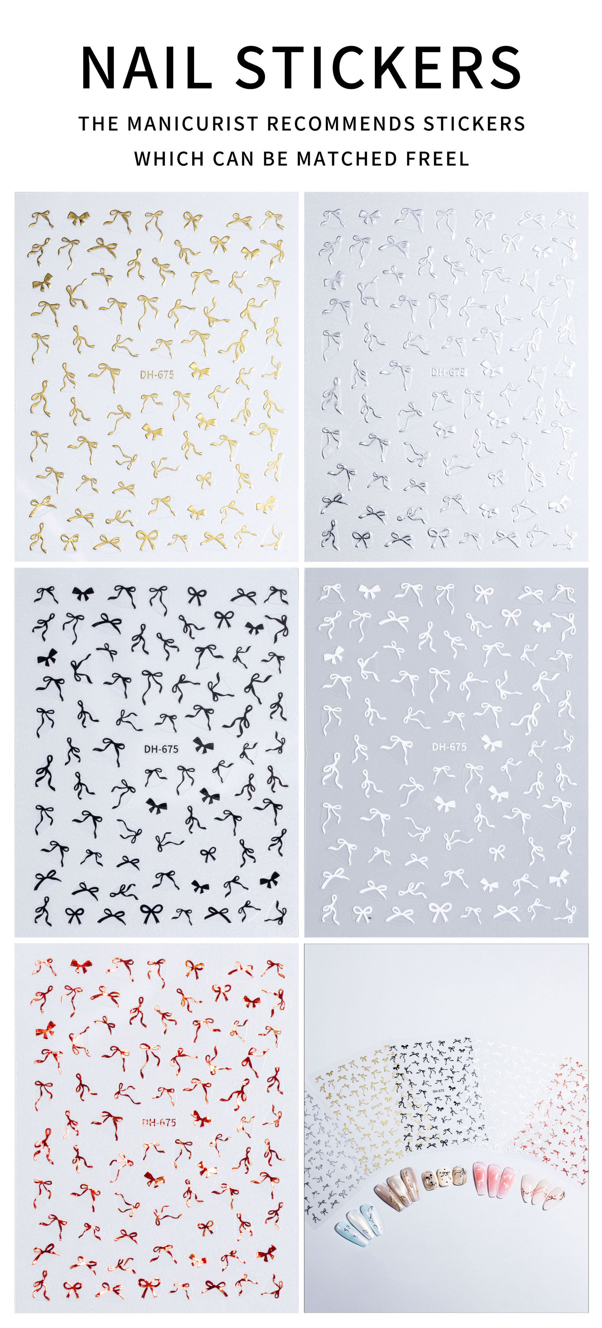 핫 스탬핑 리본 네일 스티커 평면 접착제 포함 심플하고 다용도 리본 네일 스티커 장식품 DH675