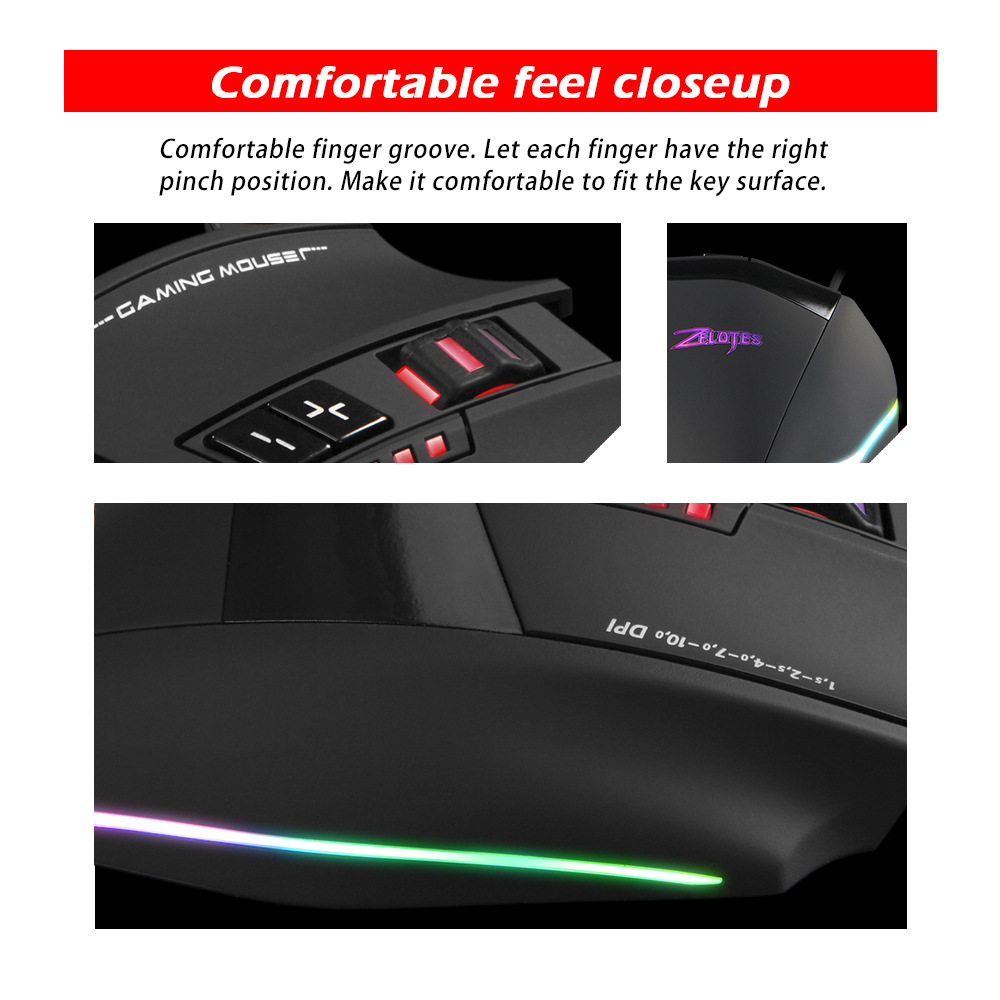 ZELOTES 마스터 C13 게임 프로그래밍 매크로 프레스 건 매크로 치킨 게임 CF RGB 유선 마우스