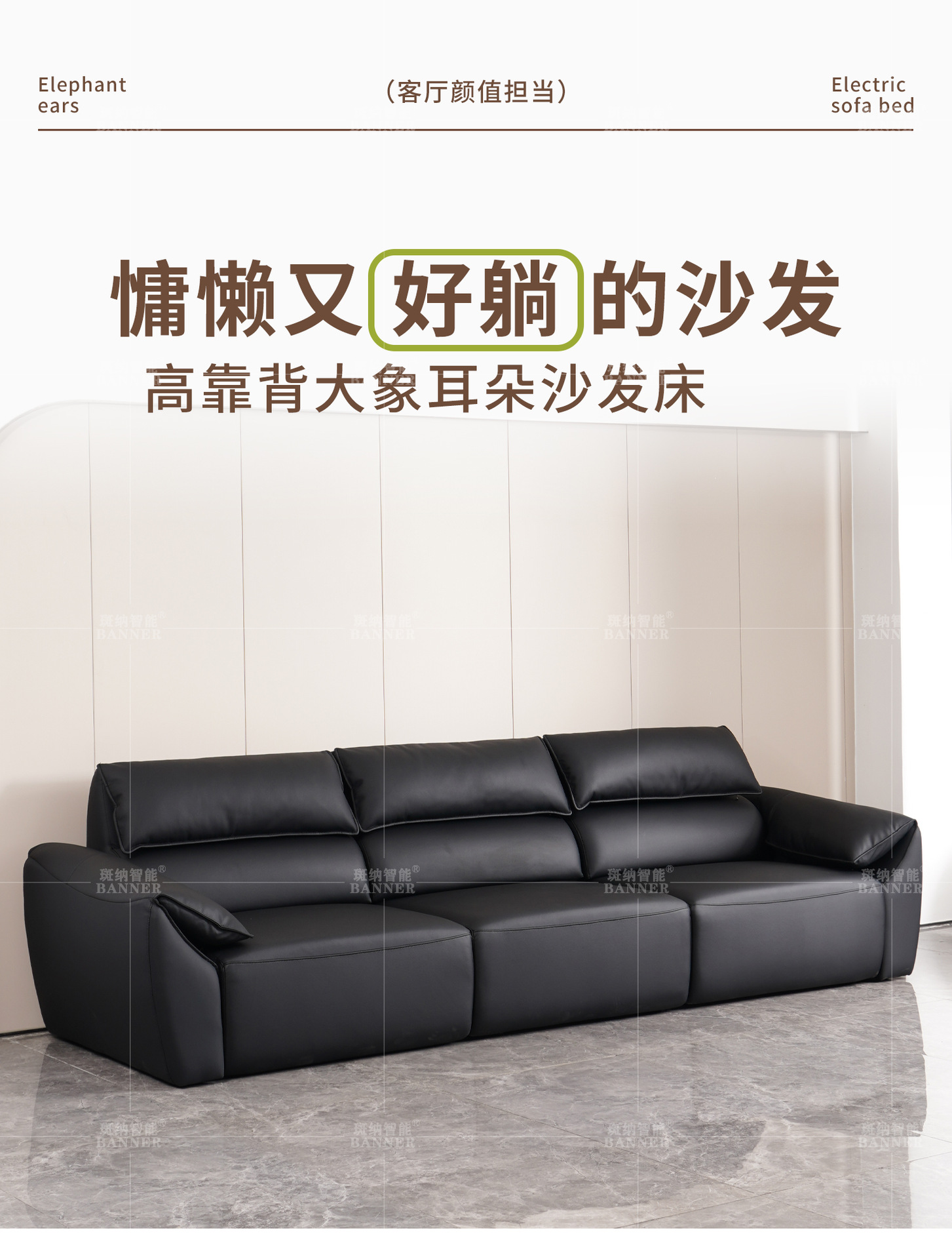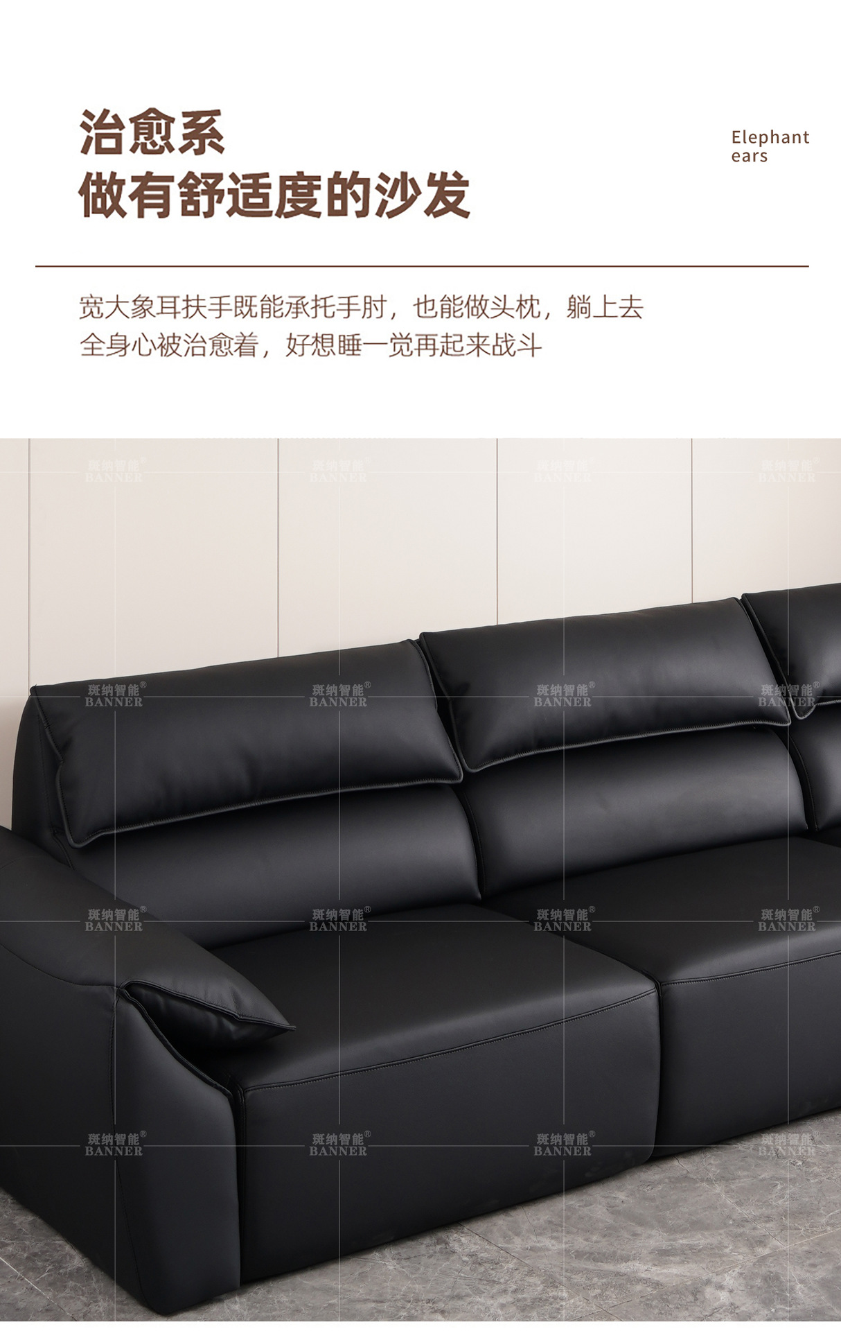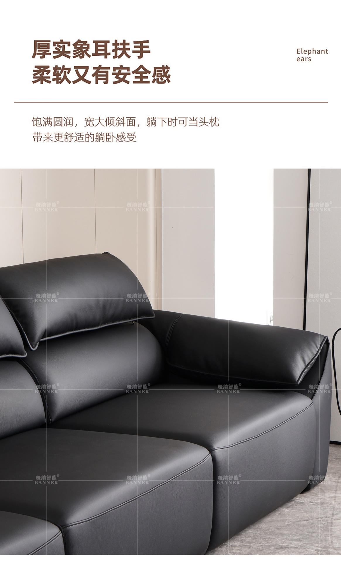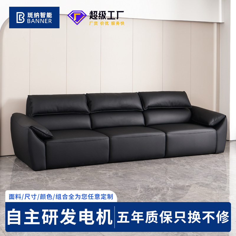 이탈리아 미니멀리스트 라이트 럭셔리 하이 백 코끼리 가죽 귀 소파 빅 블랙 소 현대 탑 레이어 Cowhide 소파 침대스토어 가기