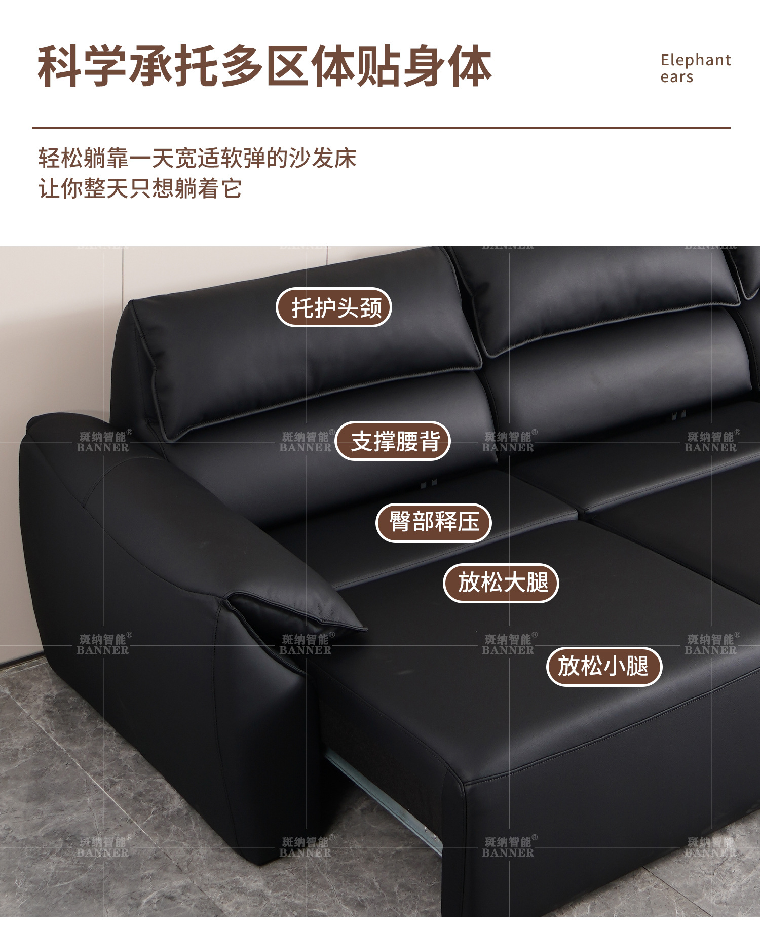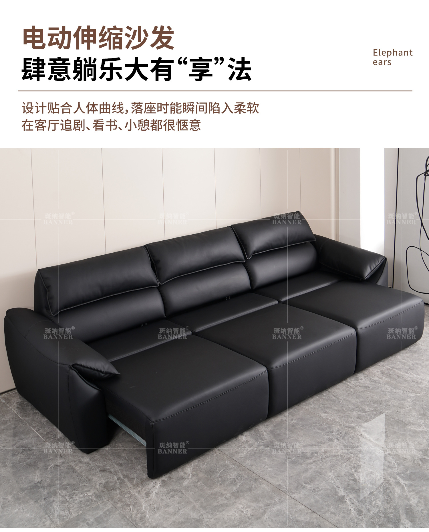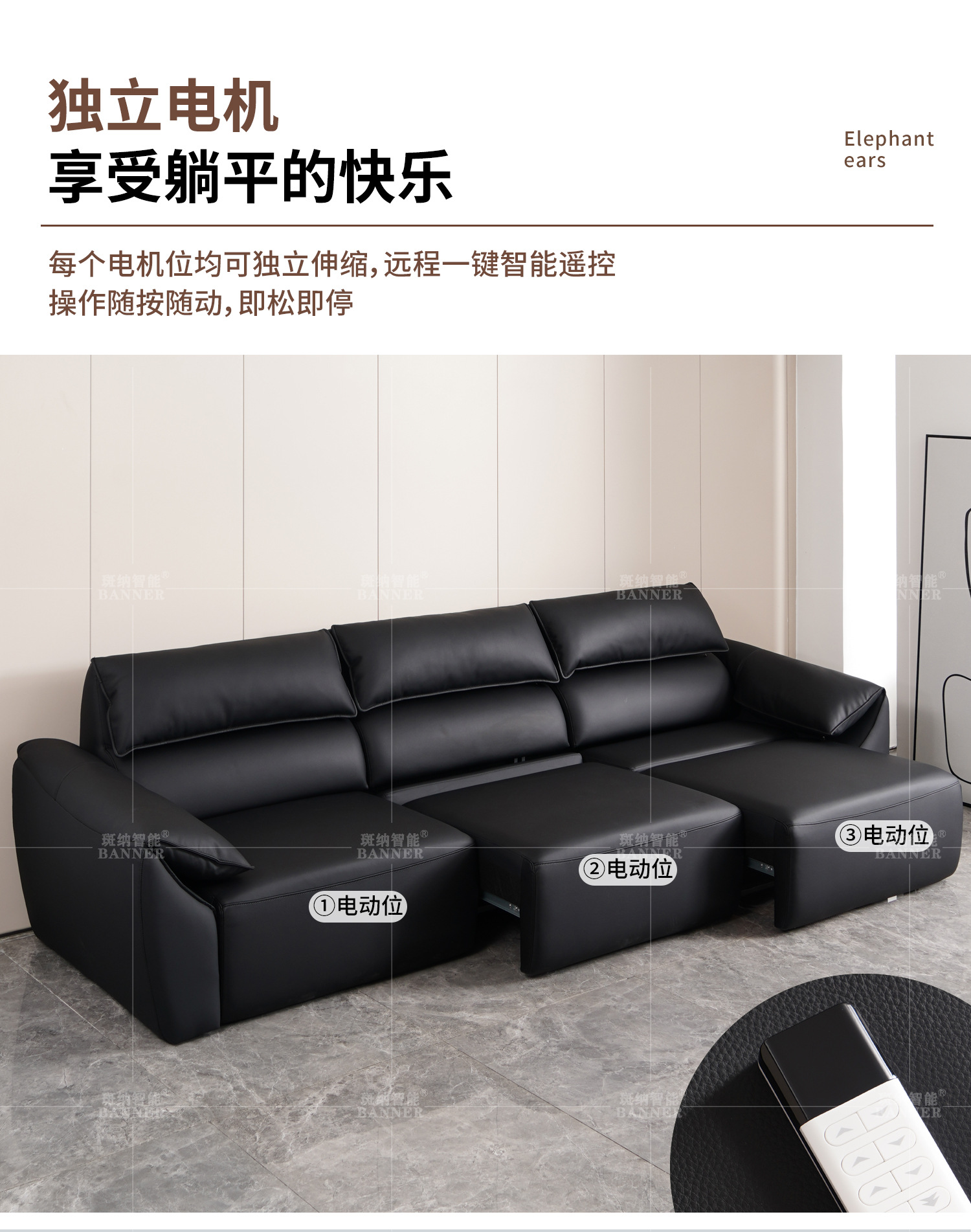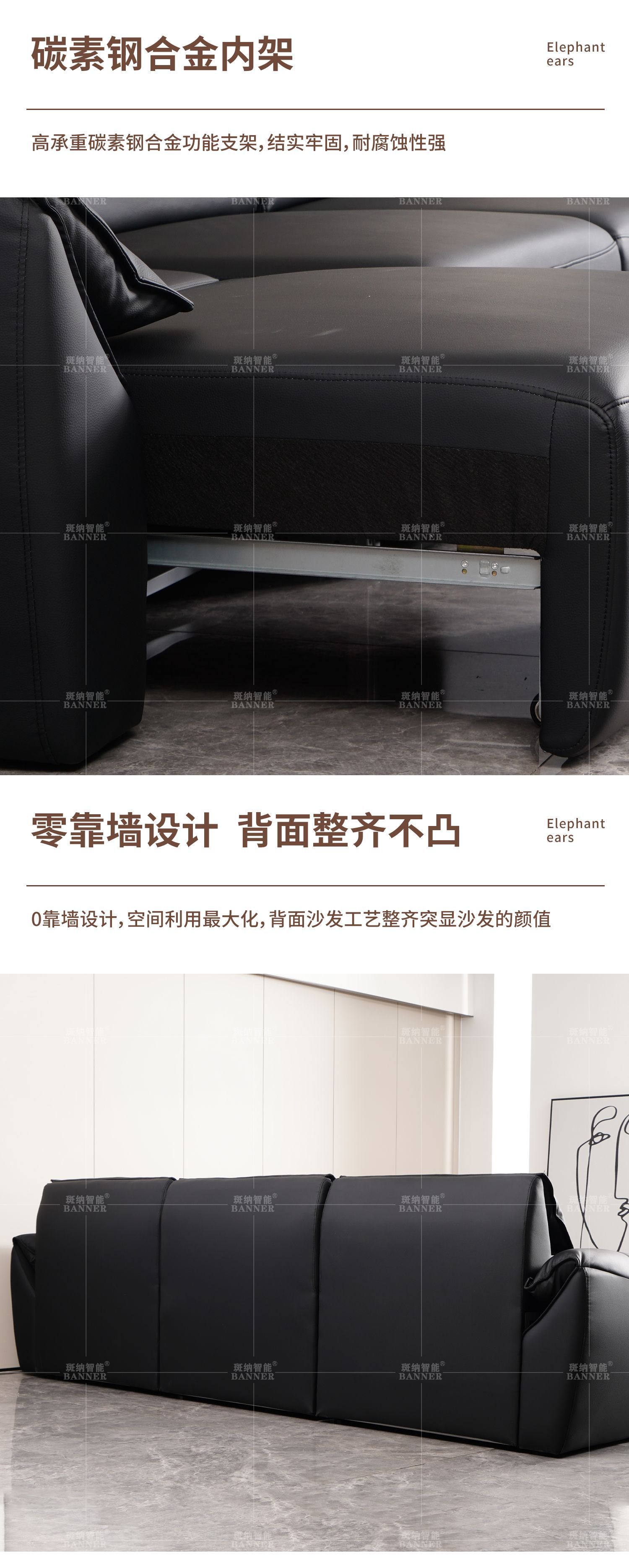 이탈리아 미니멀리스트 라이트 럭셔리 하이 백 코끼리 가죽 귀 소파 빅 블랙 소 현대 탑 레이어 Cowhide 소파 침대스토어 가기