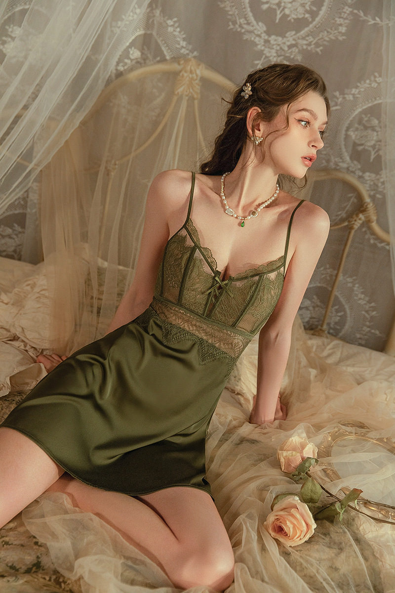 특가 정리, 여성용 섹시 잠옷, 여름 신상 아이스 실크 얇은 스타일, 퓨어 러블리 스타일, 가슴 패드가 있는 레이스 슬립 드레스스토어 가기