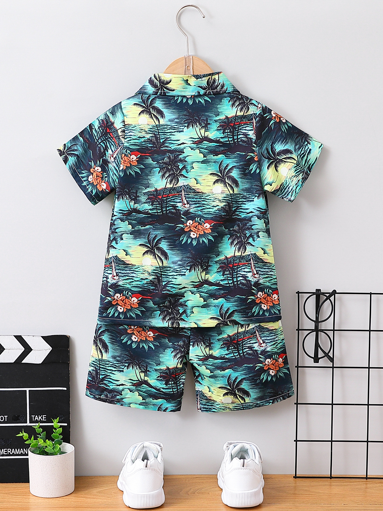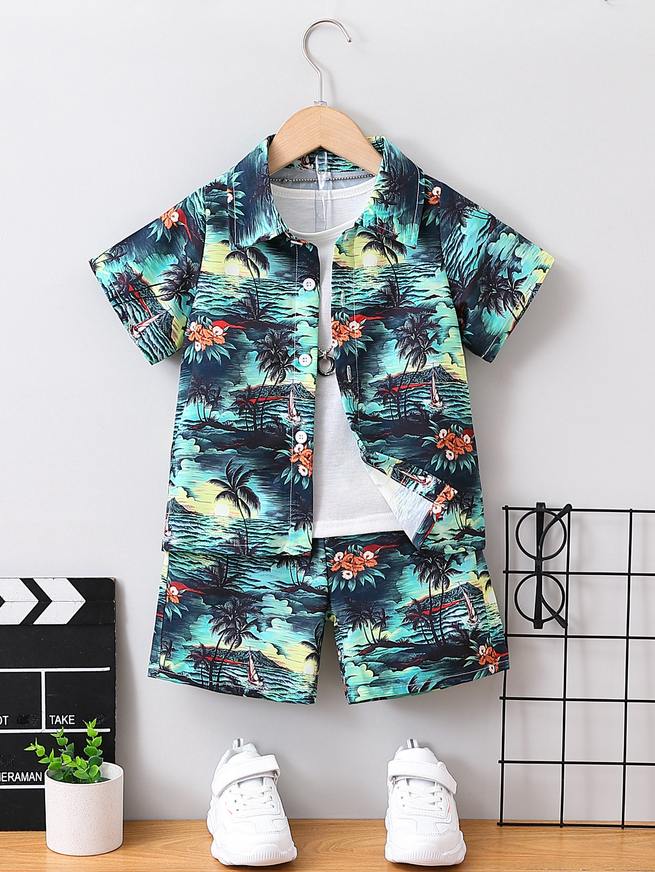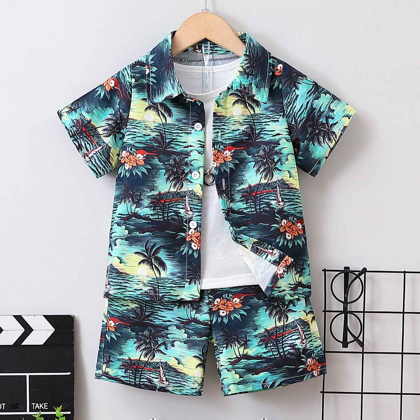 소년의 여름 해변 반팔 Lel 카디건 최고 반바지 세트 어린이 여름 원피스 컬러 셔츠 반바지 두 조각스토어 가기