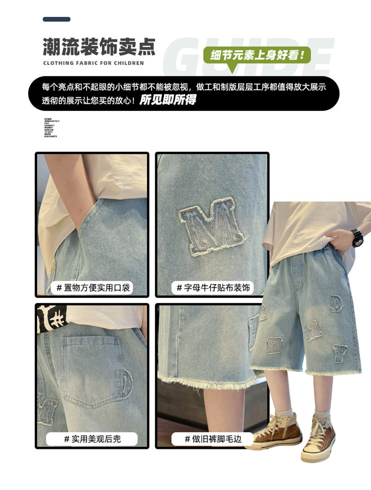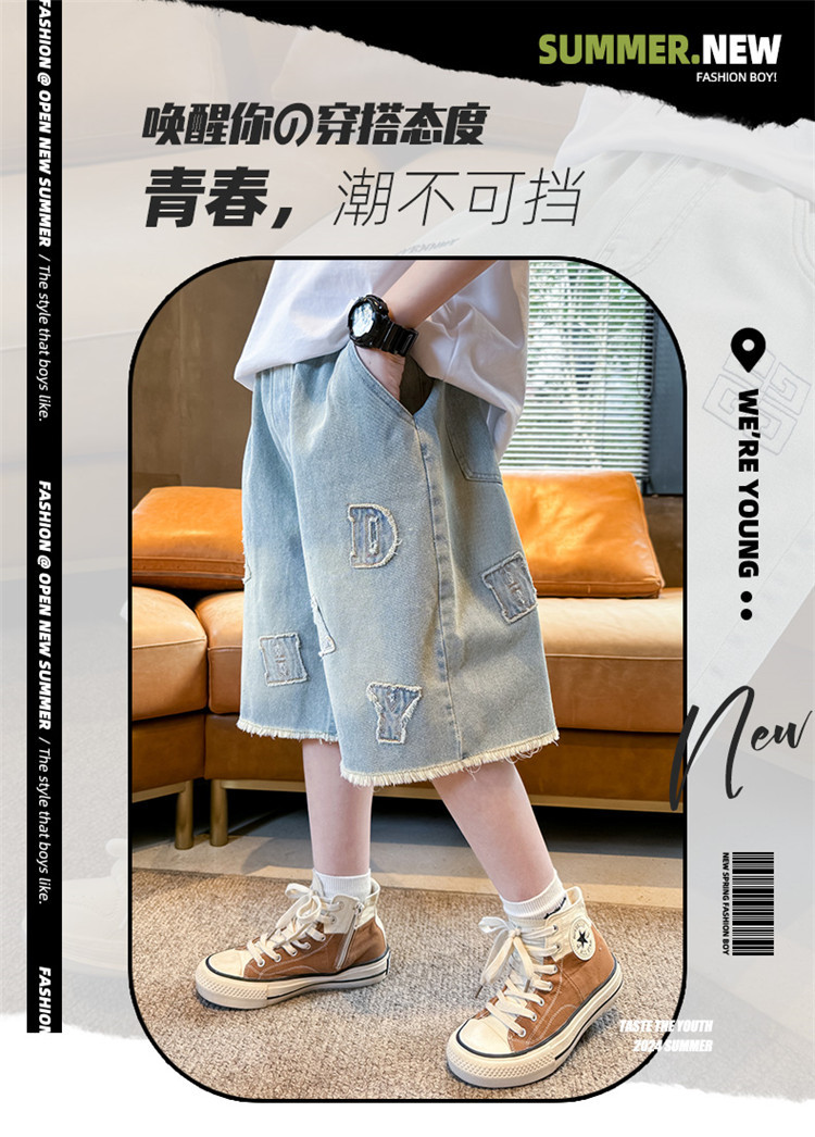 아동복 남아 여름 바지 얇은 중간 길이 바지 2026년 신상 중대형 아동 여름 데님 반바지