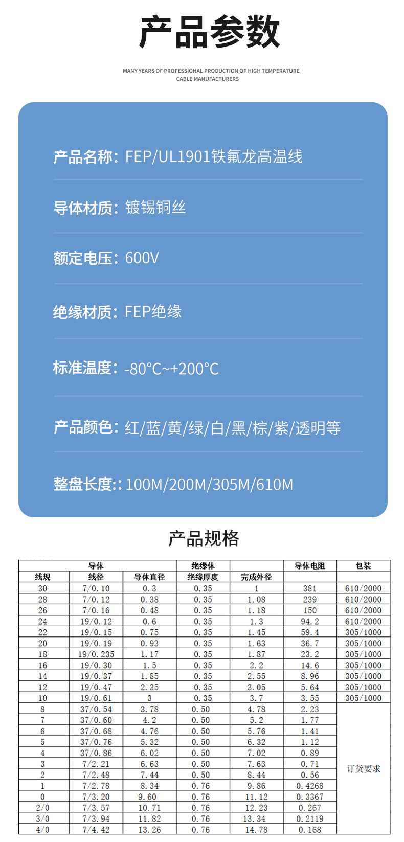 미국 표준 와이어 UL1901 테플론 고온 와이어 FEP 플라스틱 30 ~ 14AWG 600V 테플론 절연 와이어스토어 가기