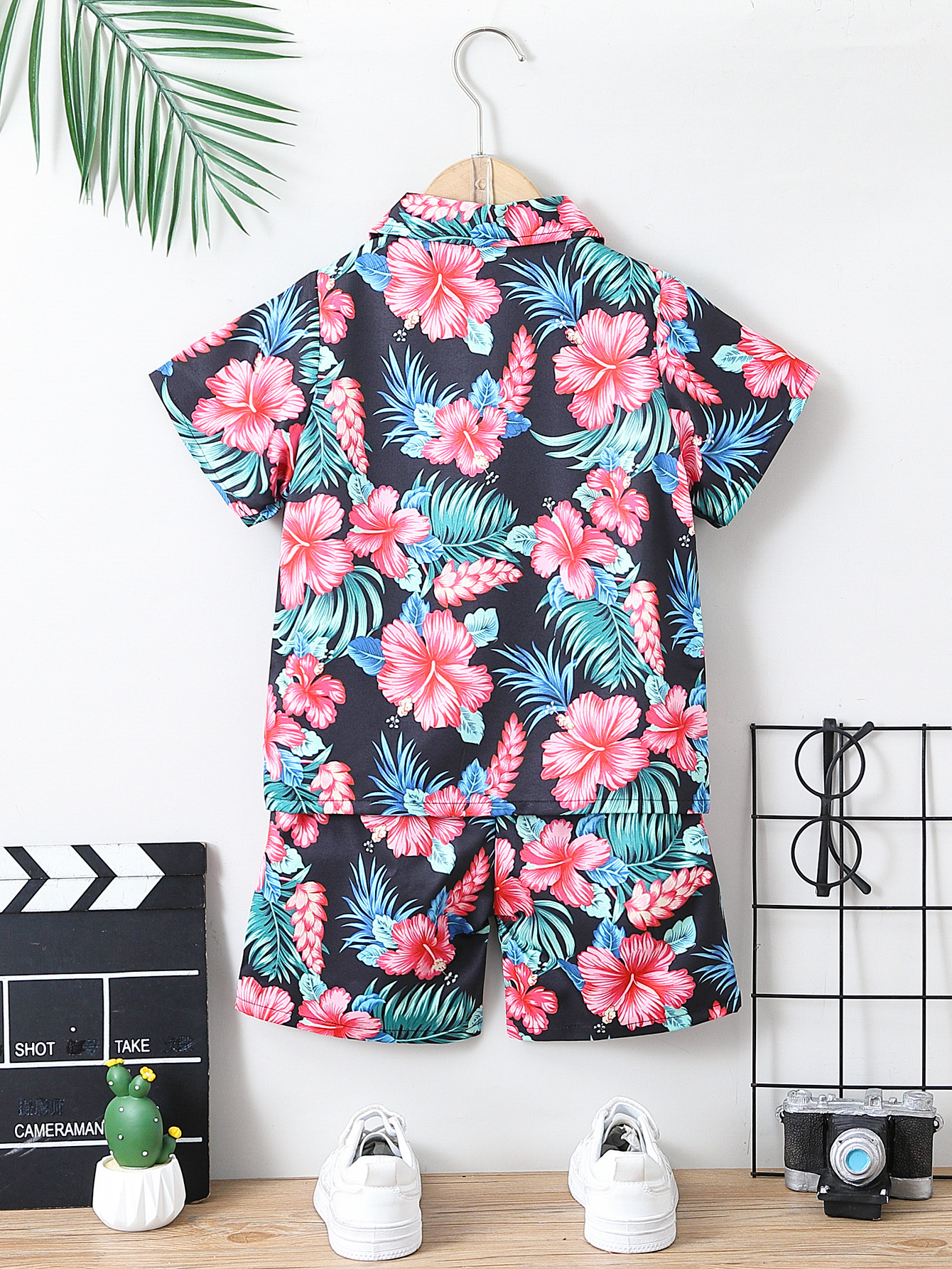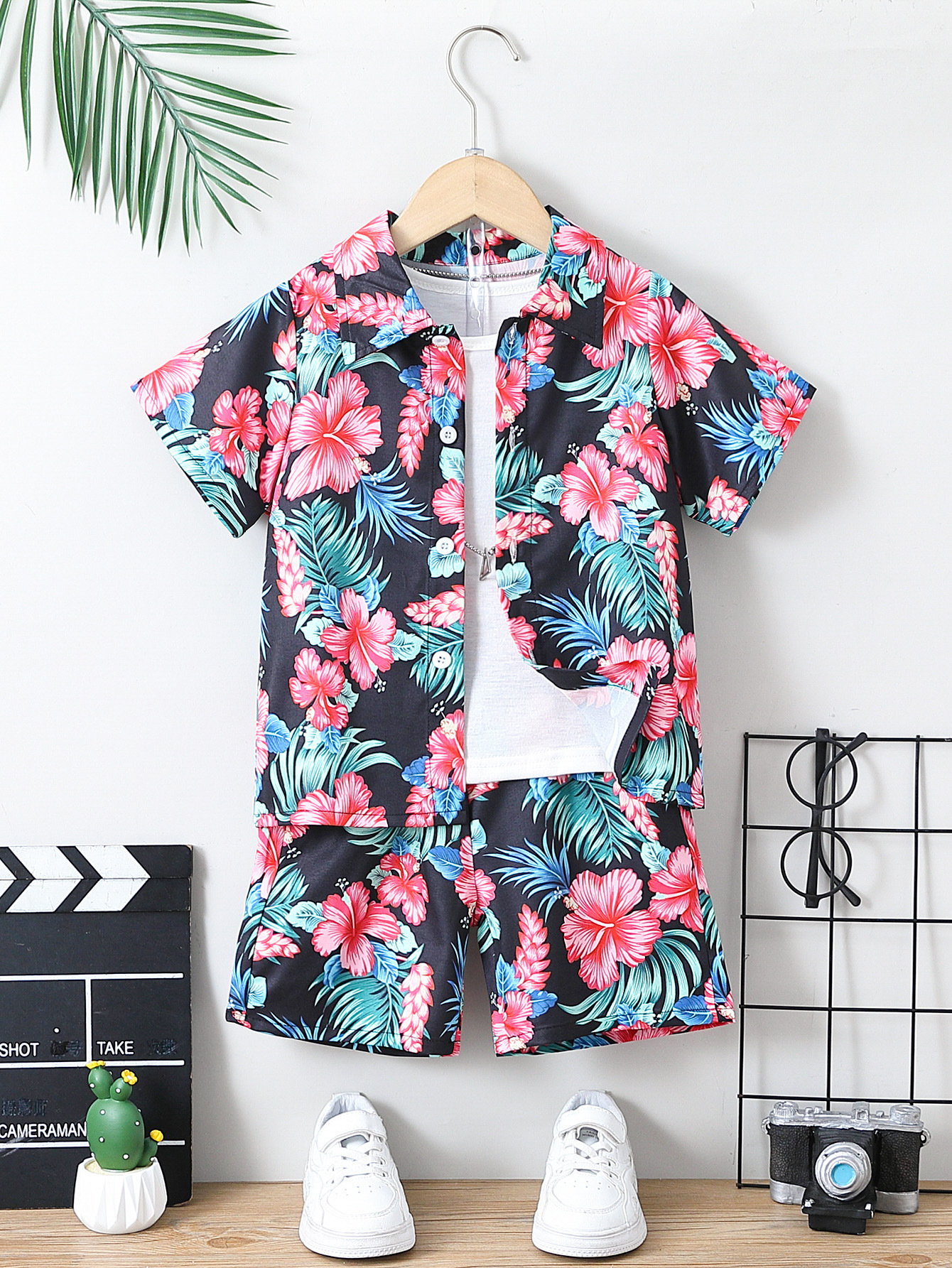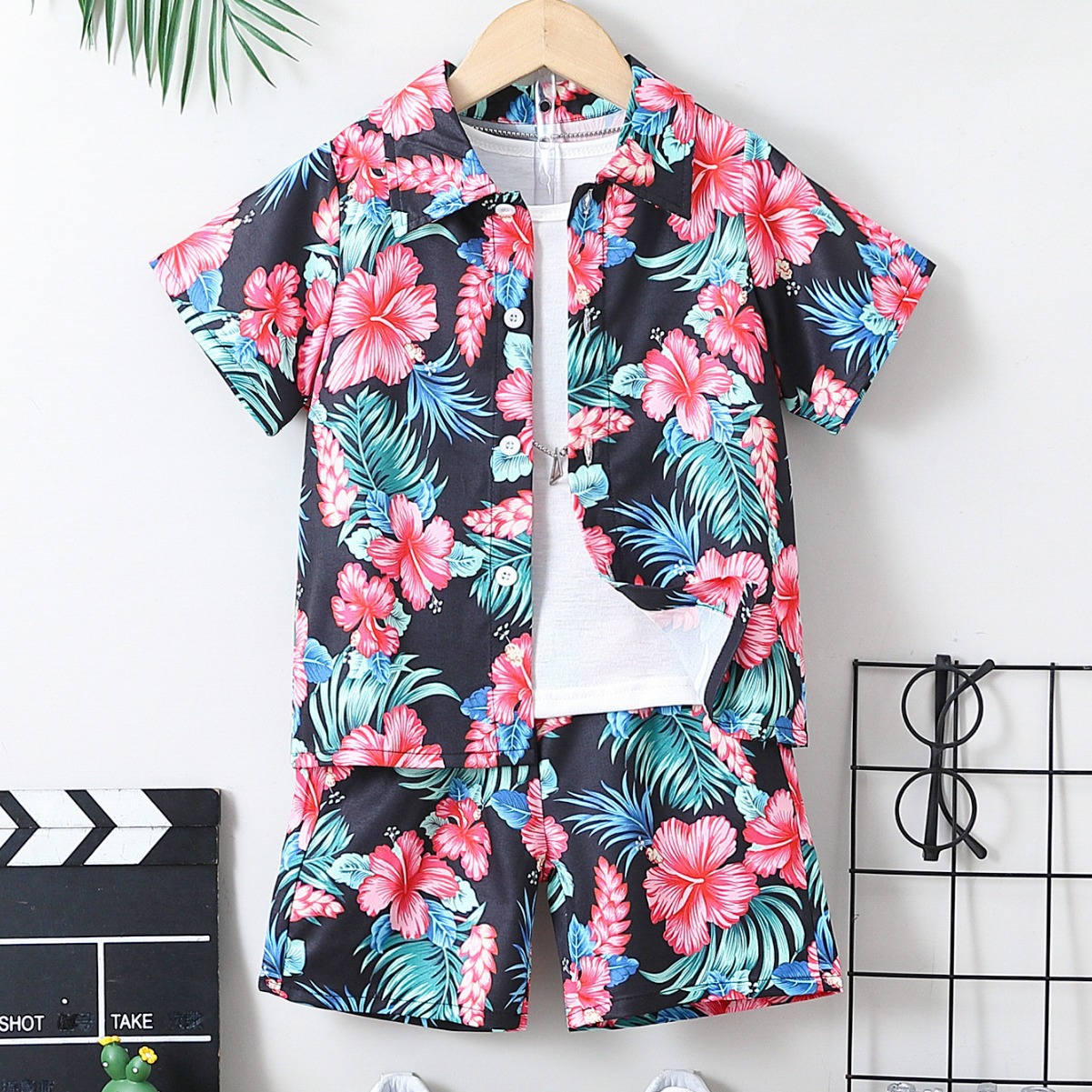 소년의 여름 해변 반팔 Lel 카디건 최고 반바지 세트 어린이 여름 원피스 컬러 셔츠 반바지 두 조각스토어 가기