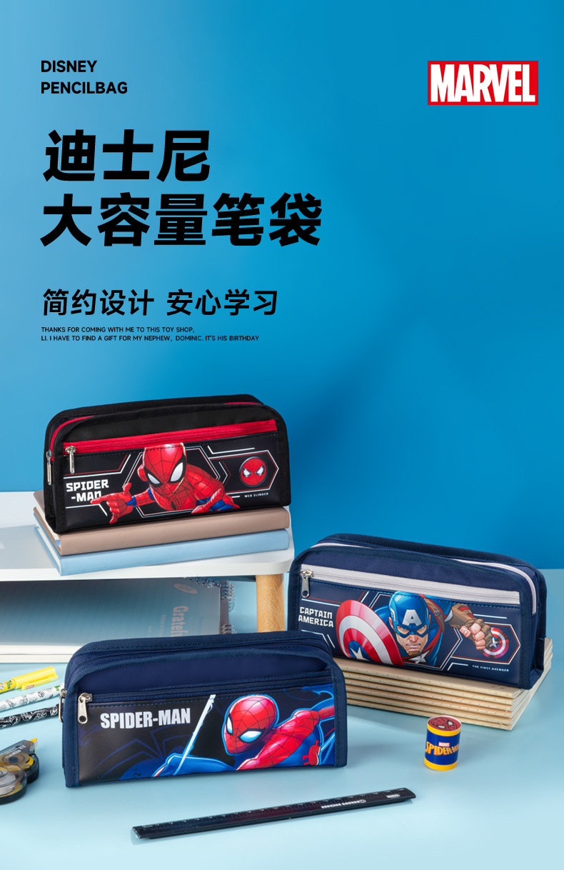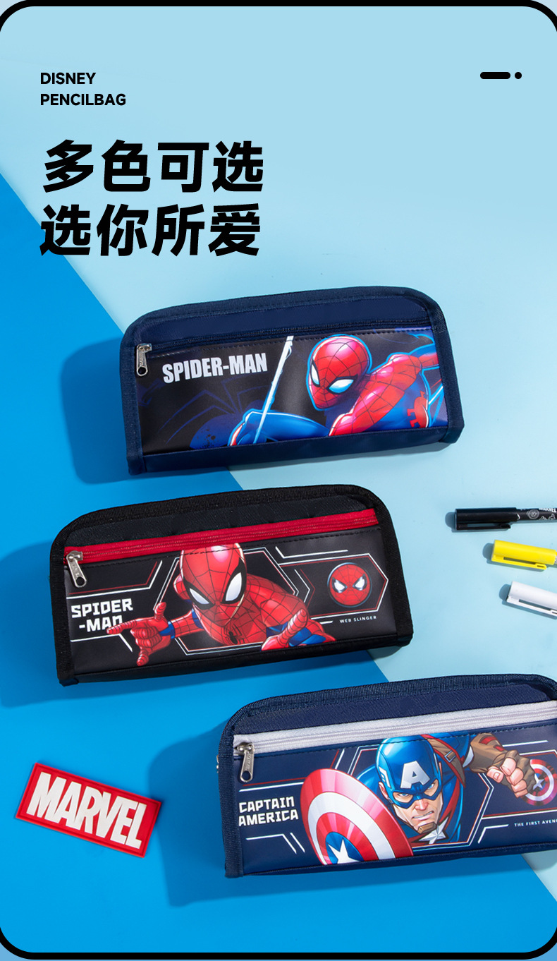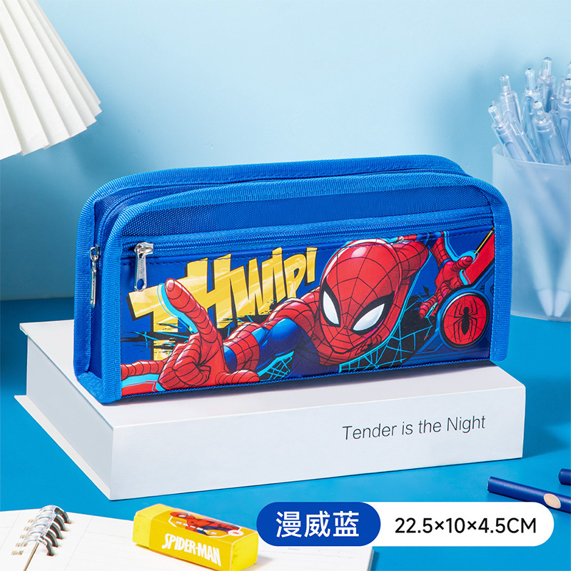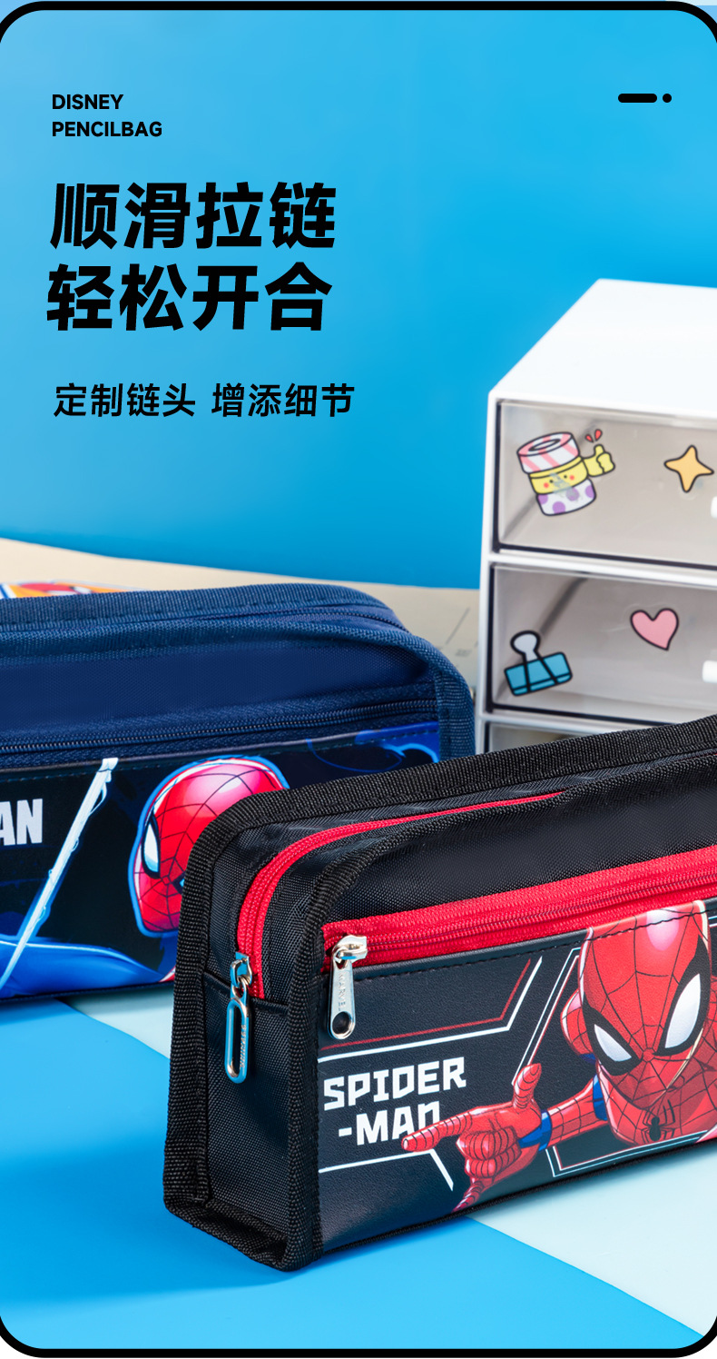 디즈니 스파이더 맨 캔버스 경량 무음 연필 가방 초등 및 중등 학생 1-3-6 학년 연필 가방 내구성 문구스토어 가기