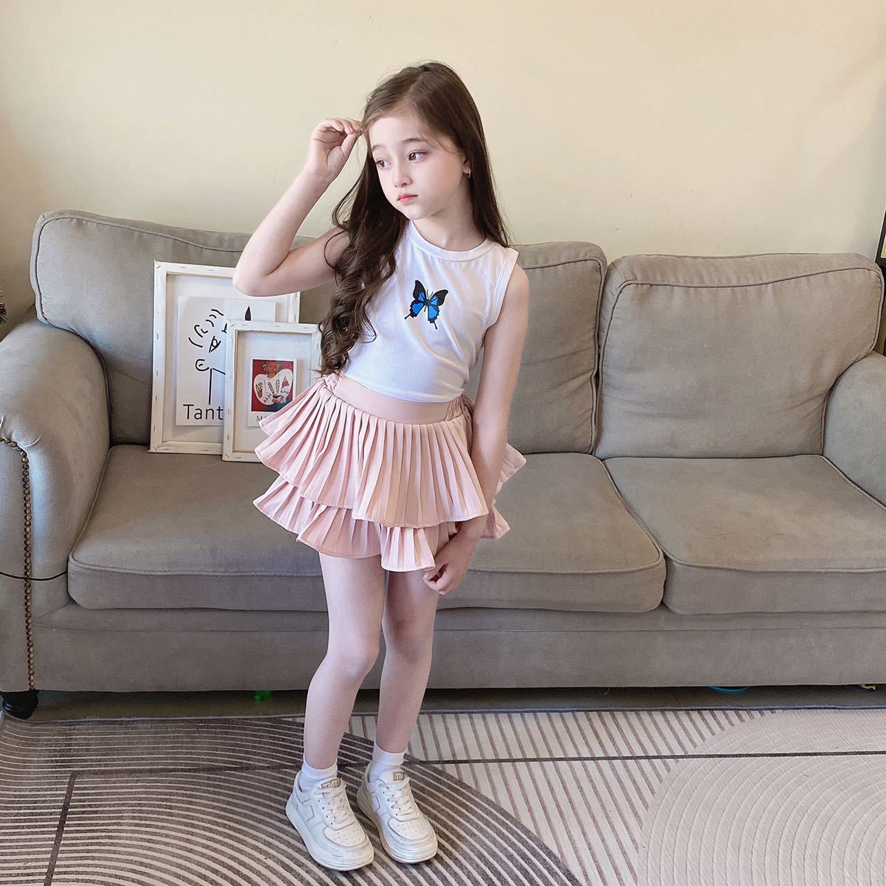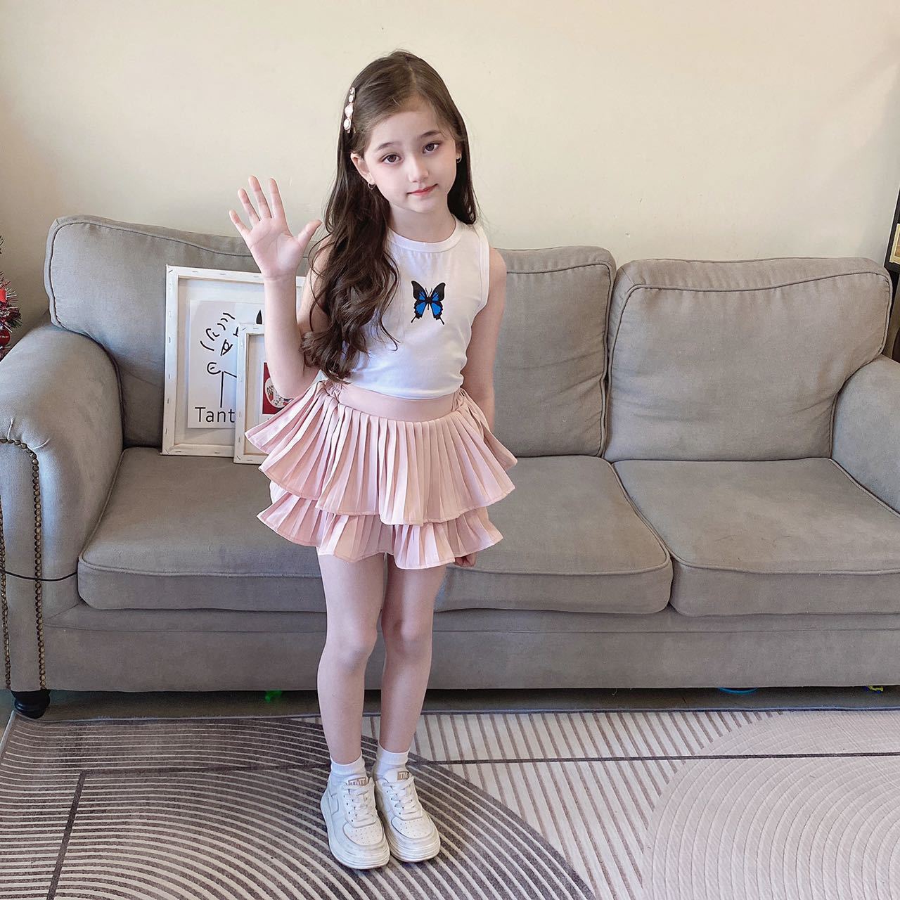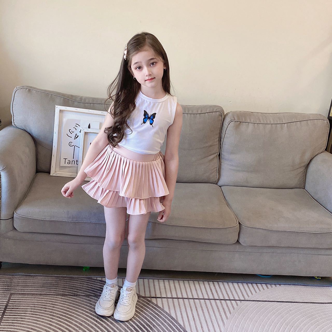 어린이 달콤한 투투 스커트 스커트 2024 여름 소녀 공주 스타일 주름 케이크 스커트 하이 퀄리티 국경스토어 가기