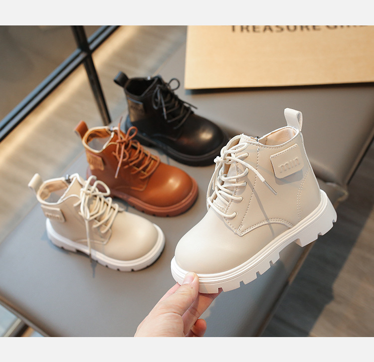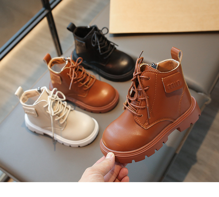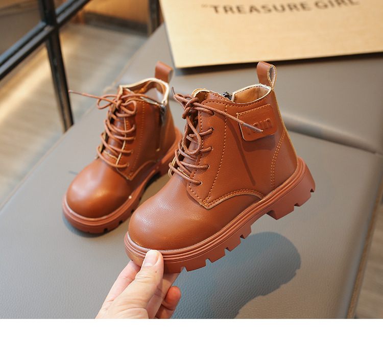 어린이 마틴 부츠 여성 신발 2024 새로운 가을 및 겨울 부드러운 가죽 영국 스타일 소녀 소년 부츠 중소 어린이 발목 부츠스토어 가기