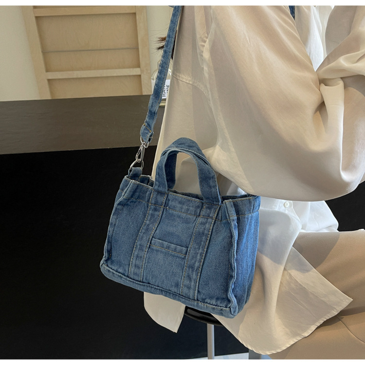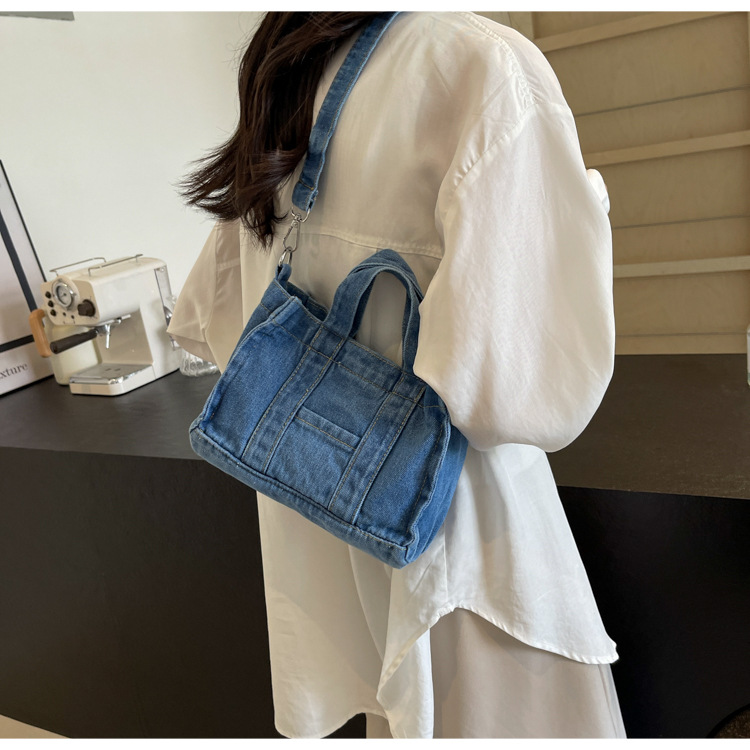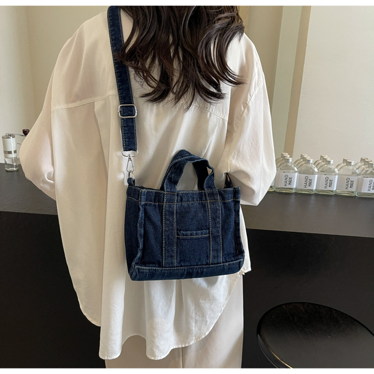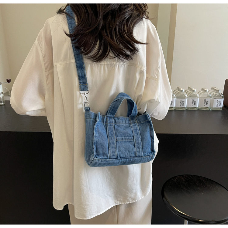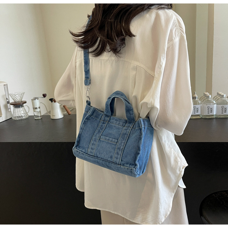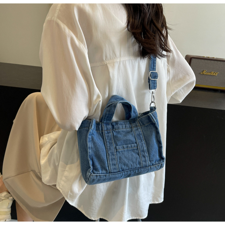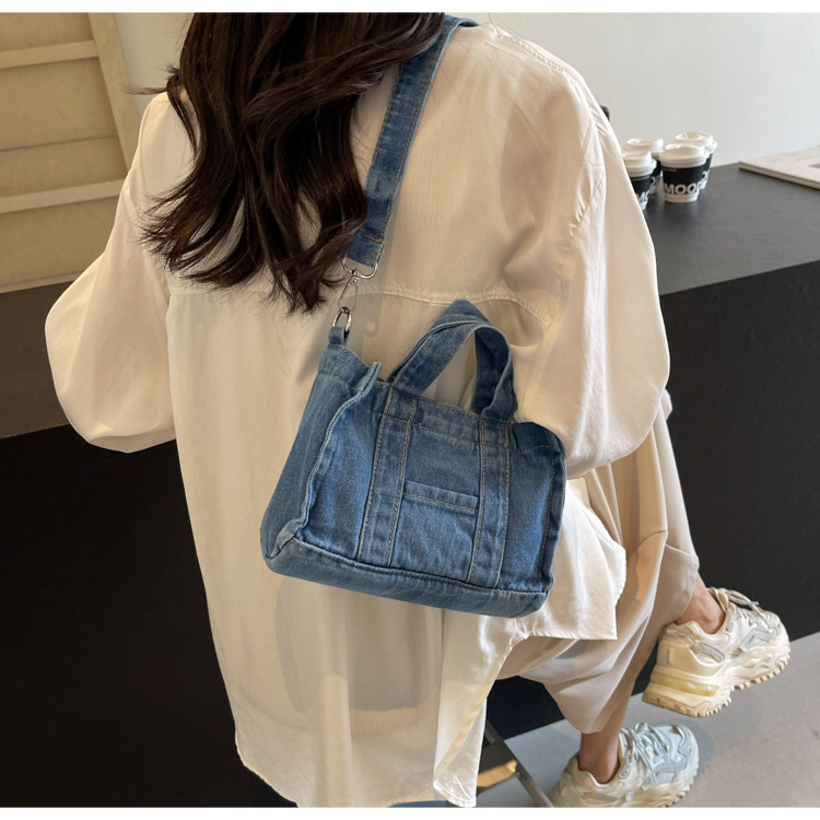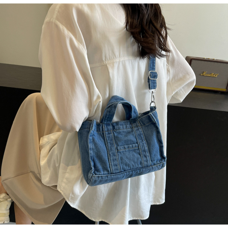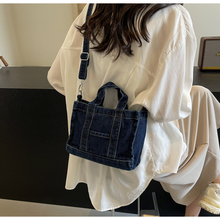 Ins 일본식 하라주쿠 소녀 싱글 숄더 크로스 바디 백 여성 한국식 세련된 레트로 캐주얼 올 매치 핸드 헬드 데님 백스토어 가기