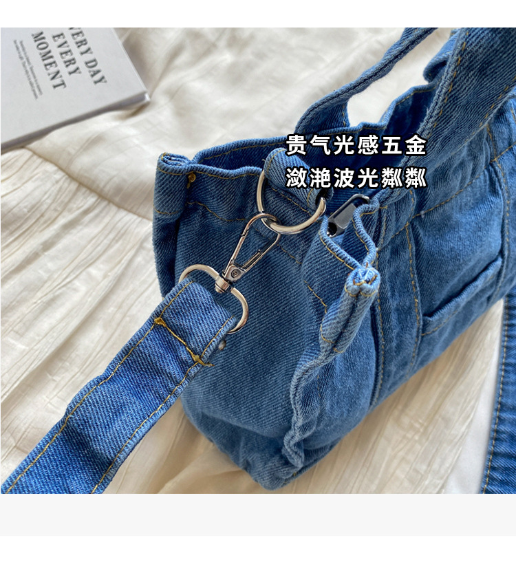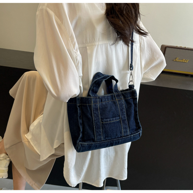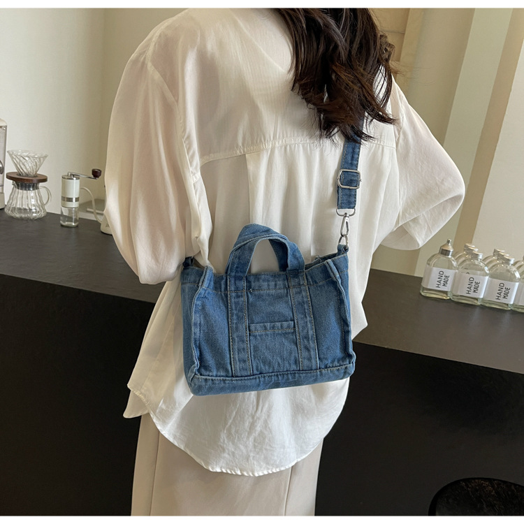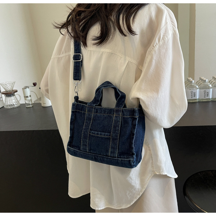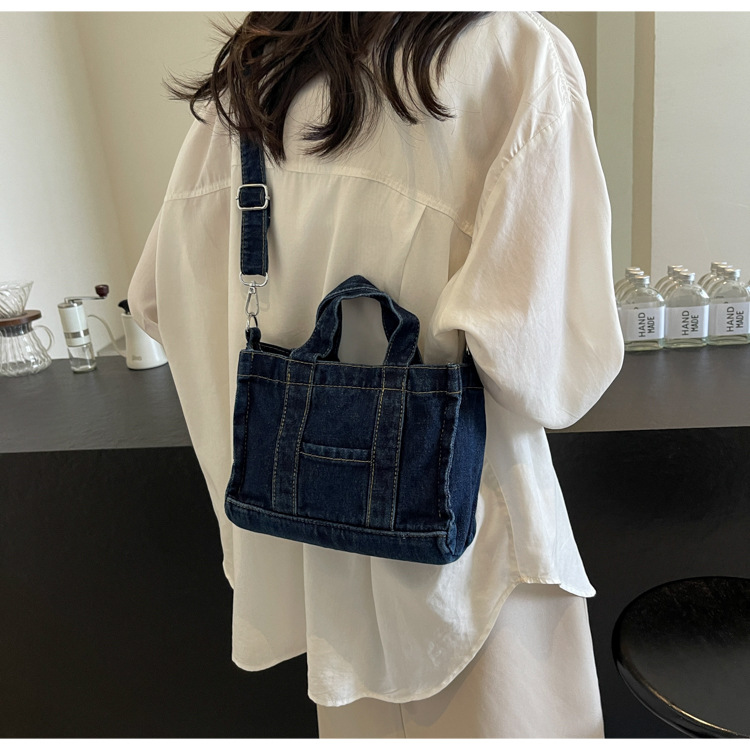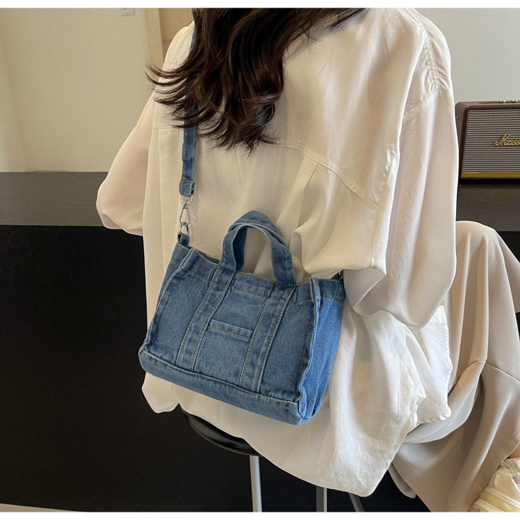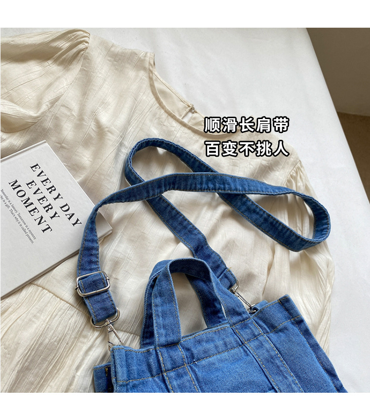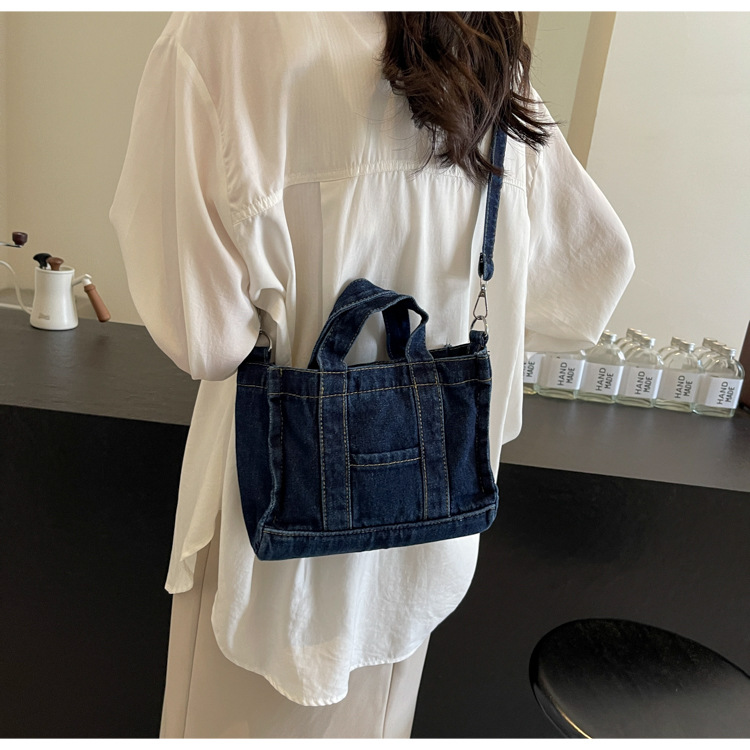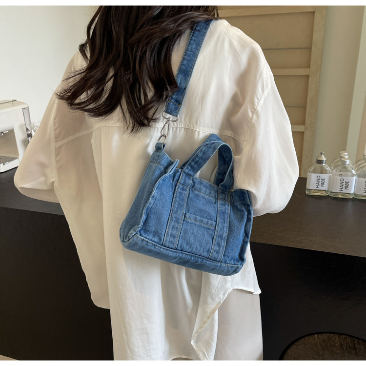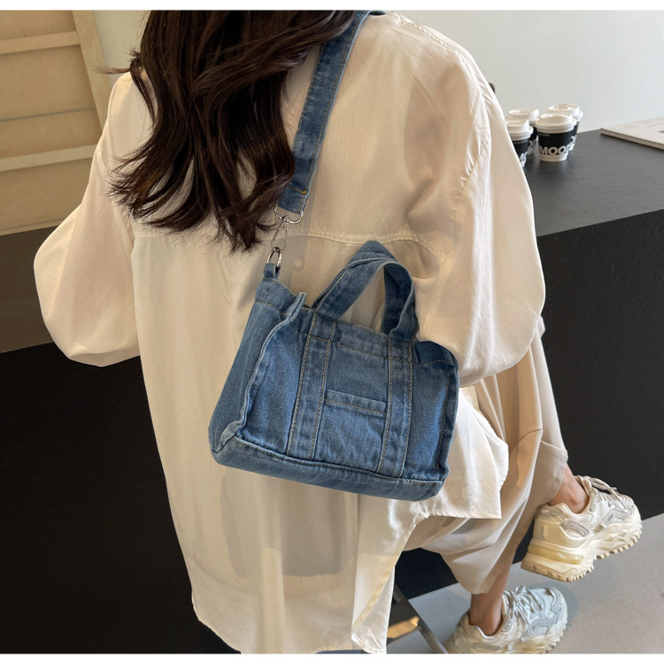 Ins 일본식 하라주쿠 소녀 싱글 숄더 크로스 바디 백 여성 한국식 세련된 레트로 캐주얼 올 매치 핸드 헬드 데님 백스토어 가기