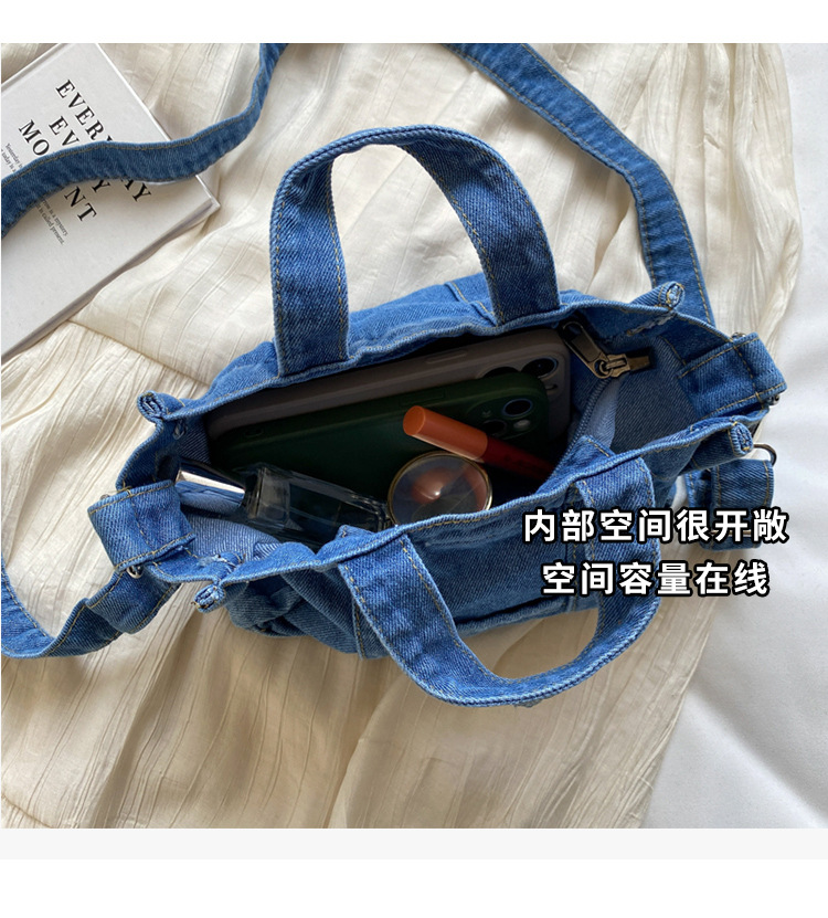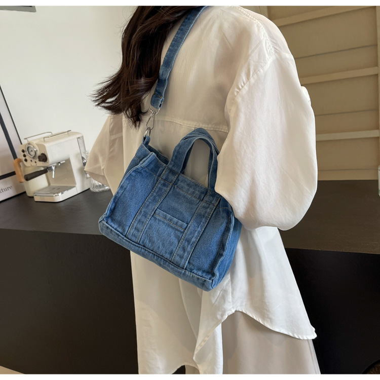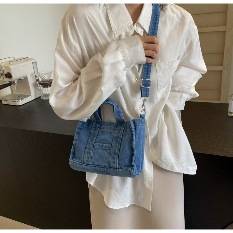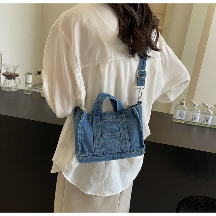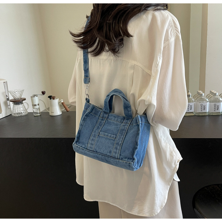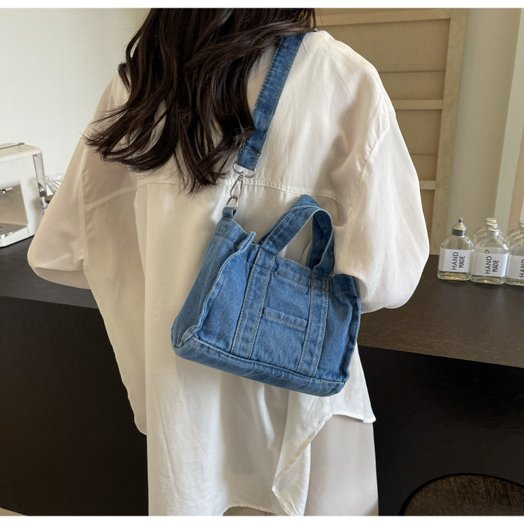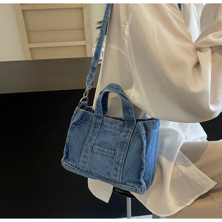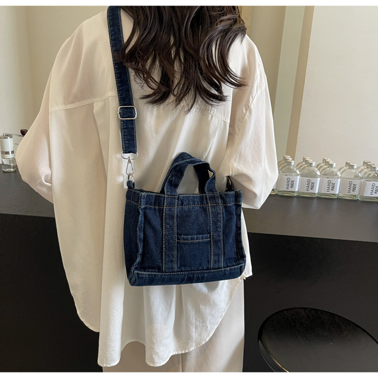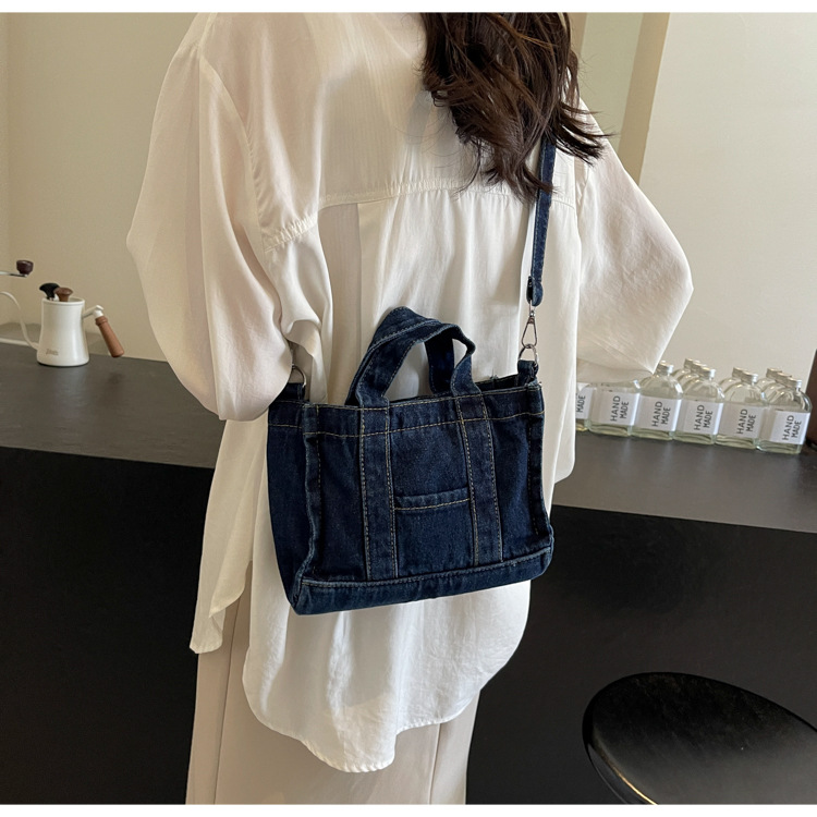 Ins 일본식 하라주쿠 소녀 싱글 숄더 크로스 바디 백 여성 한국식 세련된 레트로 캐주얼 올 매치 핸드 헬드 데님 백스토어 가기