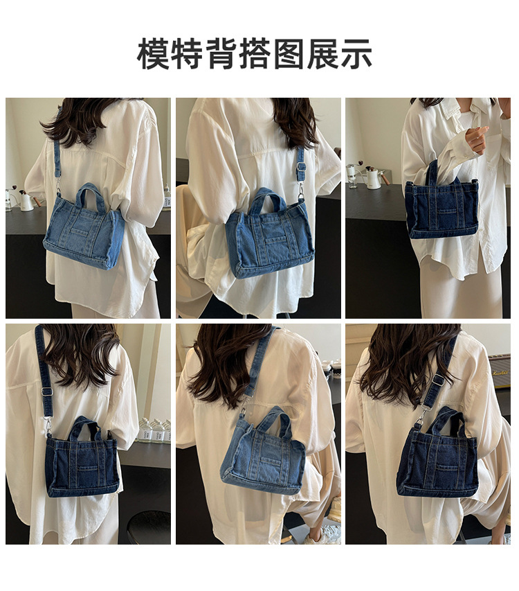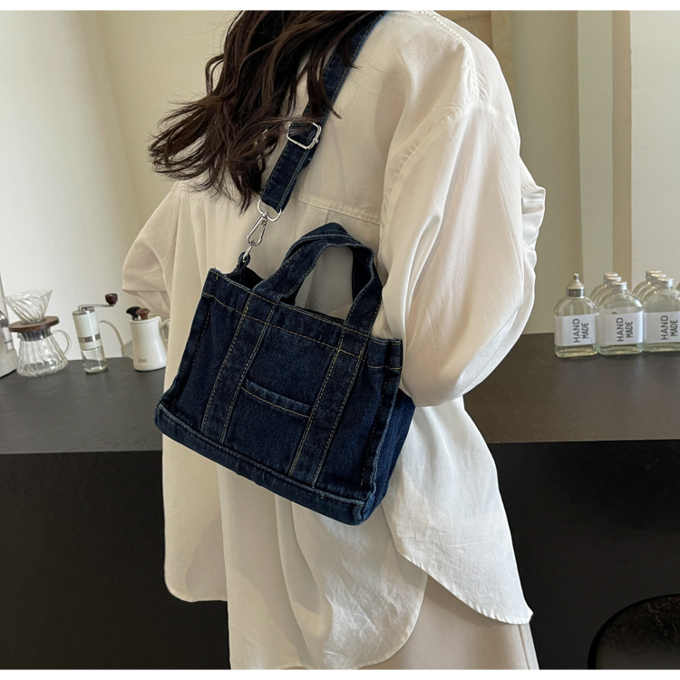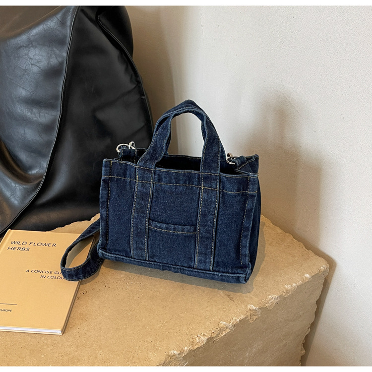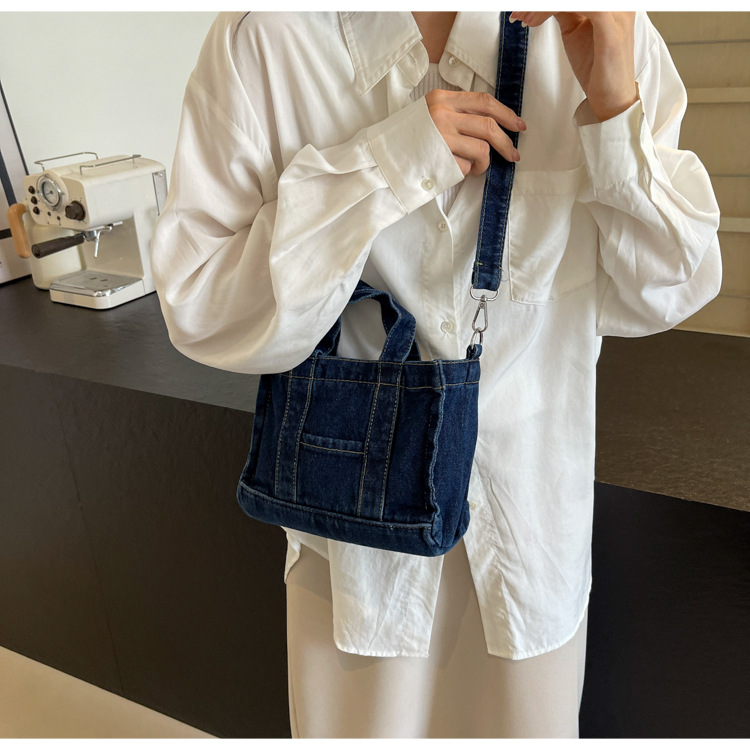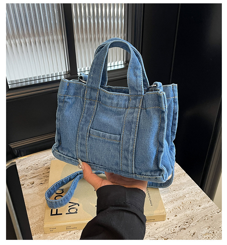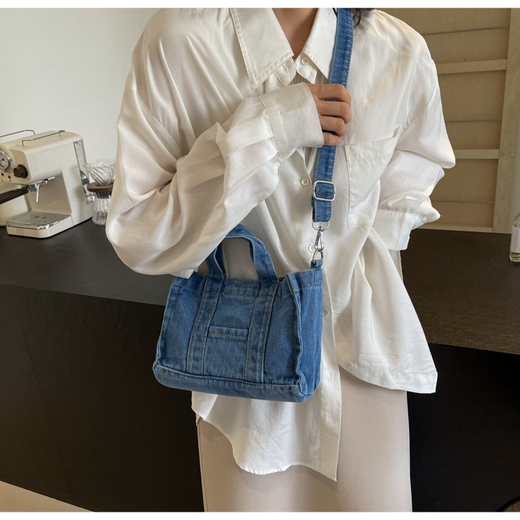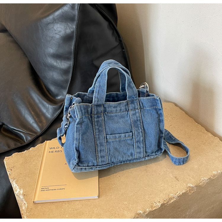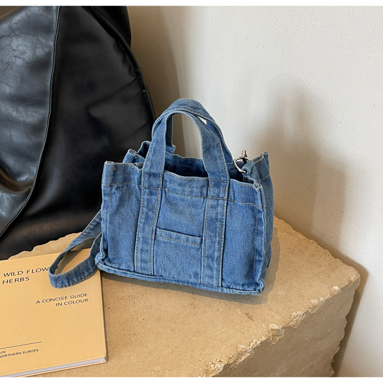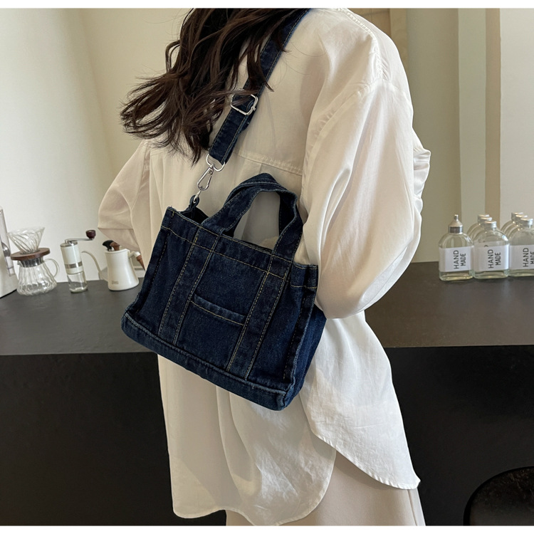 Ins 일본식 하라주쿠 소녀 싱글 숄더 크로스 바디 백 여성 한국식 세련된 레트로 캐주얼 올 매치 핸드 헬드 데님 백스토어 가기