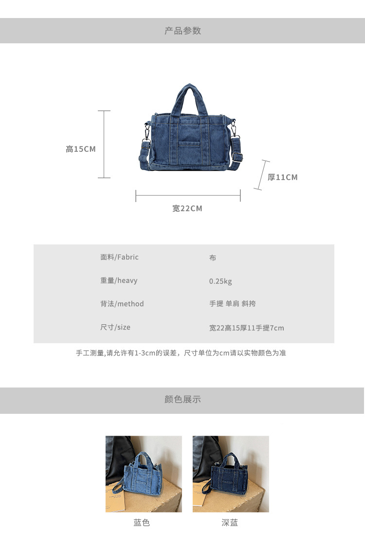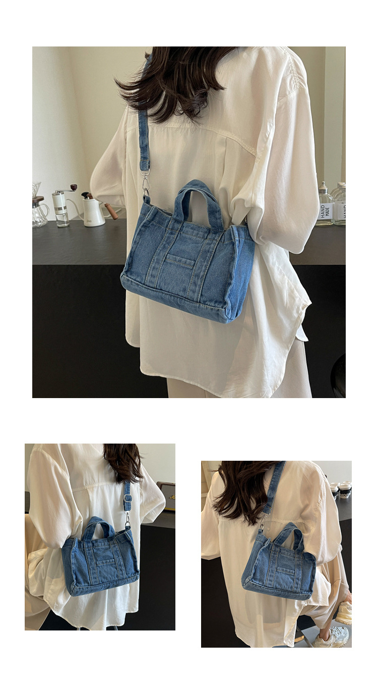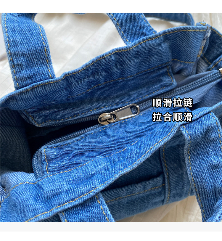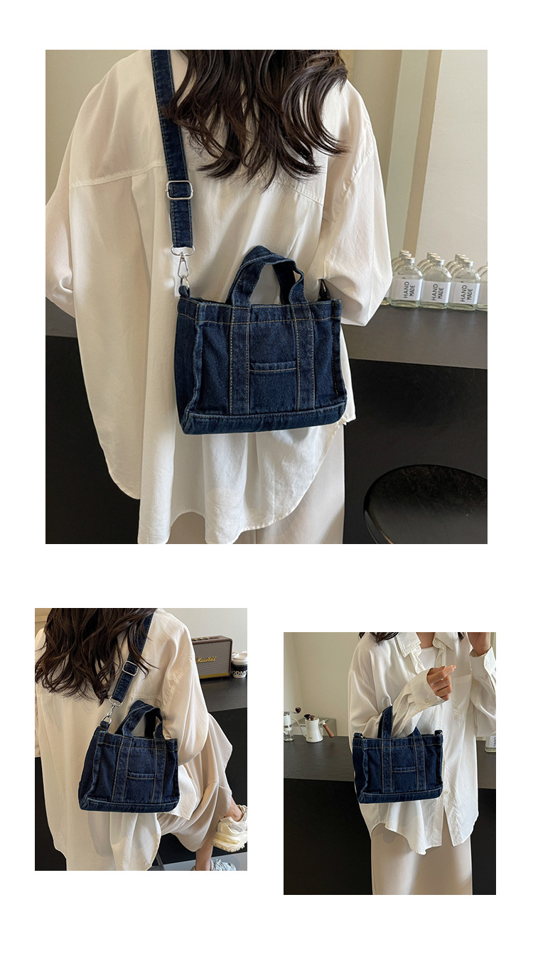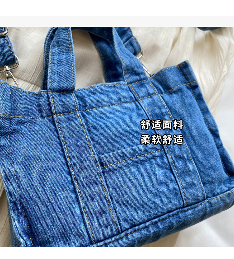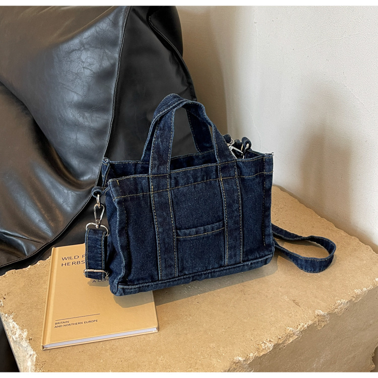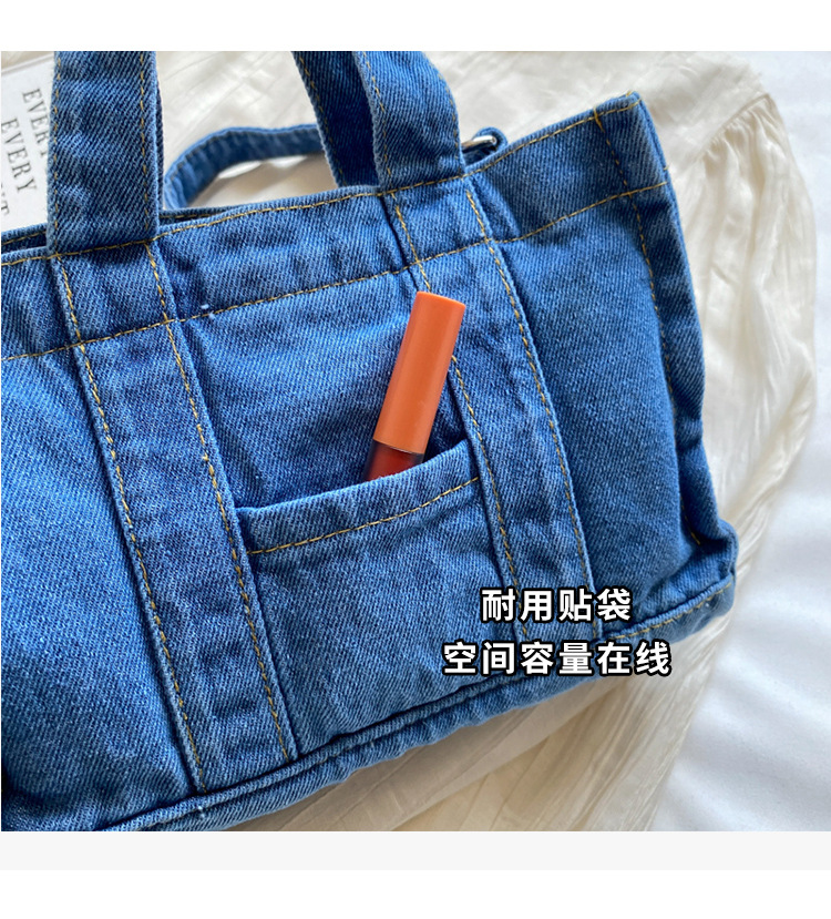 Ins 일본식 하라주쿠 소녀 싱글 숄더 크로스 바디 백 여성 한국식 세련된 레트로 캐주얼 올 매치 핸드 헬드 데님 백스토어 가기