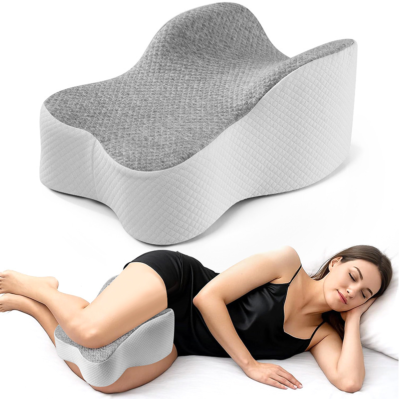 수면용 메모리 폼 무릎 베개, 옆으로 누워 있는 다리 베개, 뼈 조절 가능한 무릎 베개, 면 커버, 메쉬 베개