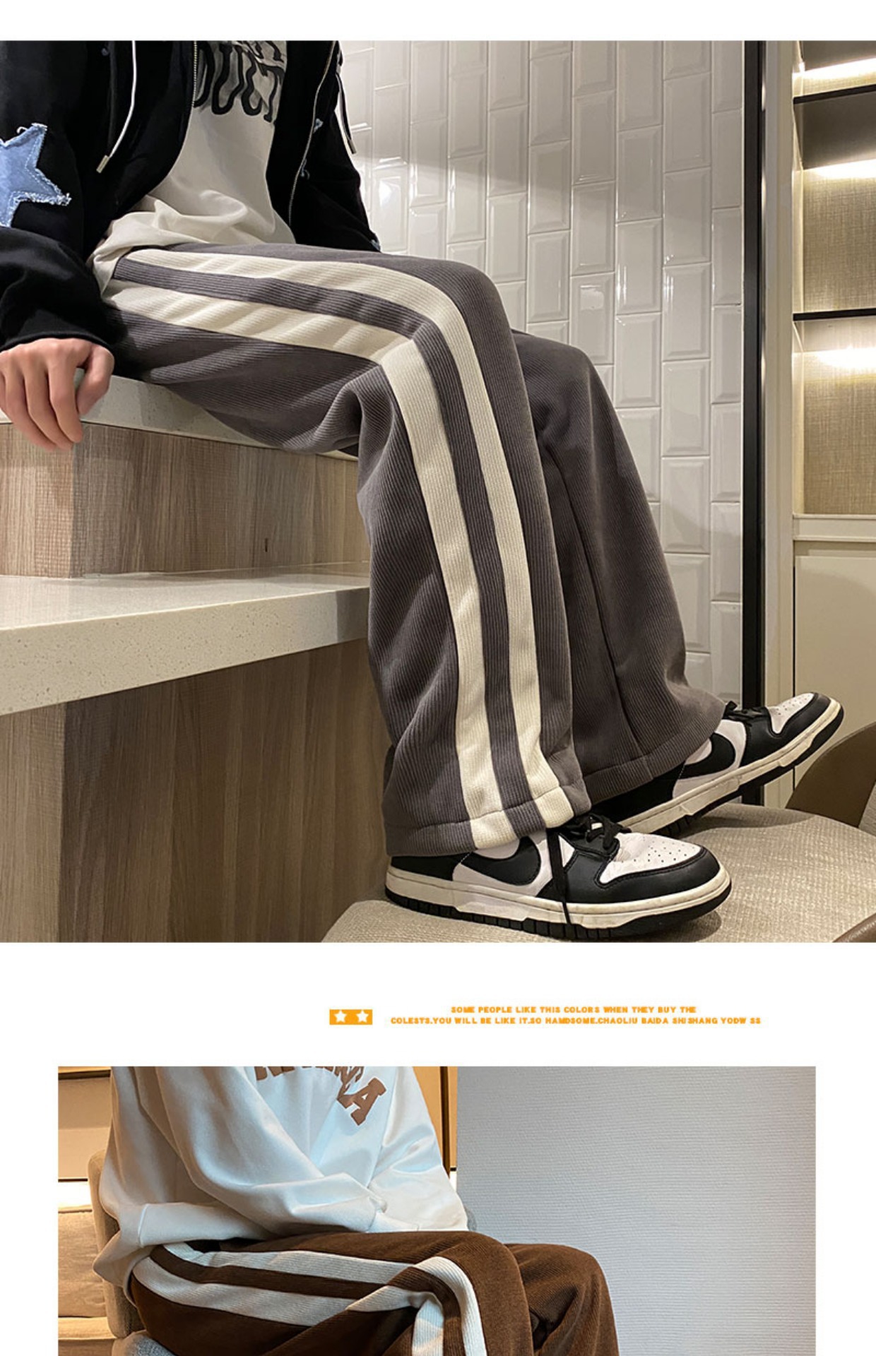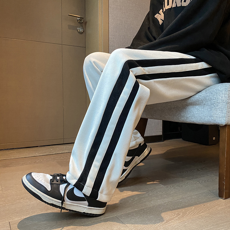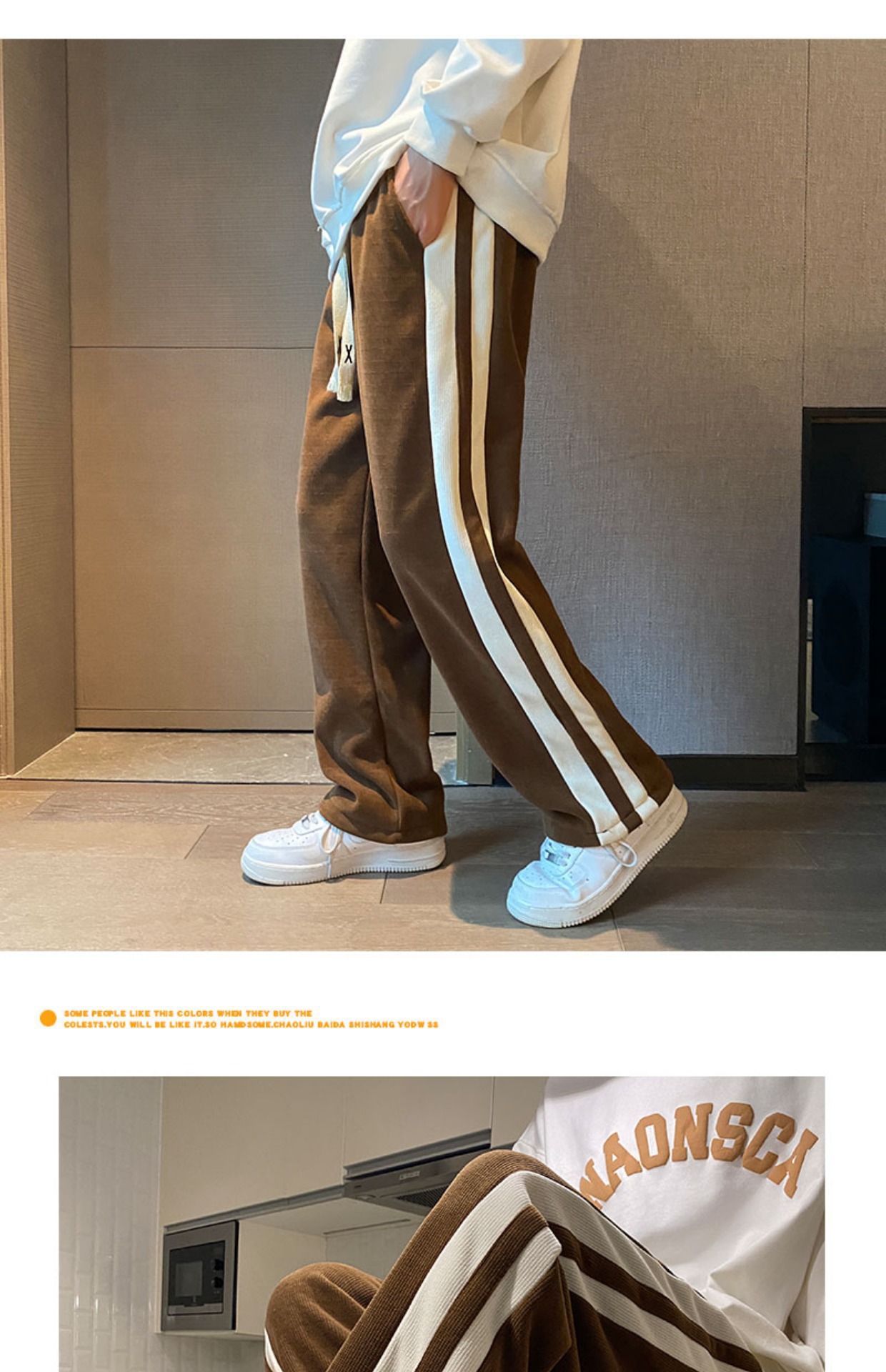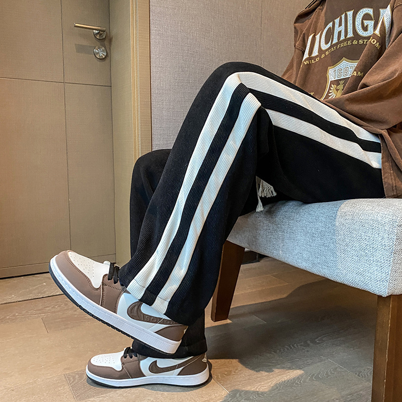 기모 코듀로이 바지 남자 느슨한 스트레이트 가을 겨울 홍콩 스타일 유행 줄무늬 스포츠 바지 남자 캐주얼 바지