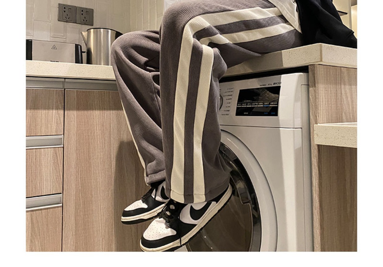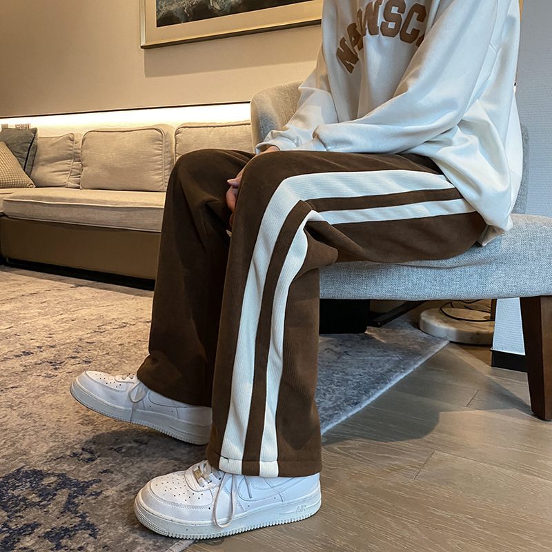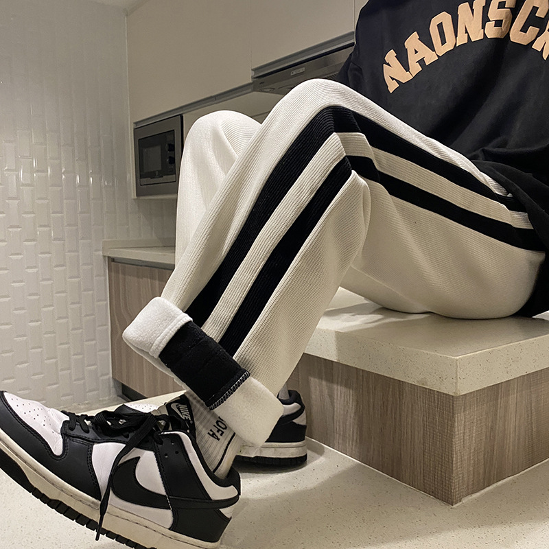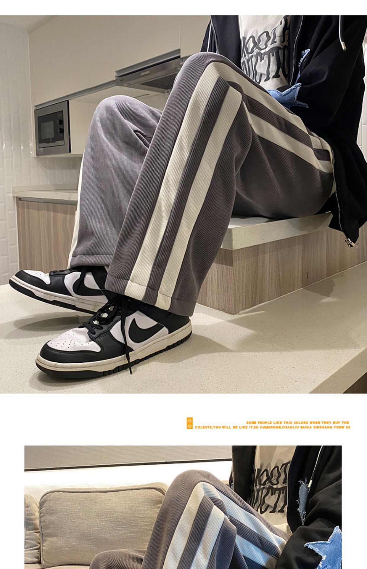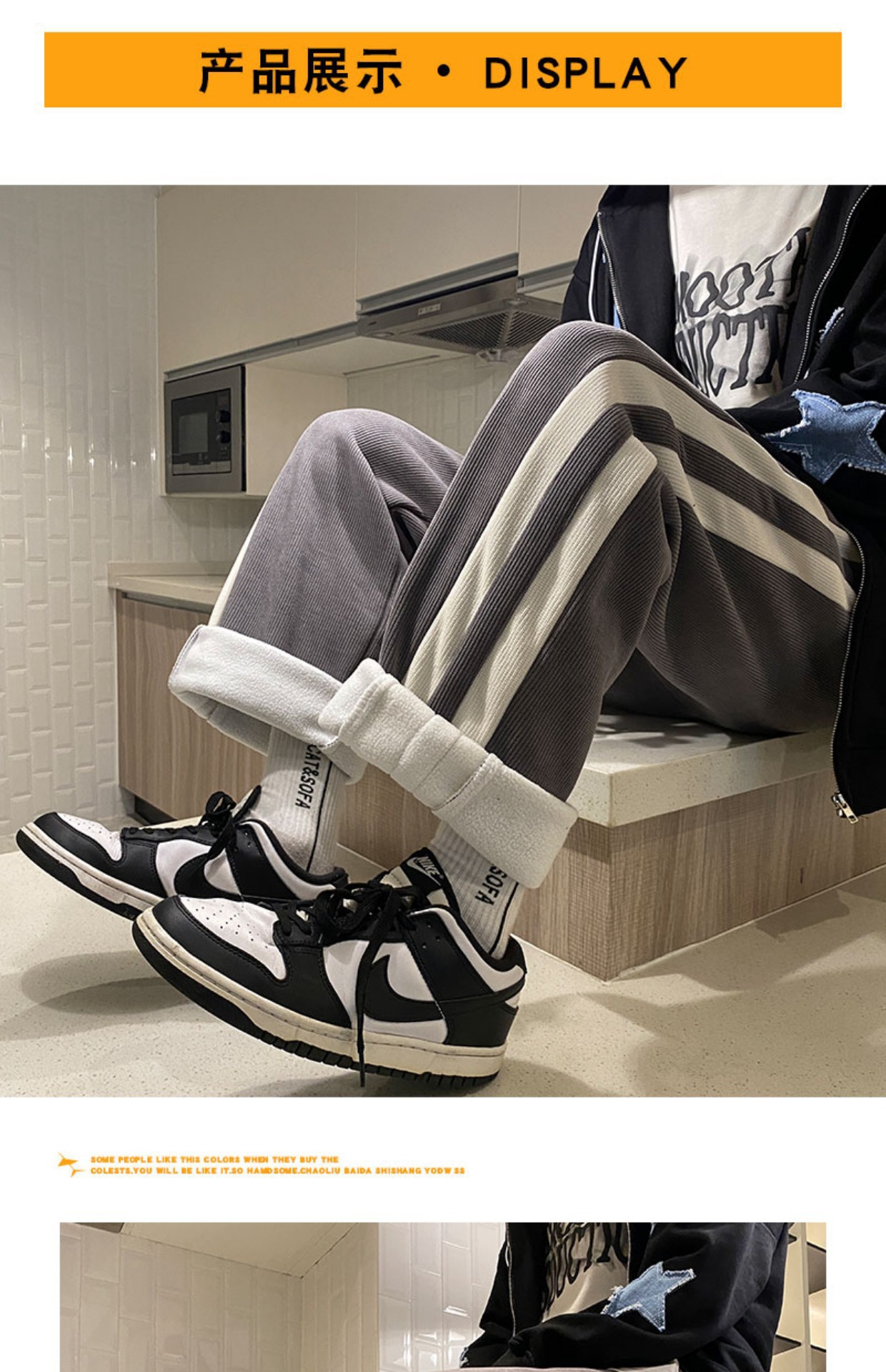 기모 코듀로이 바지 남자 느슨한 스트레이트 가을 겨울 홍콩 스타일 유행 줄무늬 스포츠 바지 남자 캐주얼 바지스토어 가기