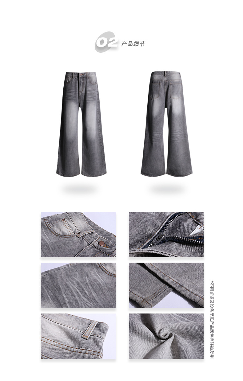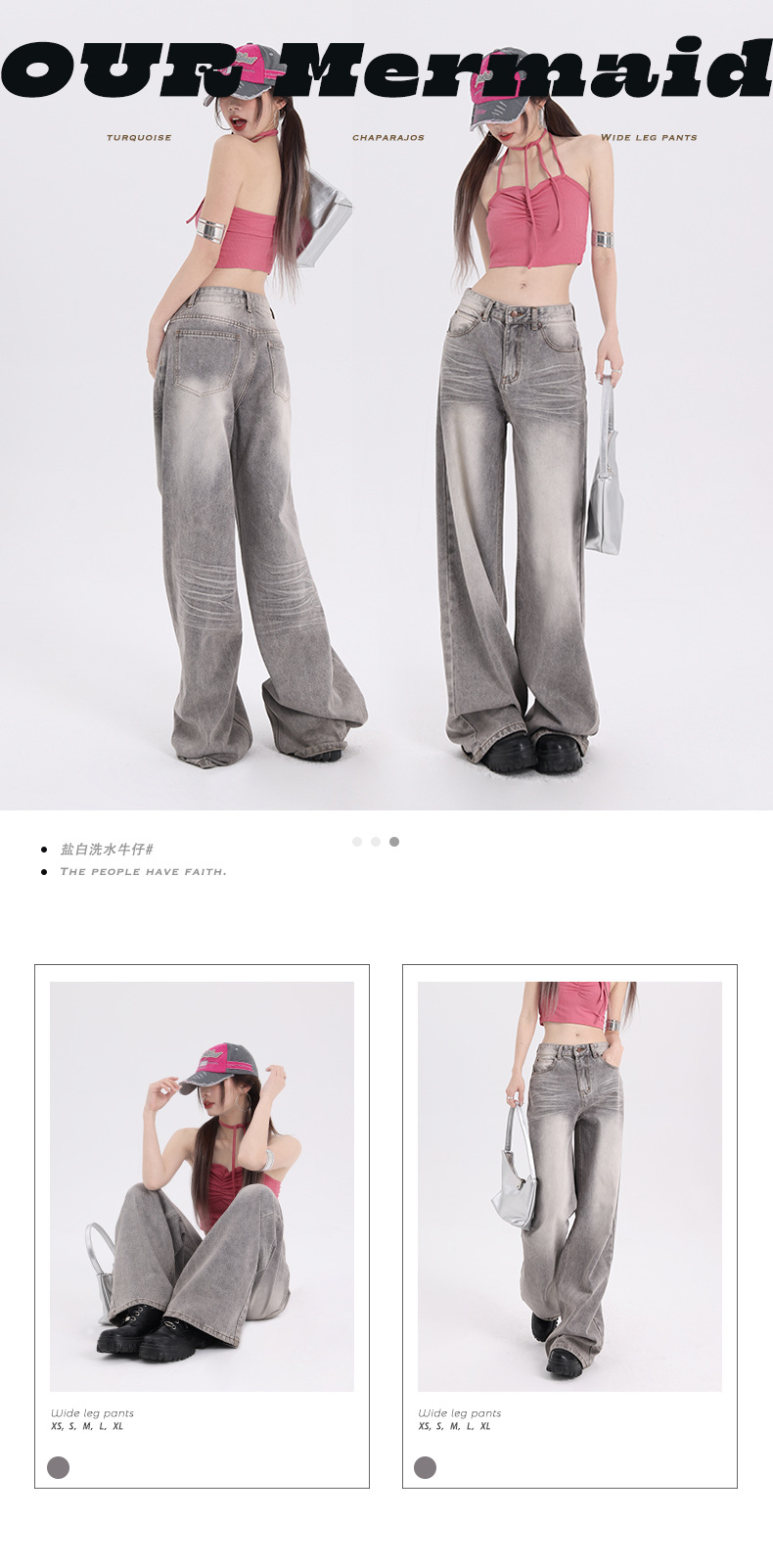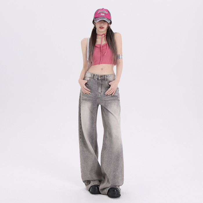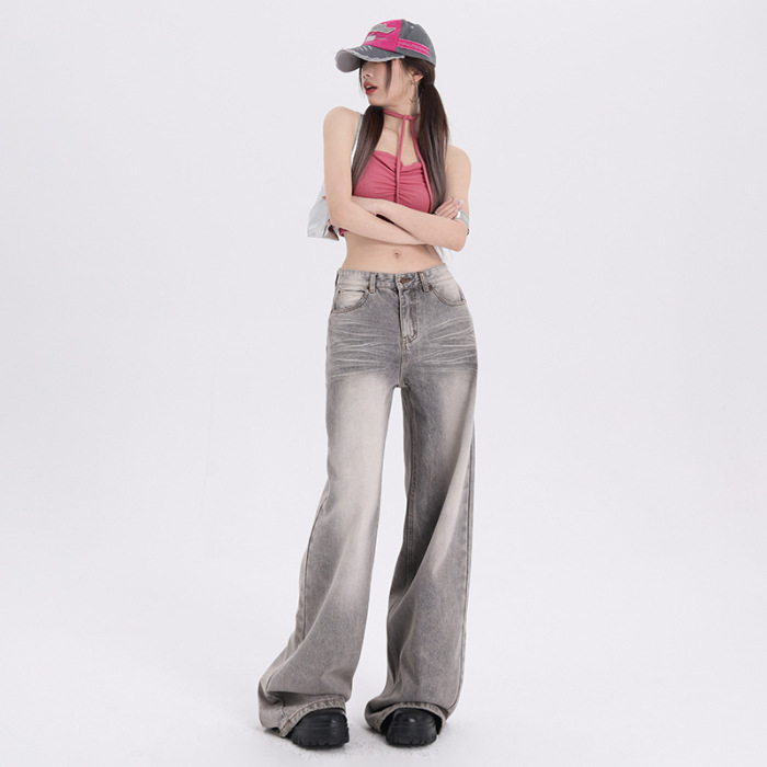 눈길을 끄는 초가을 신상 그레이 루즈하고 활용도 높은 트렌디한 아메리칸 스트레이트 와이드 레그 청바지 여성용 바지