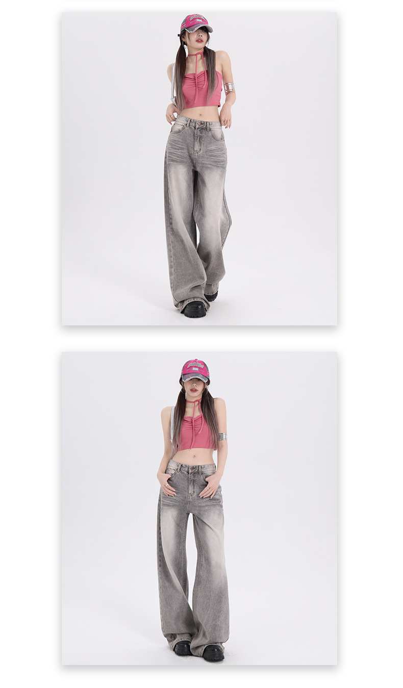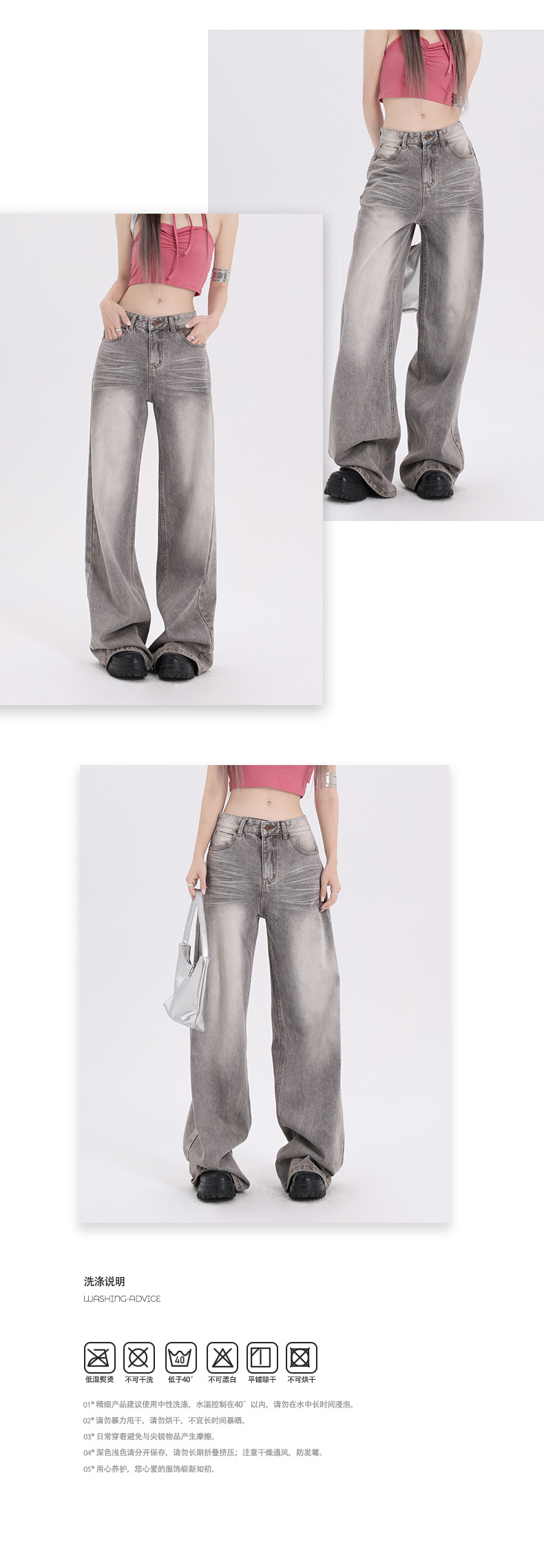 눈길을 끄는 초가을 신상 그레이 루즈하고 활용도 높은 트렌디한 아메리칸 스트레이트 와이드 레그 청바지 여성용 바지스토어 가기