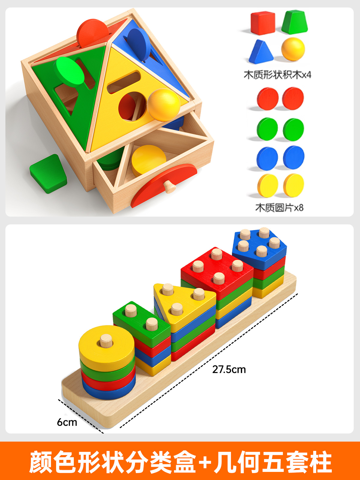 몬테소리 기하학적 기둥 세트 어린이 교육 조립 건물 블록 1 ~ 3 세 소년 소녀 아기 모양 일치하는 장난감스토어 가기