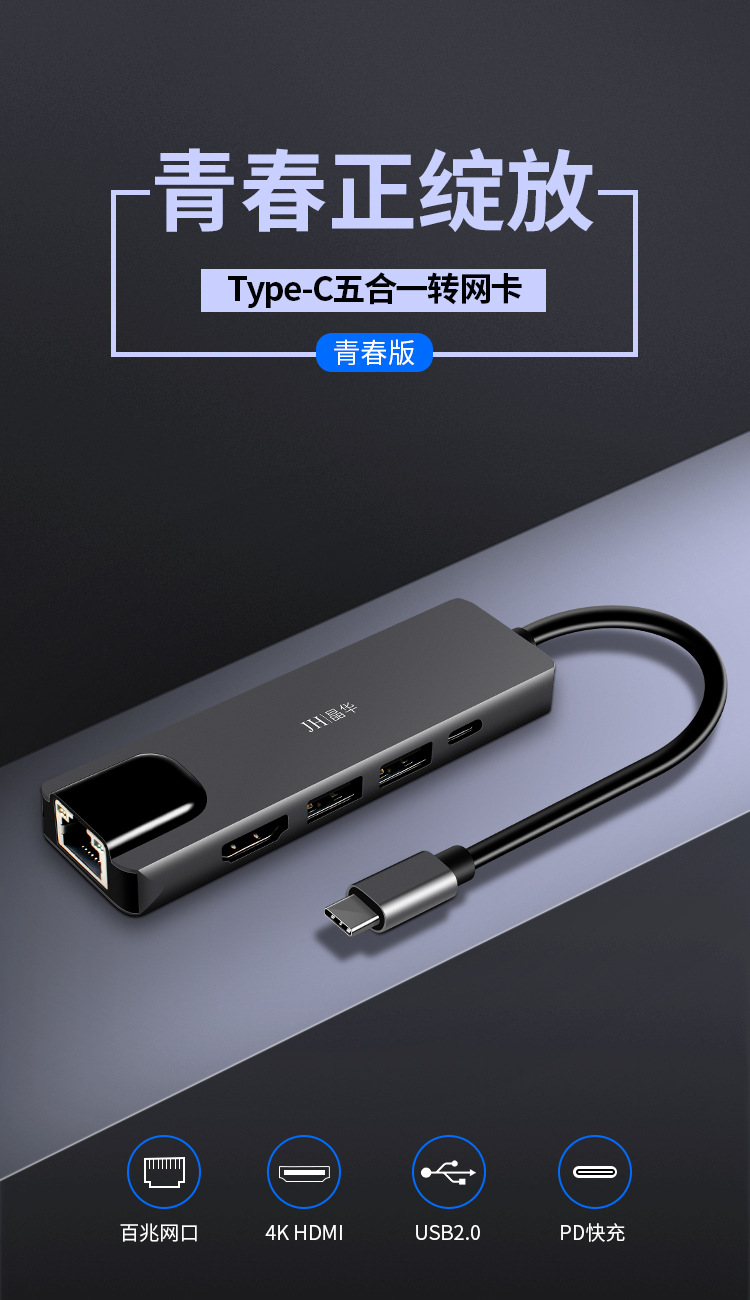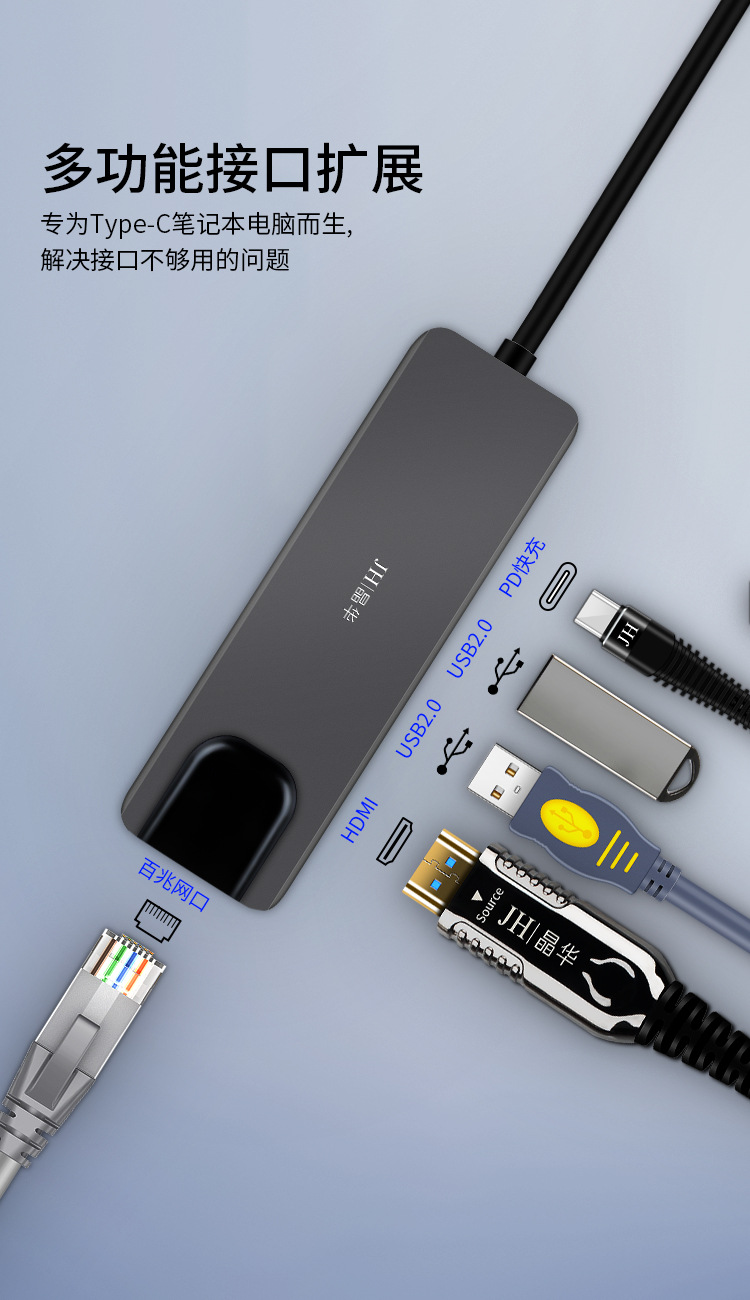 Jinghua typec 도킹 스테이션 usbhub 허브 네트워크 카드는 1 도킹 스테이션에서 5 에서 스위치 5 에 적합합니다.