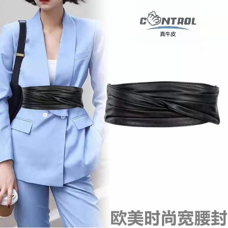 넓은 벨트 여성의 7cm 넓은 새로운 스트레치 양가죽 벨트 허리 벨트 유럽과 미국의 패션 외부 세트 장식 넓은 허리 커버