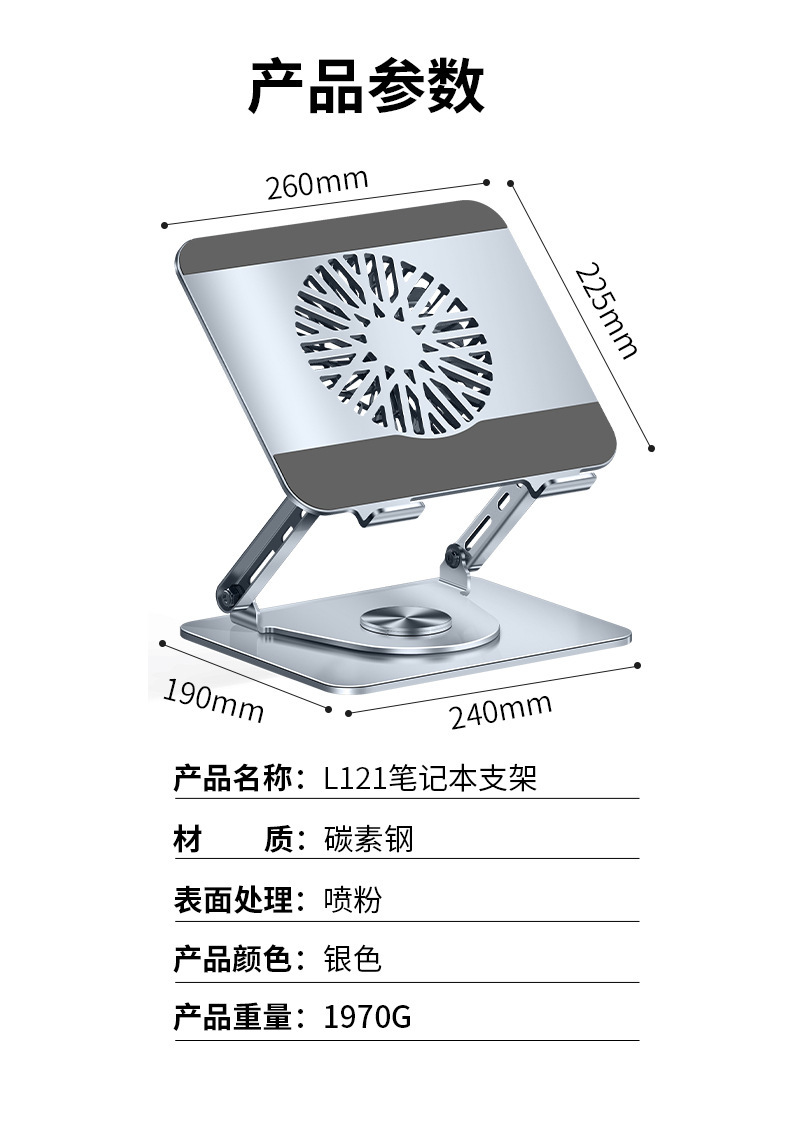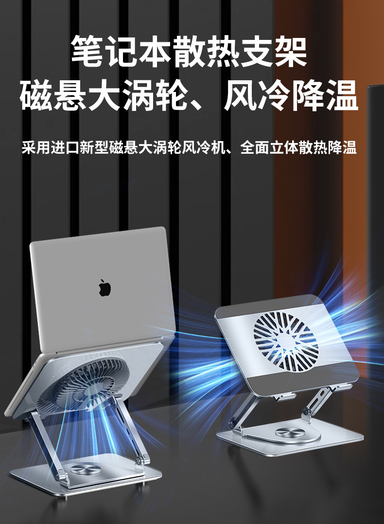 노트북 스탠드 컴퓨터 탄소강 접이식 360도 회전식 데스크탑 리프팅 태블릿 팬 냉각 증가