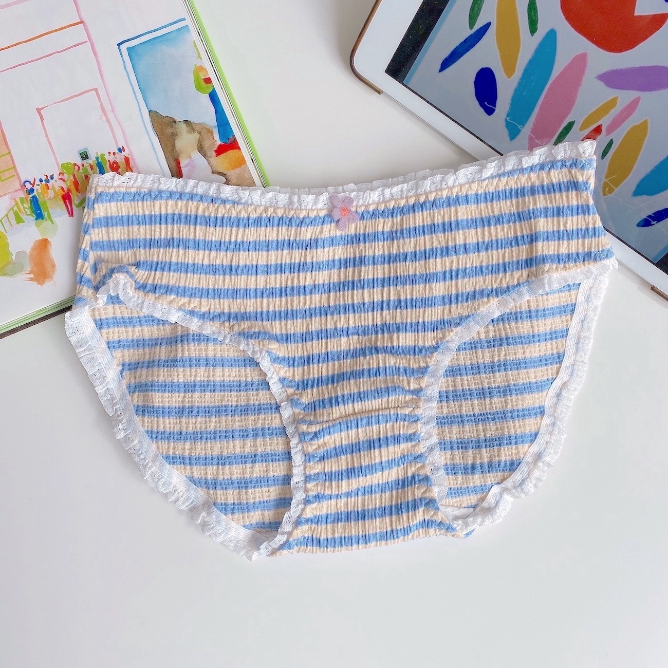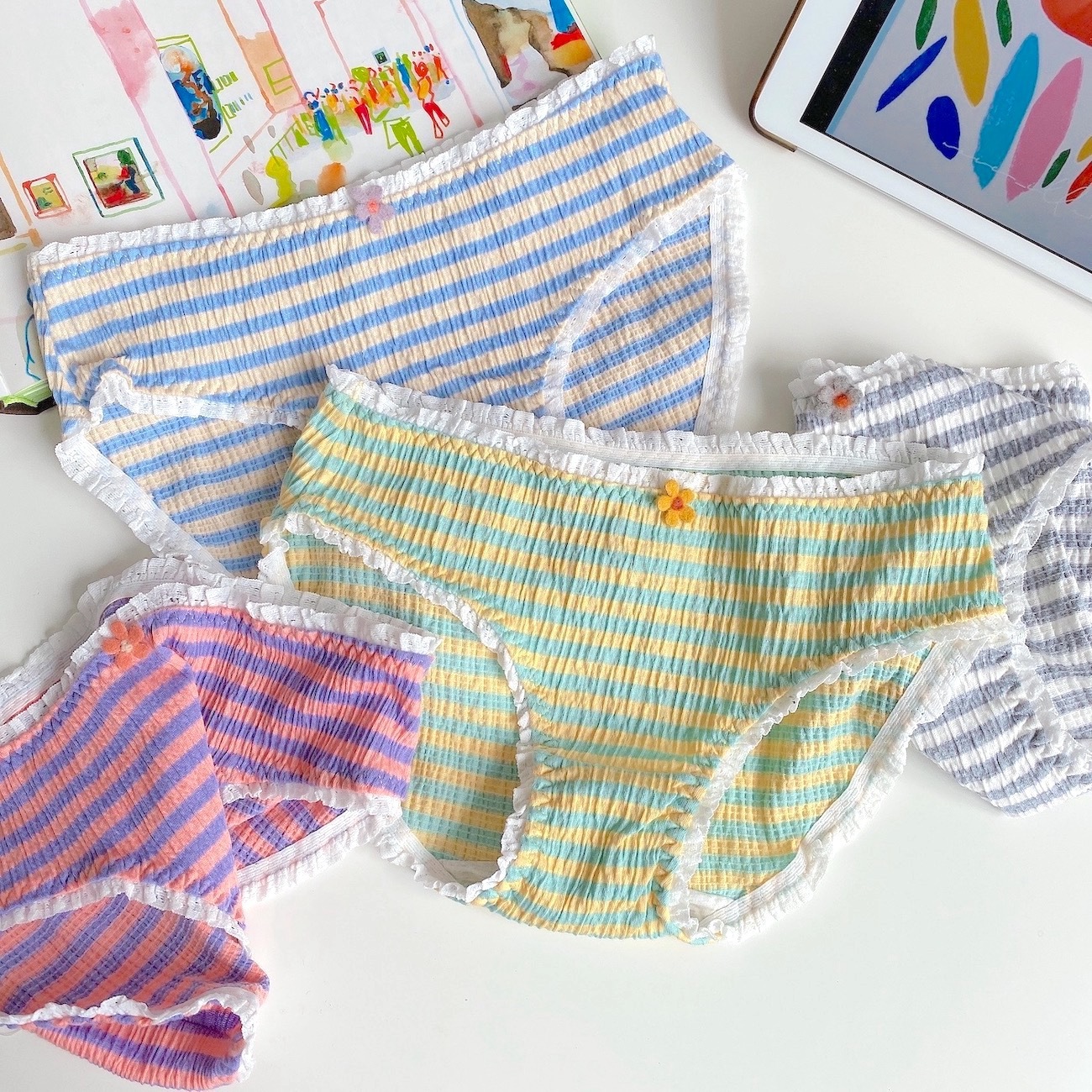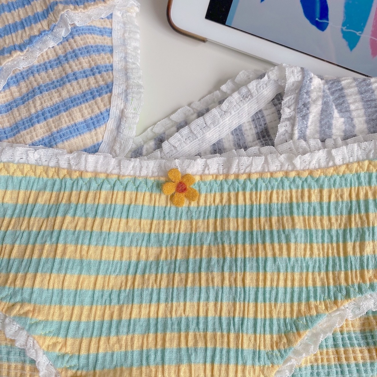 Ins Style Sen Style Pleated 여성 속옷 20061 한국 스타일 달콤한 작은 꽃 속옷 여성의 줄무늬 통기성 소녀의 브리프스토어 가기