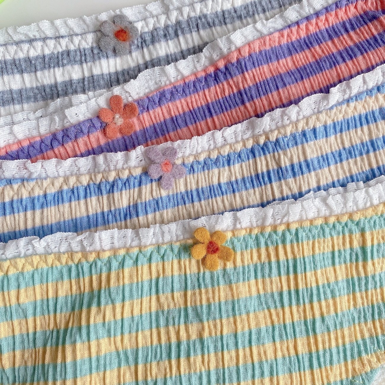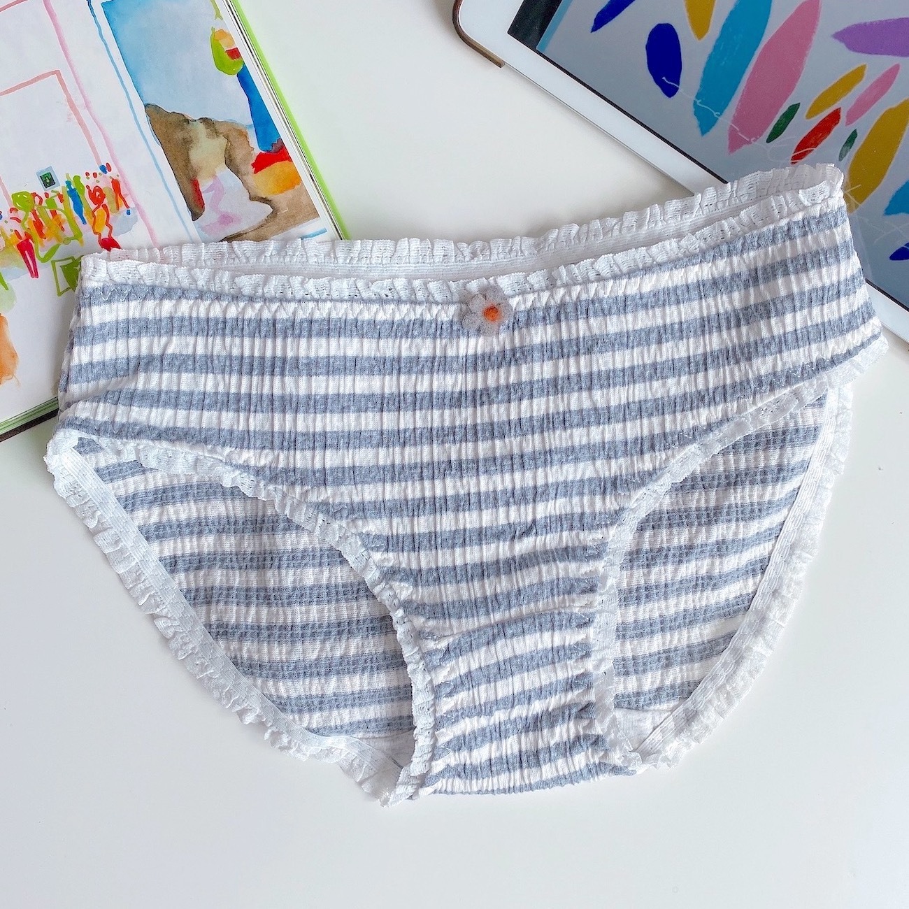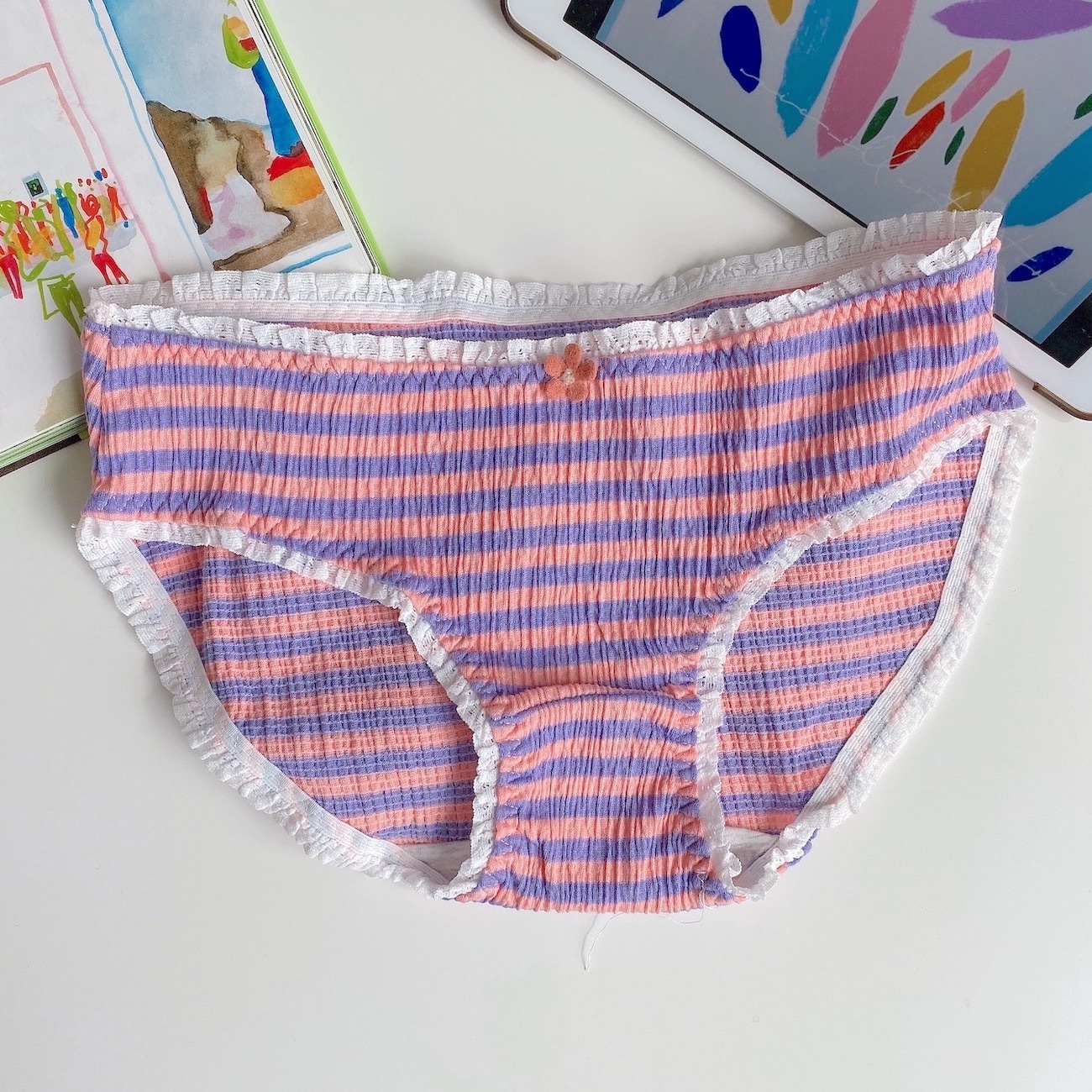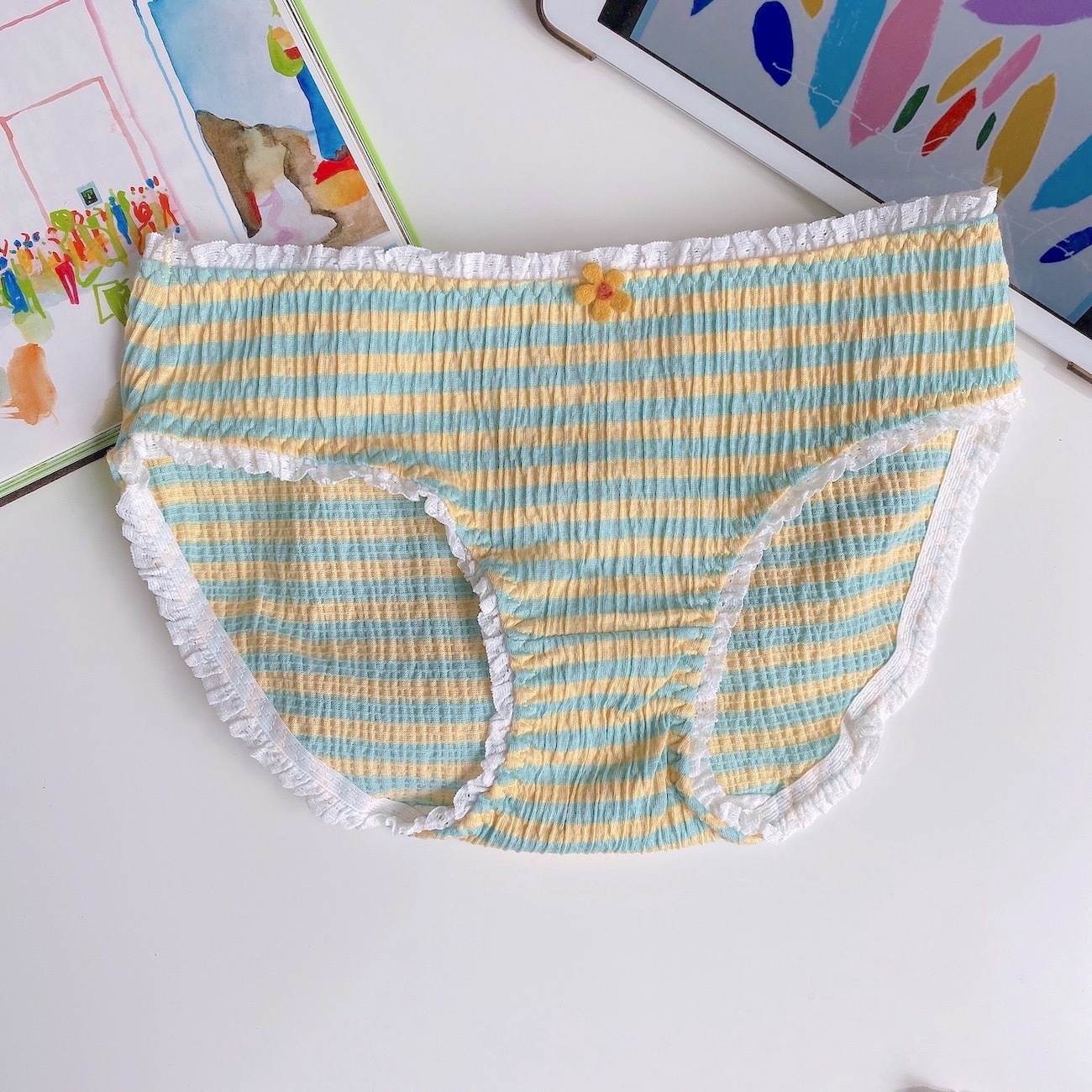 Ins Style Sen Style Pleated 여성 속옷 20061 한국 스타일 달콤한 작은 꽃 속옷 여성의 줄무늬 통기성 소녀의 브리프스토어 가기