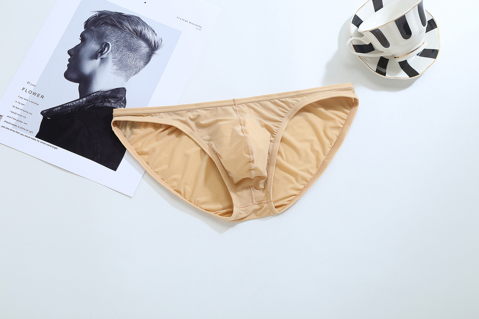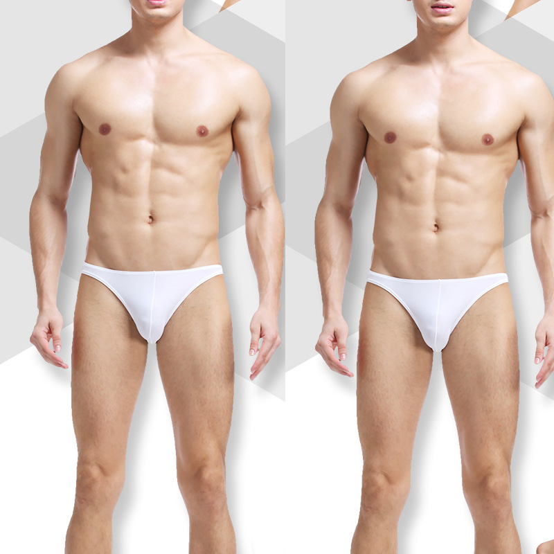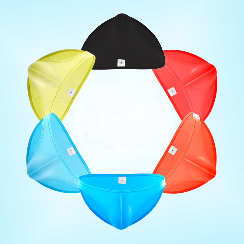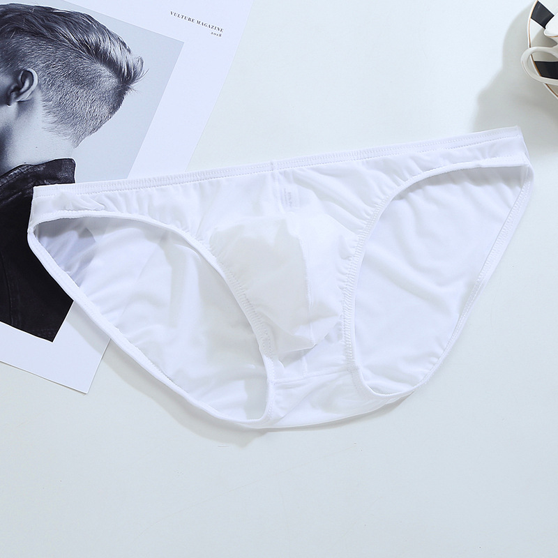 유럽과 미국 남성 아이스 실크 브리프 투명 섹시한 메쉬 원활한 낮은 허리 가을과 겨울 통기성 대외 무역 빠른 건조 초박형