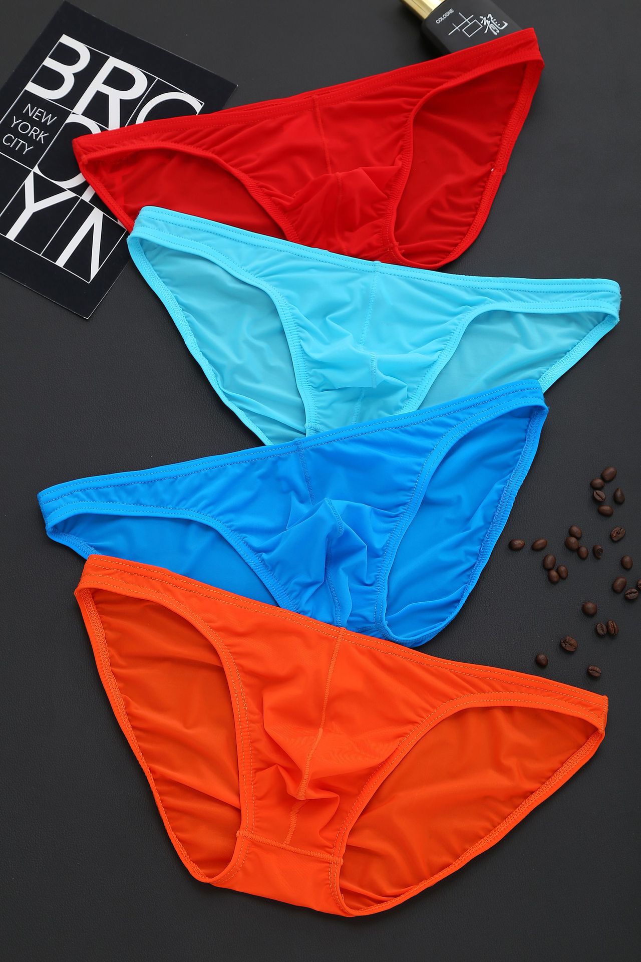 유럽과 미국 남성 아이스 실크 브리프 투명 섹시한 메쉬 원활한 낮은 허리 가을과 겨울 통기성 대외 무역 빠른 건조 초박형스토어 가기