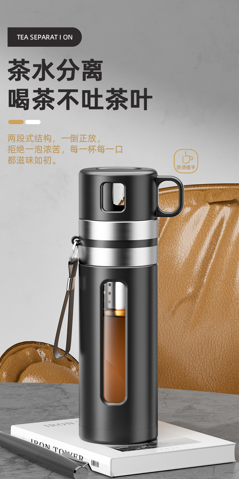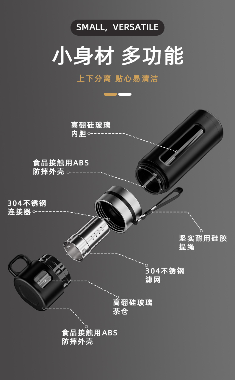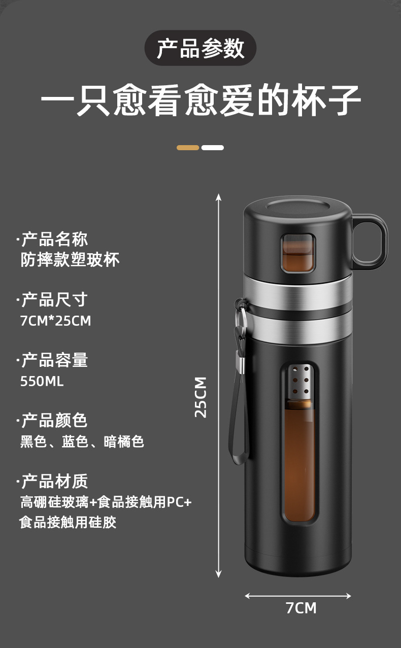 차 분리 유리 남자 고급 물 컵 대용량 티 컵 특수 티 컵 휴대용 사무실 물 컵