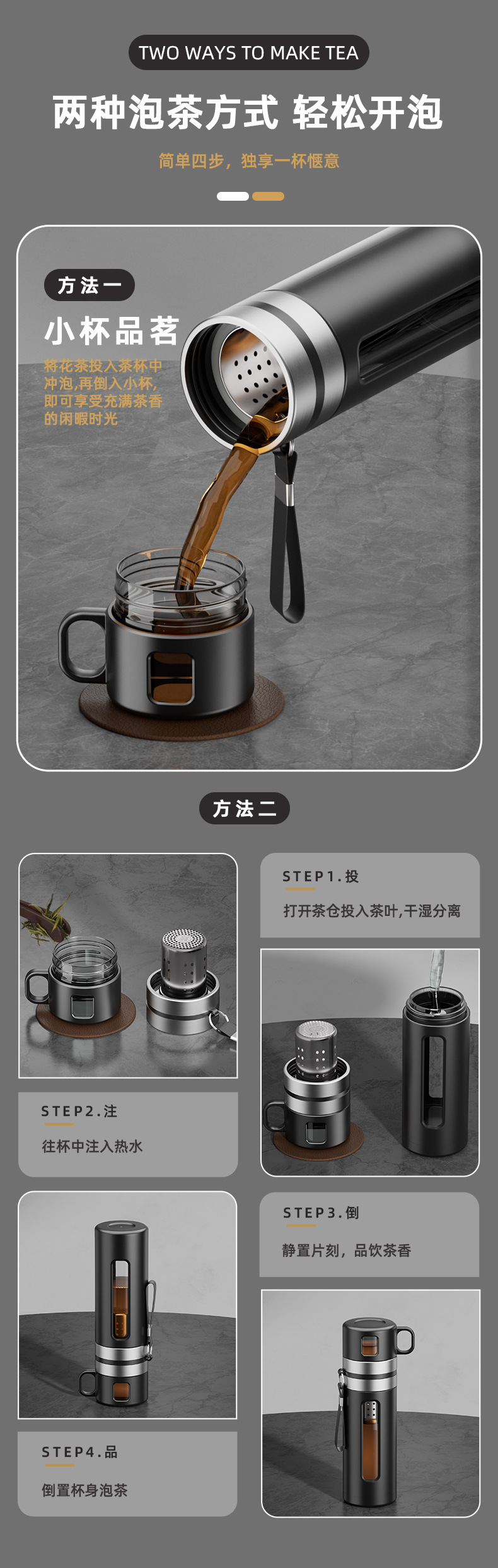 차 분리 유리 남자 고급 물 컵 대용량 티 컵 특수 티 컵 휴대용 사무실 물 컵스토어 가기